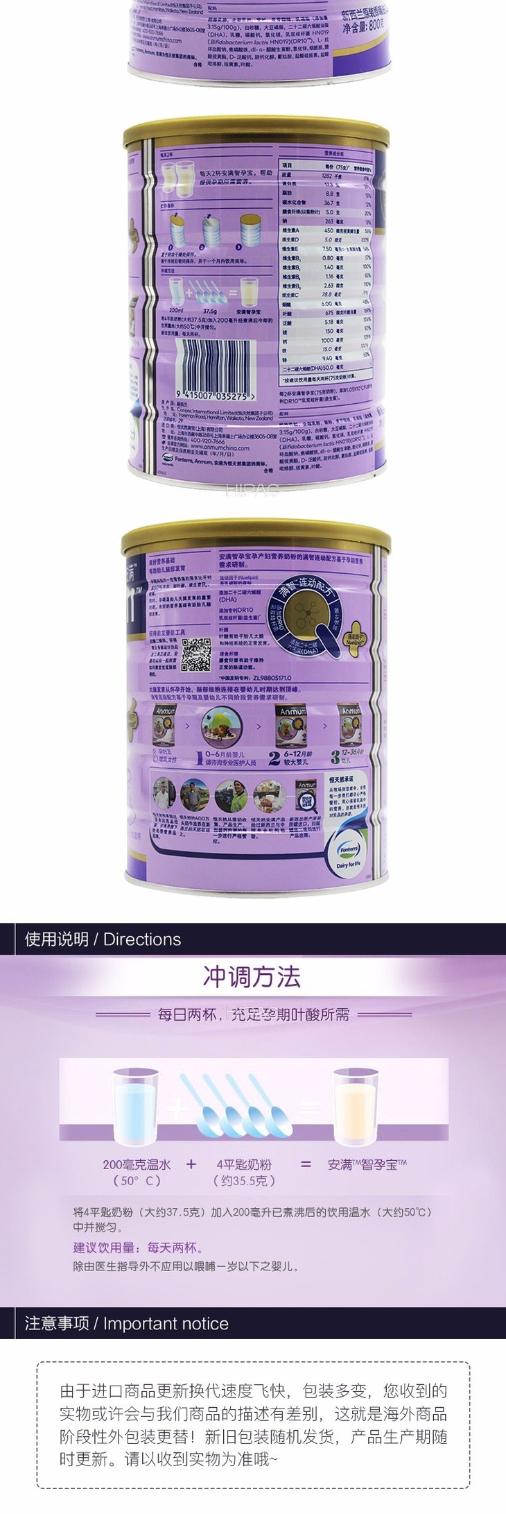 2罐【一般贸易】安满智孕宝孕妇产妇妈妈奶粉800g