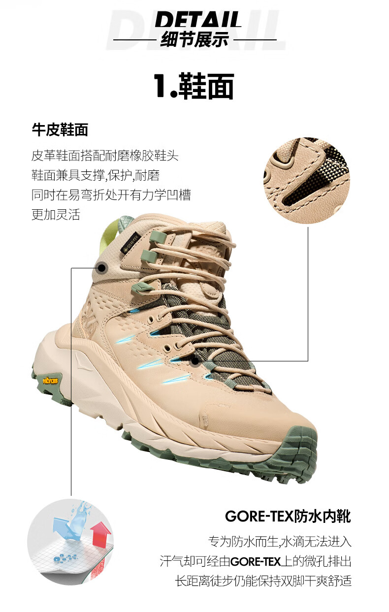【燃冬特惠!】HOKA ONE ONE男款卡哈中高帮GTX防水透气徒步鞋KAHAGTX户外缓震(TBZG)