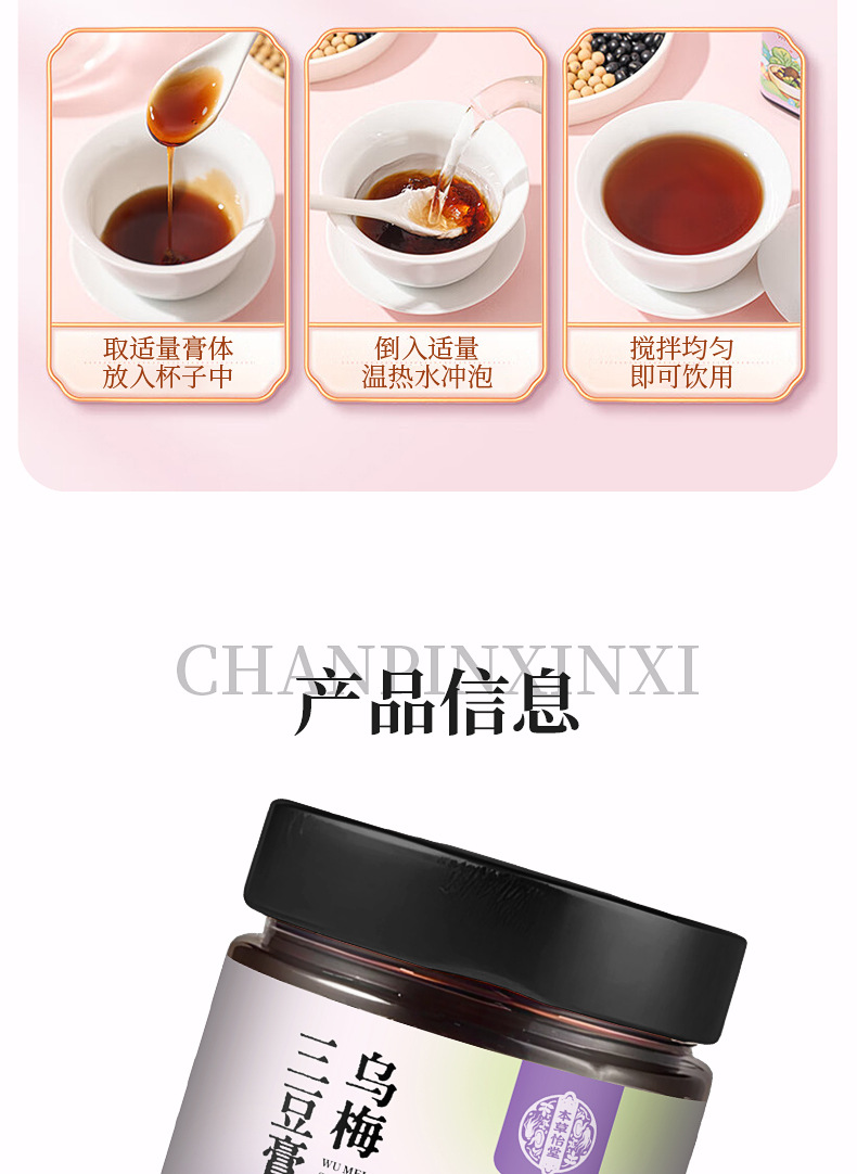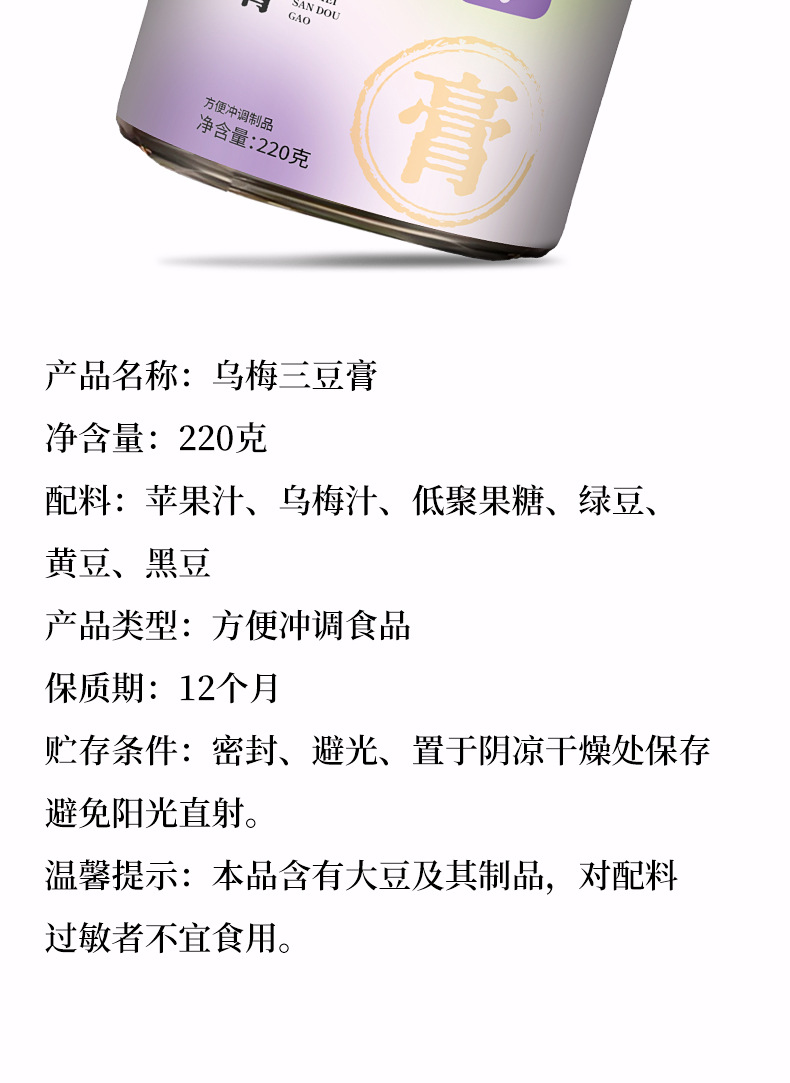 乌梅三豆膏 清爽酸甜儿童成人四季冲饮乌梅黑豆绿豆黄豆草本提取膏
