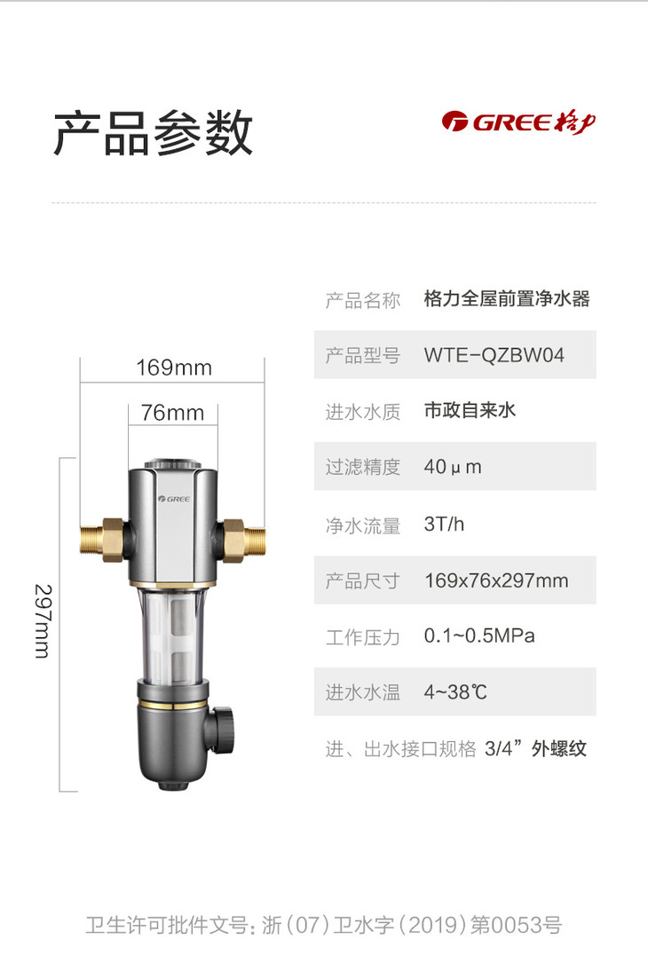 格力·前置过滤器 净水机 WTE-QZBW04 黑+香槟金