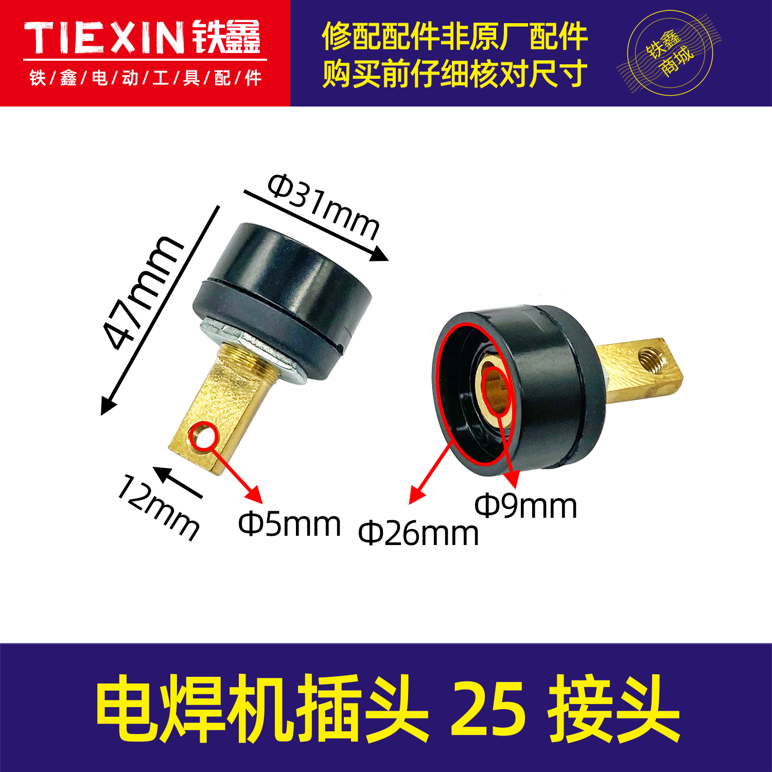 【货号04058】电焊机插头10-25接头后板42长电机接头电焊机配件