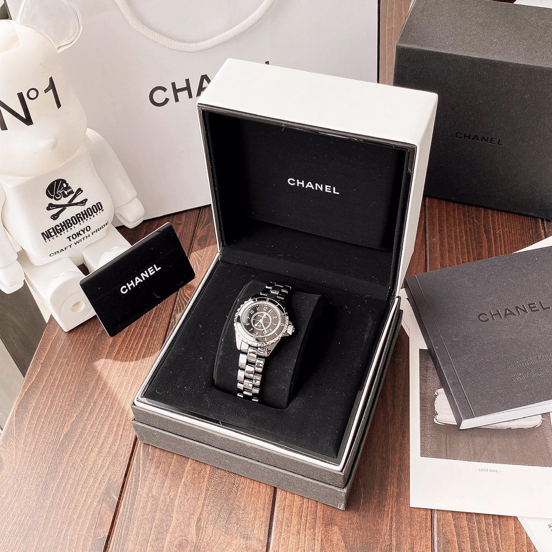 XF香奈儿J12系列H0968重置加强版,33mm直径,原版机芯ETA.956.612芯。石英机芯,女士腕表,陶瓷表带,密底
