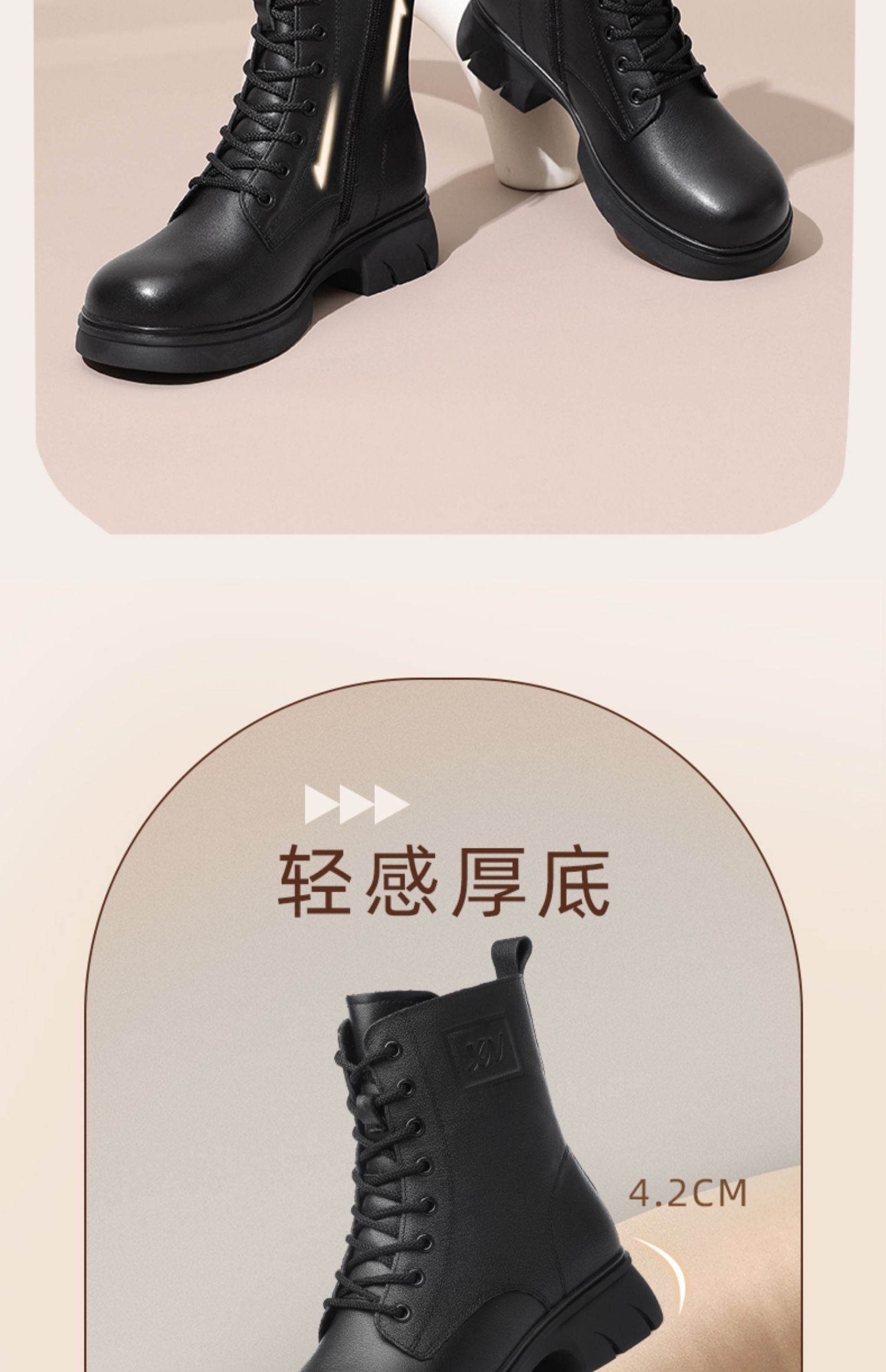 靴子真皮女鞋2024新款秋冬季加绒棉鞋英伦风靴子厚底增高短靴女款M317-11D