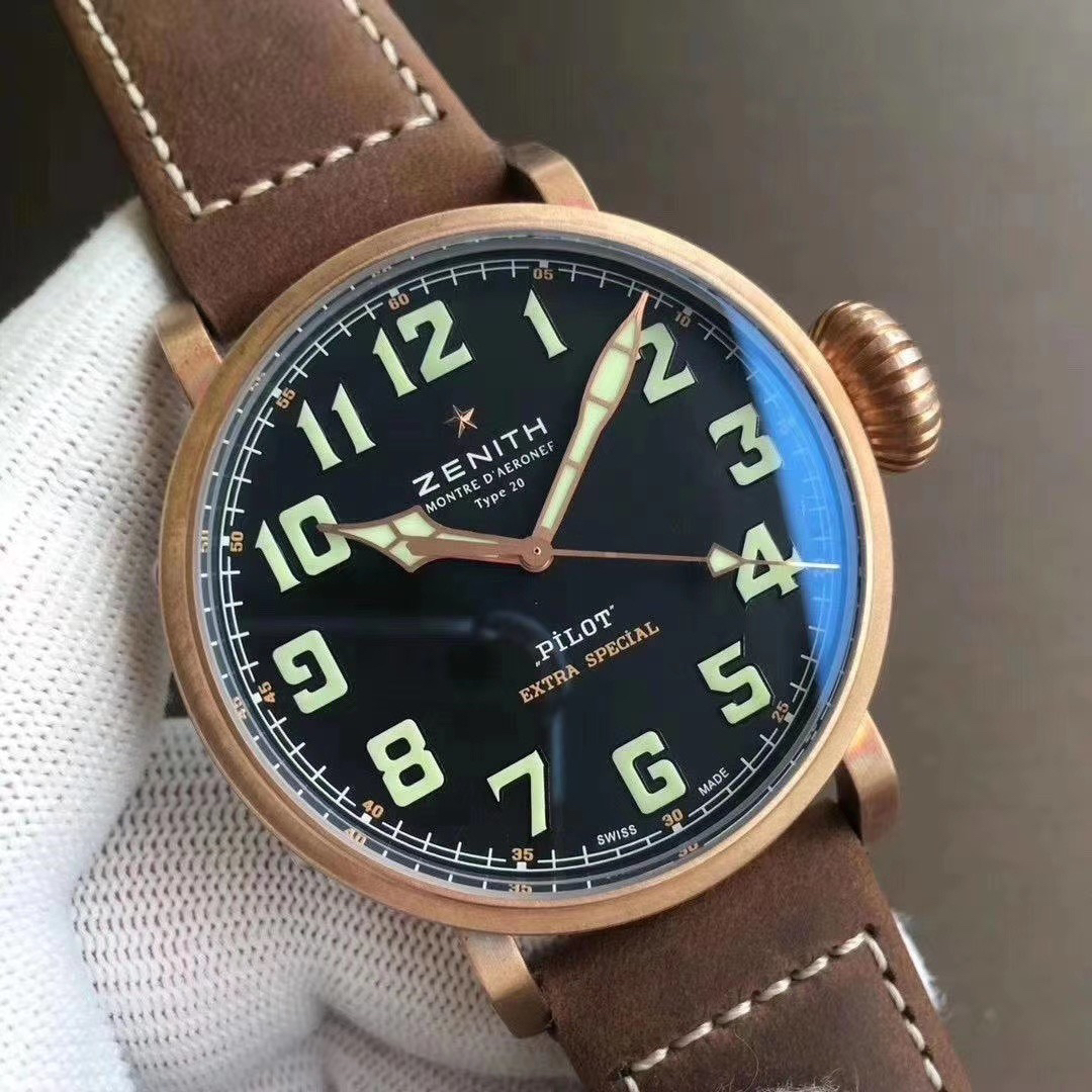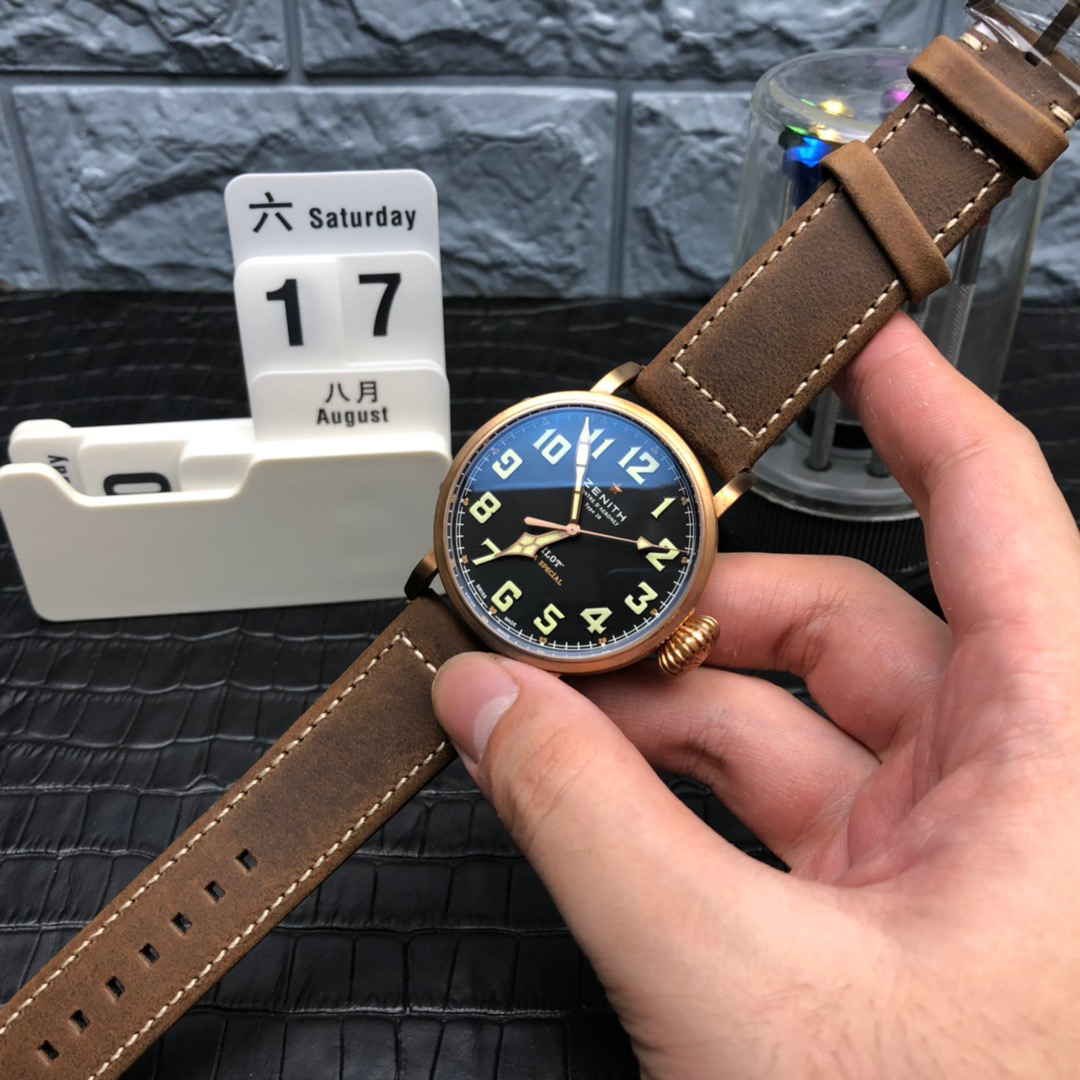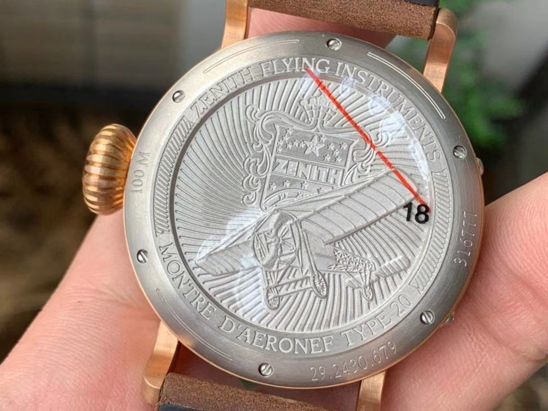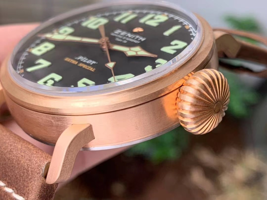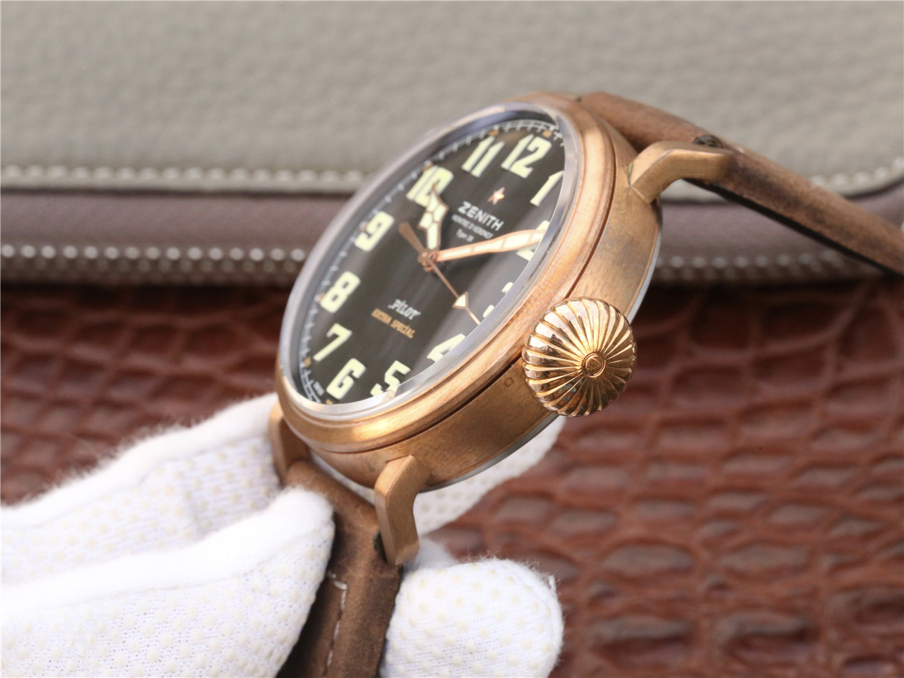 XF真力时飞行员大飞:29.2430.679/21.C753青铜男士腕表,纯青铜表壳,搭配正品一致的定制版2824亚洲版机械机芯,疯马皮表带。振频:28800每小时振荡次数,表径:46毫米,密底