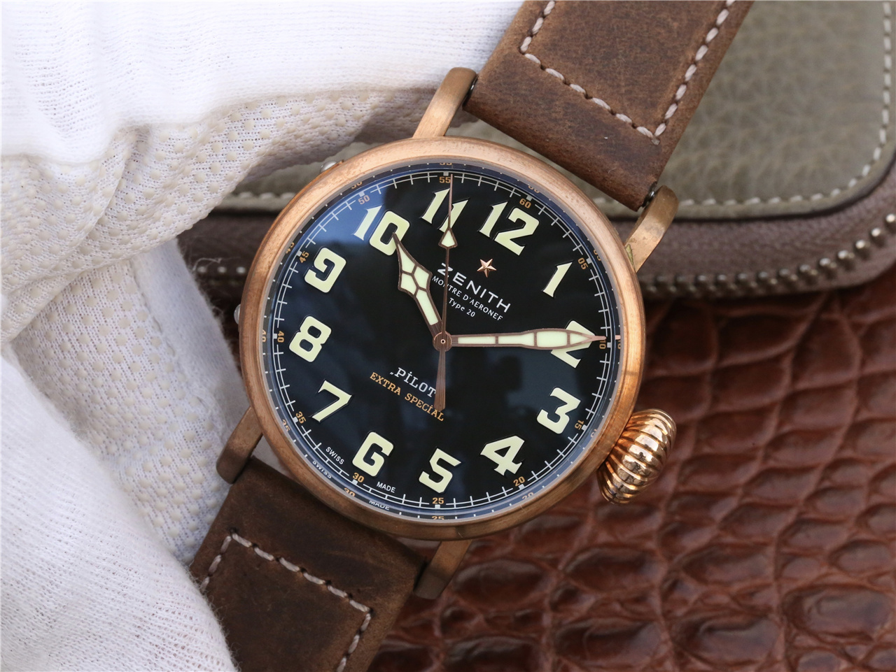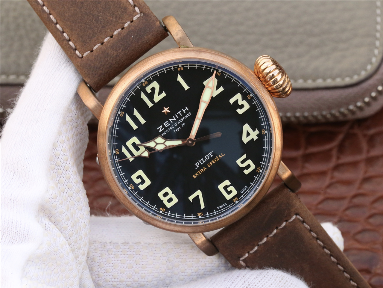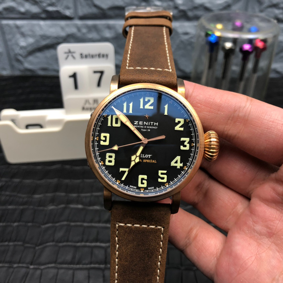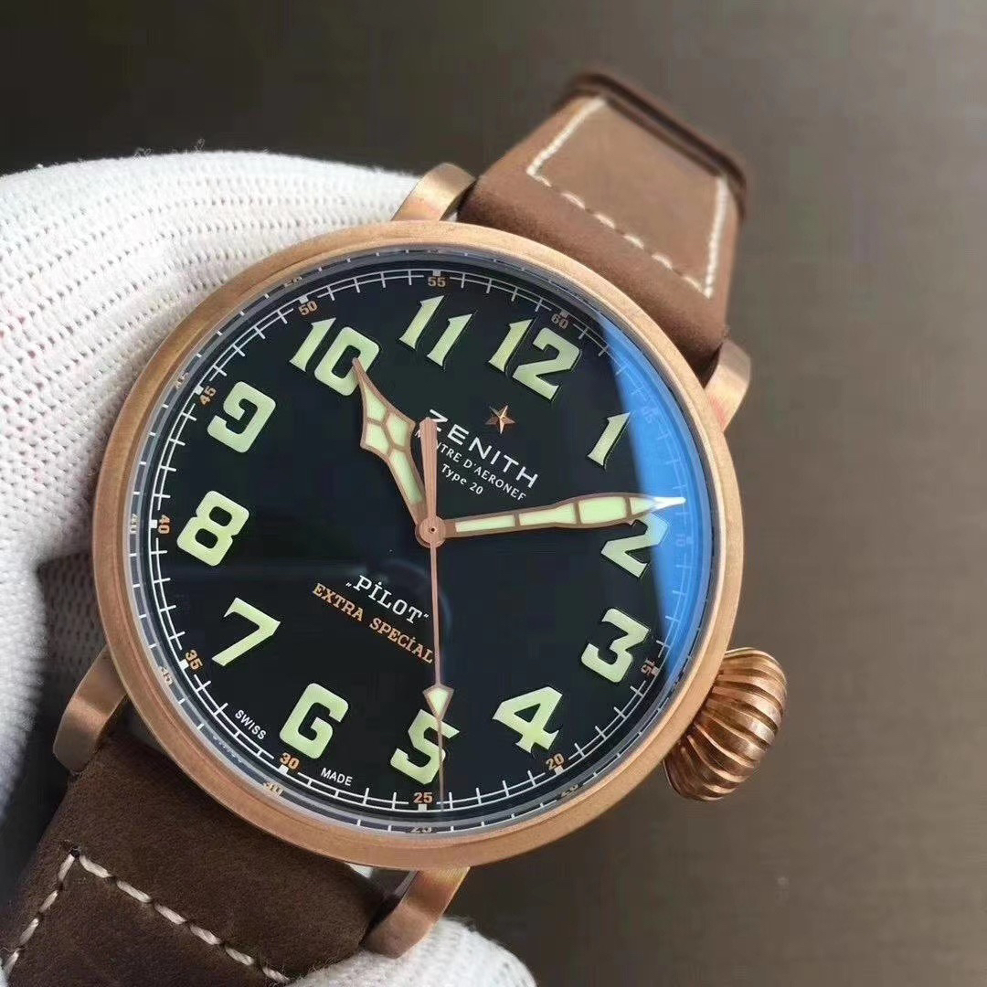 XF真力时飞行员大飞:29.2430.679/21.C753青铜男士腕表,纯青铜表壳,搭配正品一致的定制版2824亚洲版机械机芯,疯马皮表带。振频:28800每小时振荡次数,表径:46毫米,密底