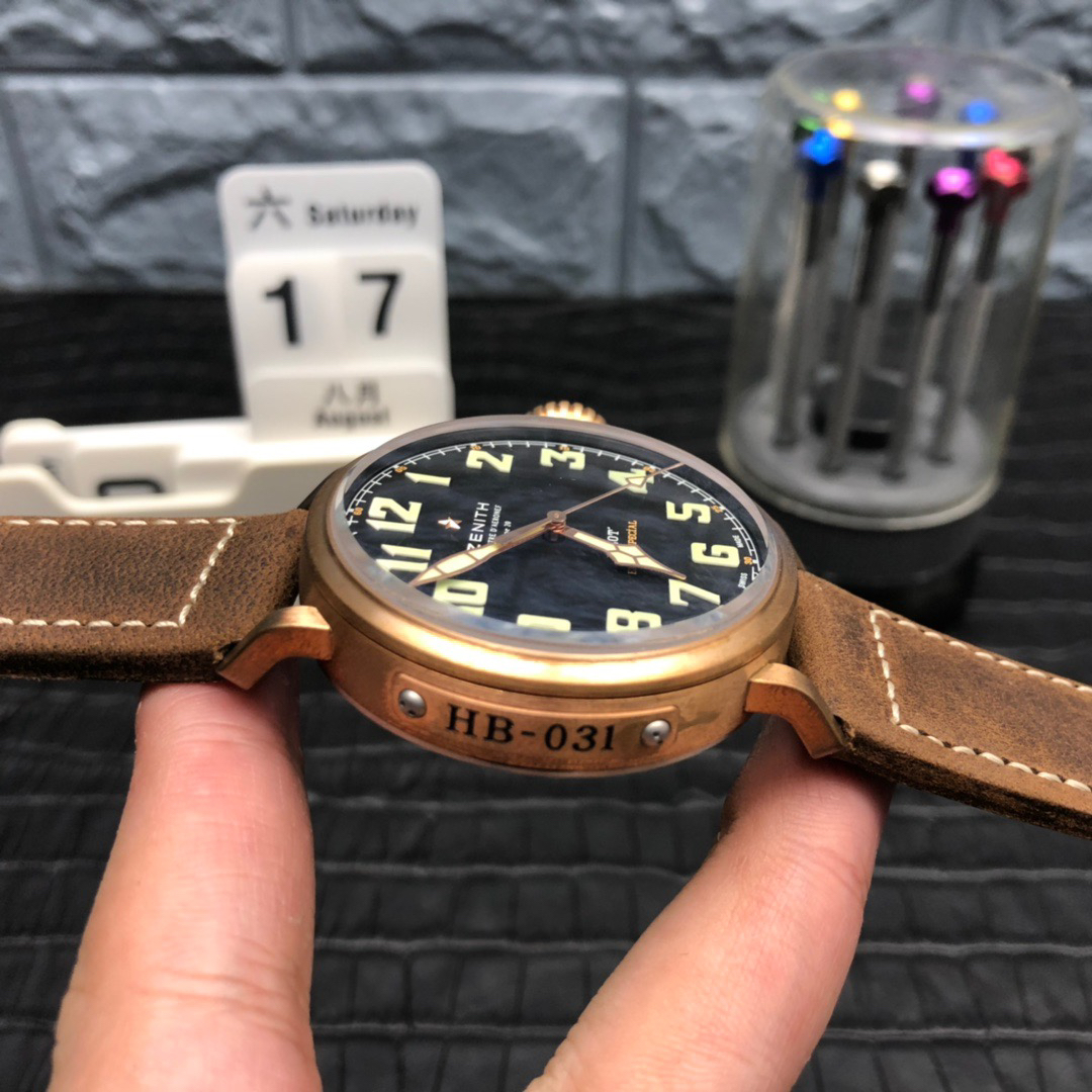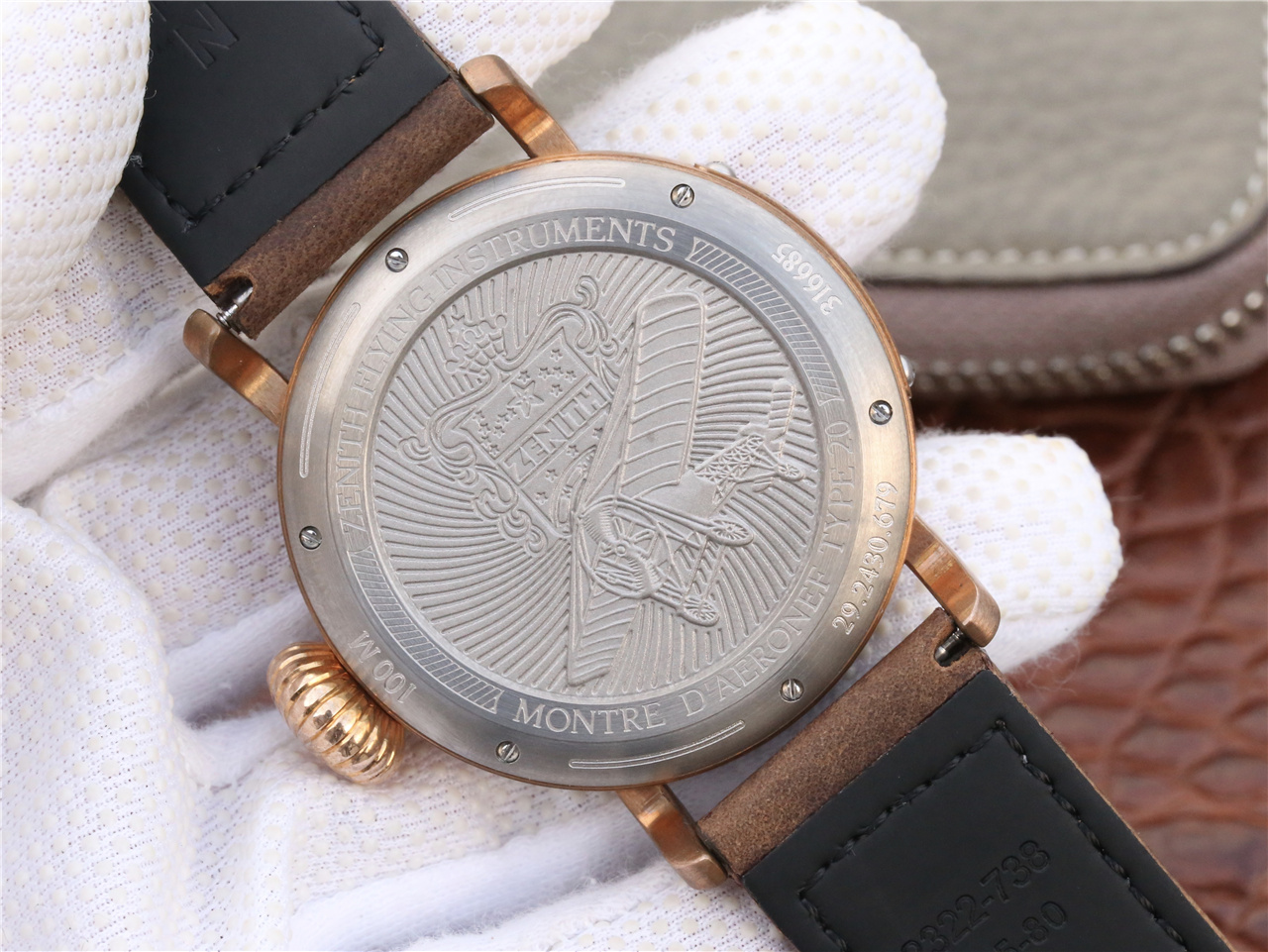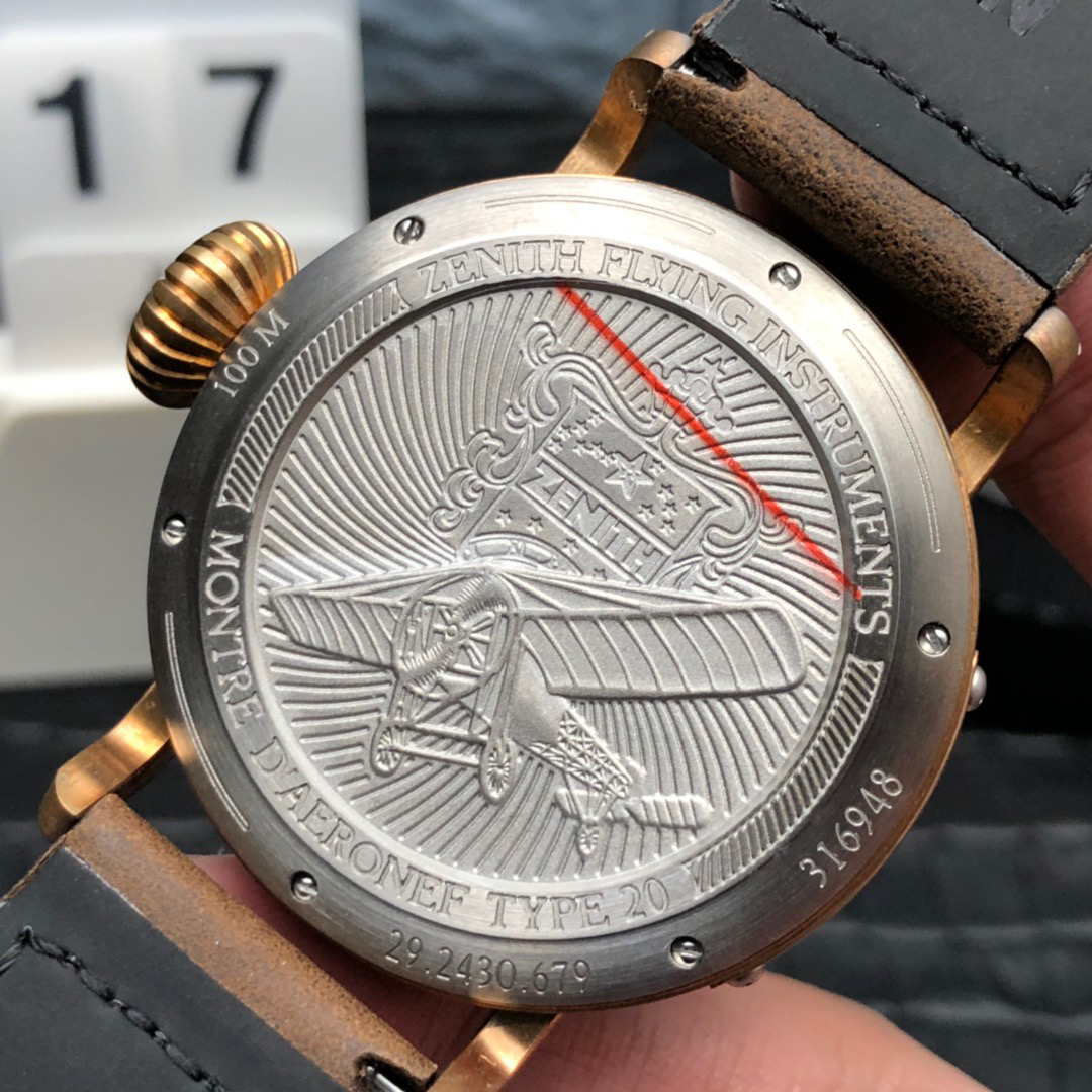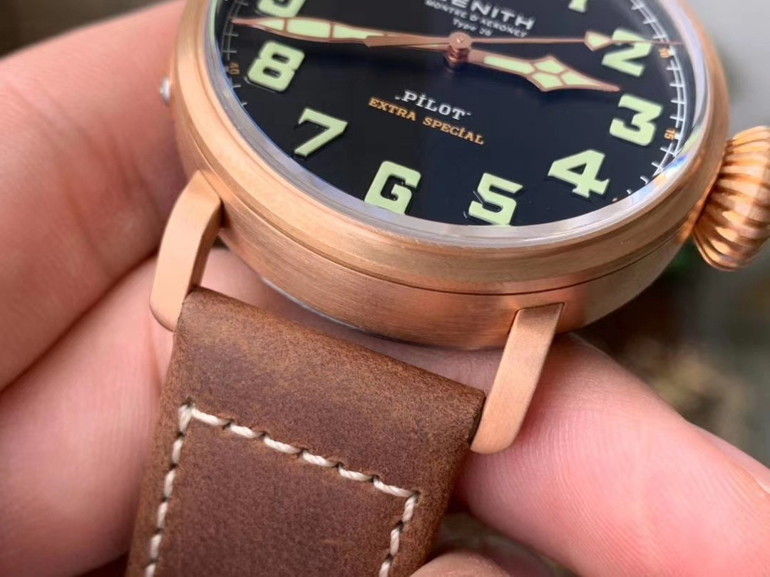 NOOBMAKER真力时飞行员大飞:29.2430.679/21.C753青铜男士腕表,纯青铜表壳,2824瑞士机械机芯,疯马皮表带。振频:28800每小时振荡次数