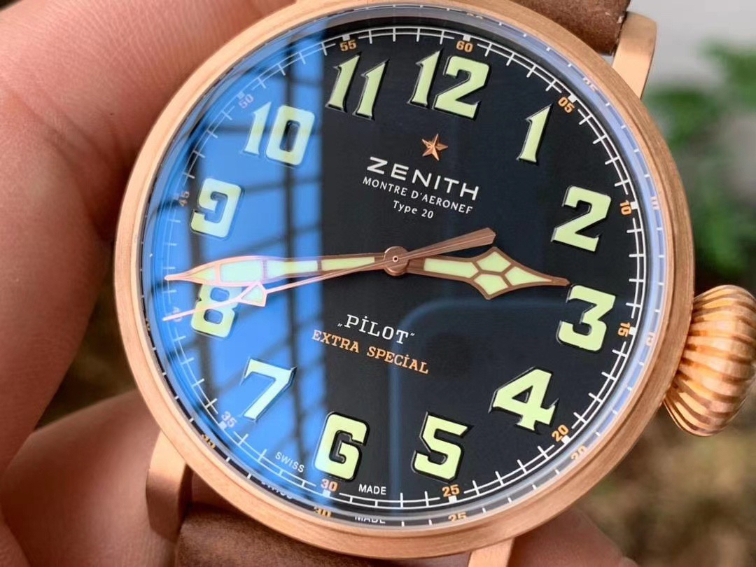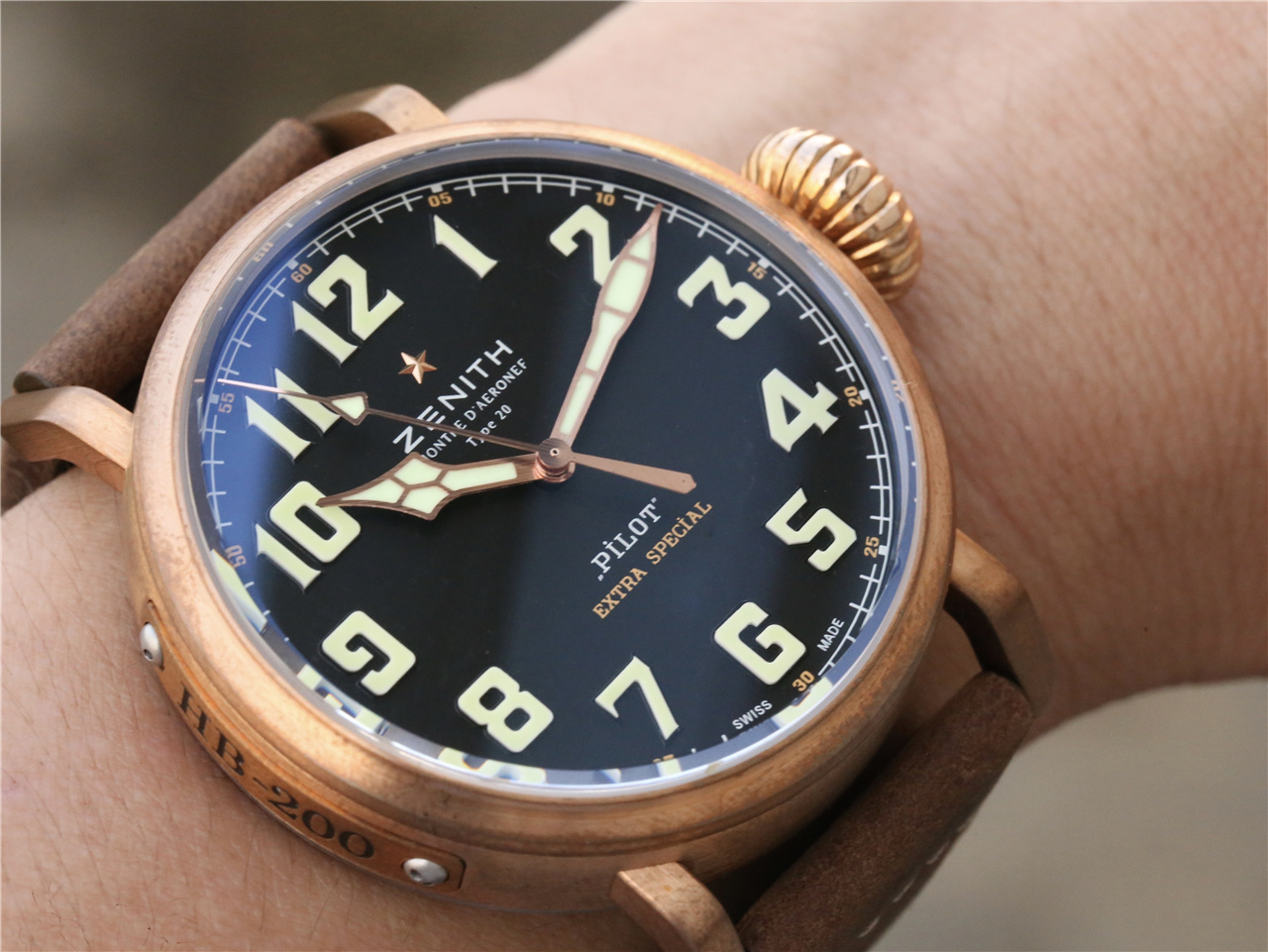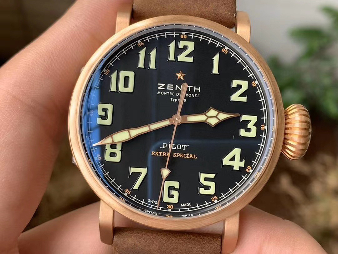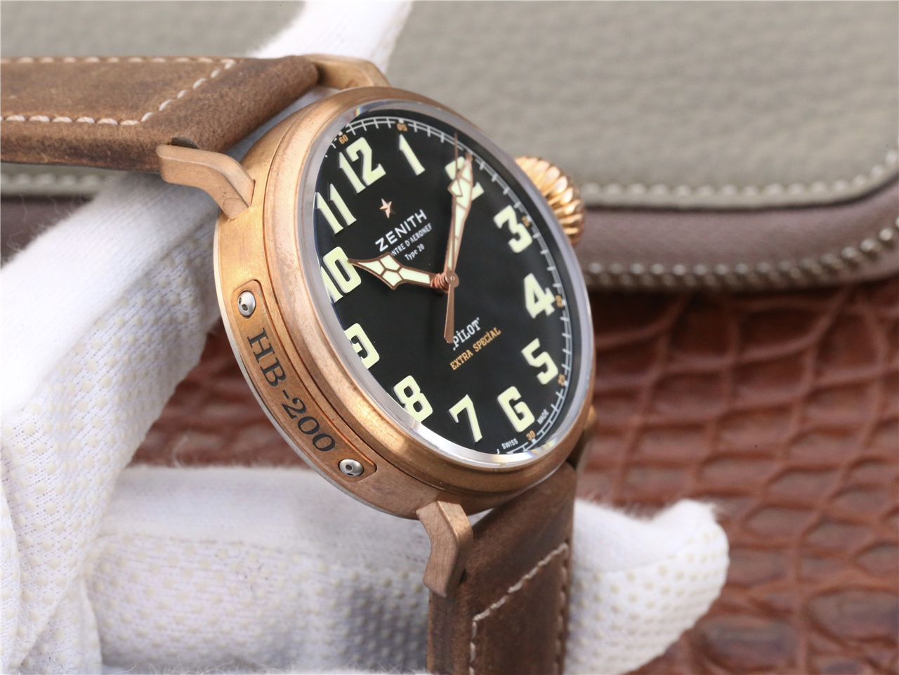 NOOBMAKER真力时飞行员大飞:29.2430.679/21.C753青铜男士腕表,纯青铜表壳,2824瑞士机械机芯,疯马皮表带。振频:28800每小时振荡次数
