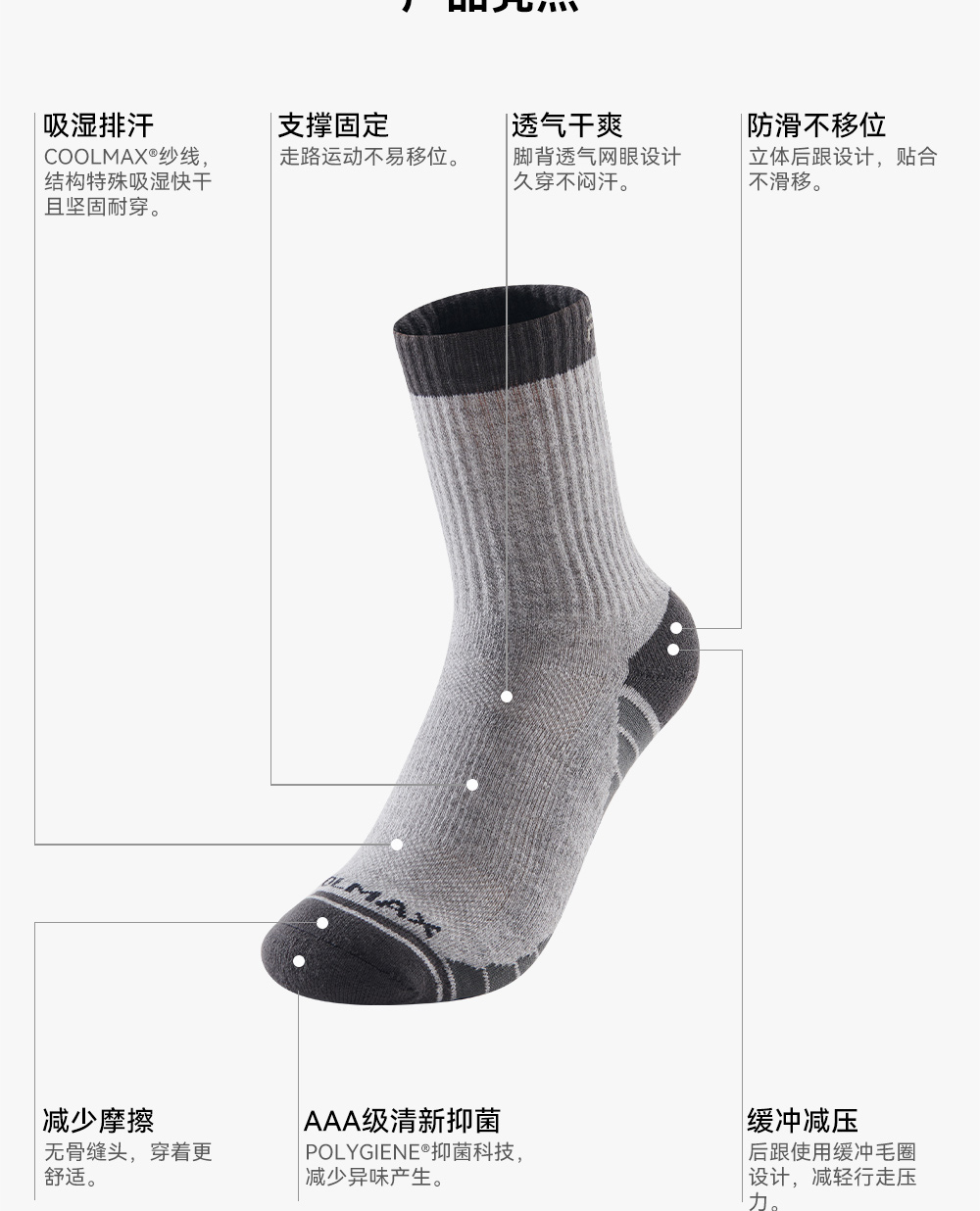 伯希和户外运动袜男短筒袜女春夏快干防臭跑步专业徒步登山袜子