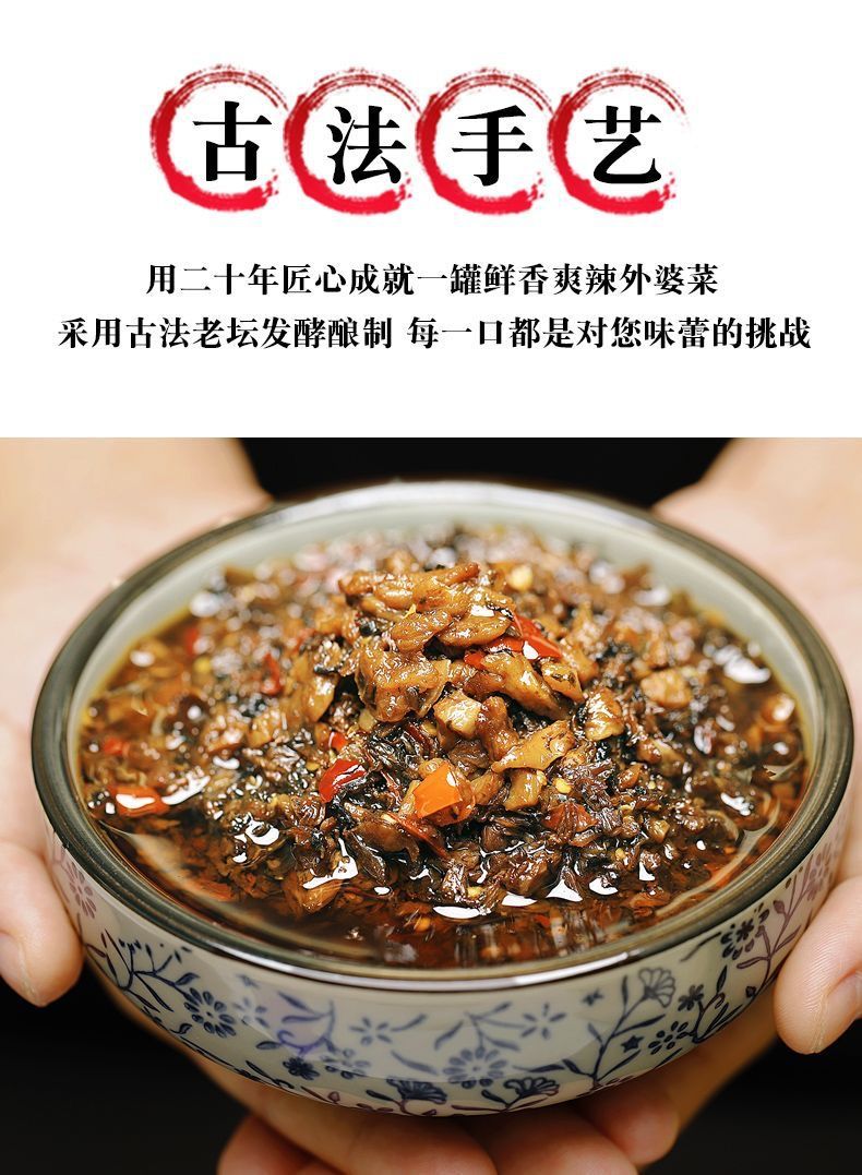 【百搭下饭菜!外婆菜】湖南特产-农家外婆菜,古法手艺制作 鲜香爽辣 开胃下饭!下饭酱拌饭拌面湘西风味梅干菜微辣即食Y