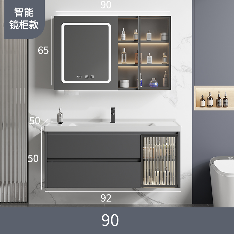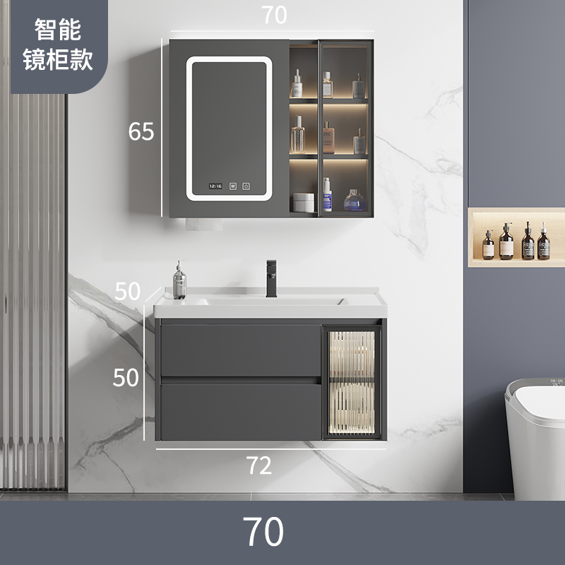 8066-灰色(陶瓷盆加智能镜柜)70/80/90/100
