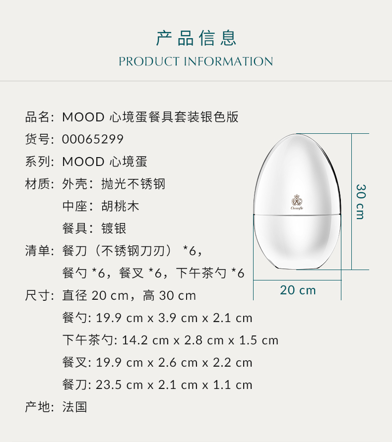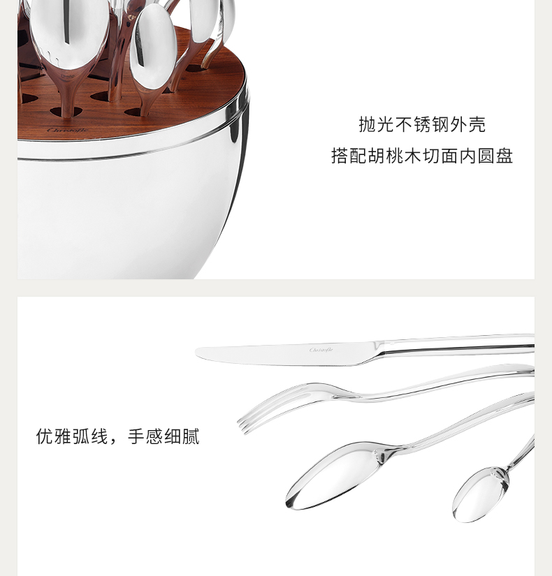CHRISTOFLE 昆庭 MOOD 心境蛋系列 银色24件西餐餐具套装