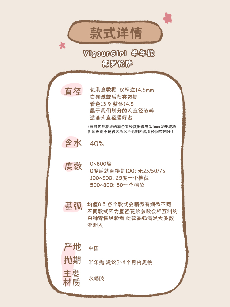 VigourGirl系列 | 佛罗伦萨 14.5mm白狮参考着色大直径 半年抛