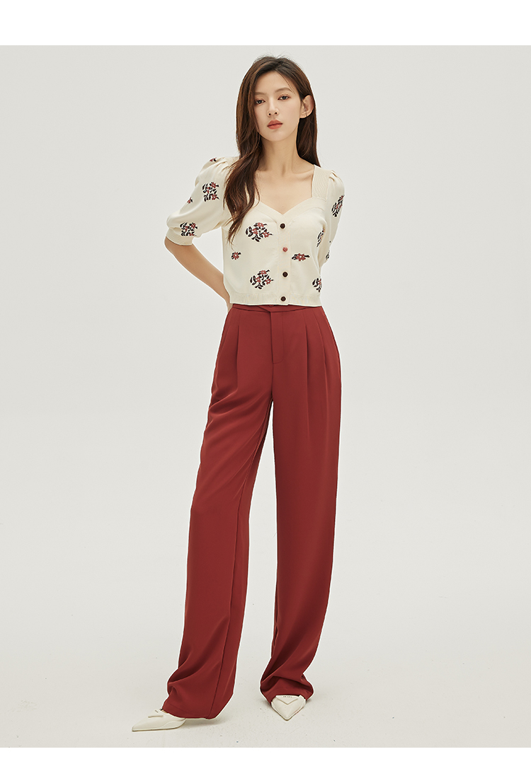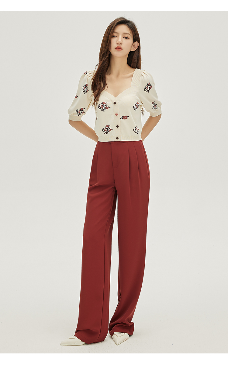 oldcolour简约休闲裤春季新款松紧高腰阔腿直筒长裤女P11073409