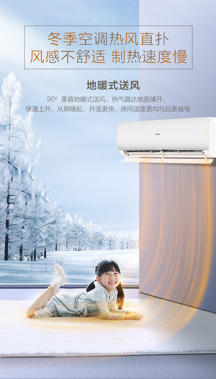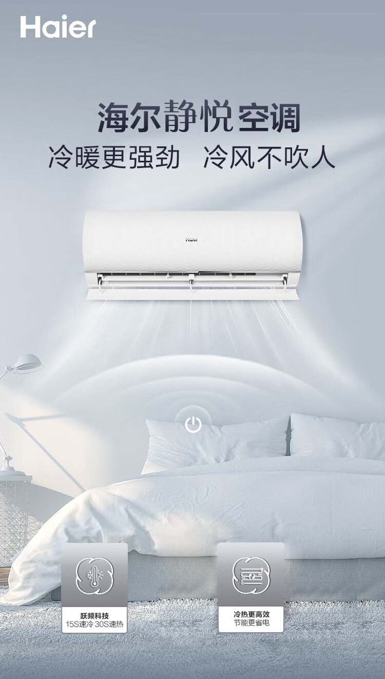 海尔(Haier)1.5P 挂机 静悦 一级能效 变频冷暖 56℃自清洁 壁挂式空调 KFR-35GW/B1KDA81U1