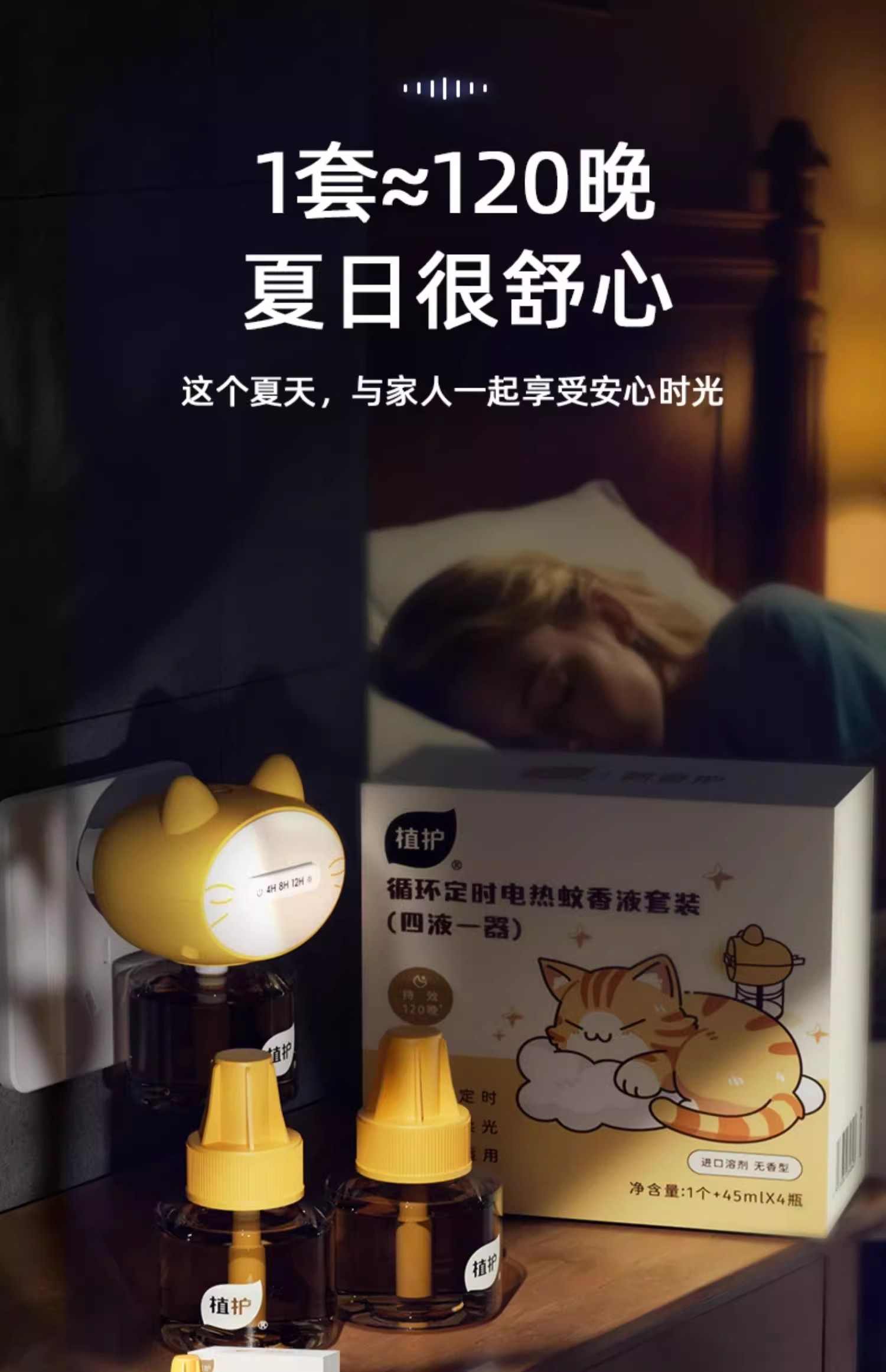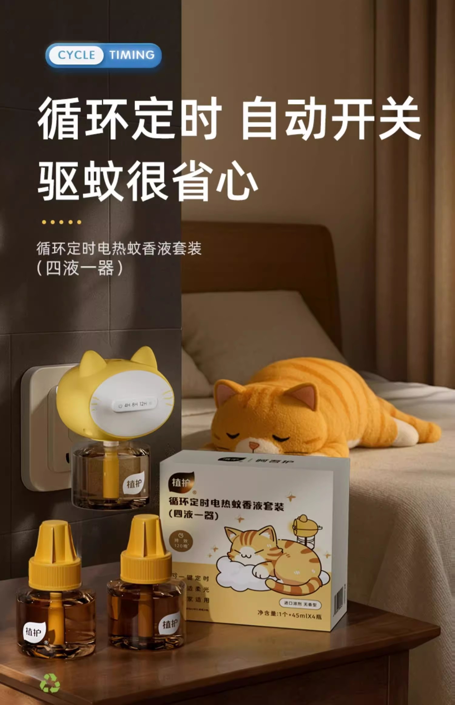 植护 循环定时电热蚊香液 自动开关 室内用温和无味驱蚊虫 48小时发货