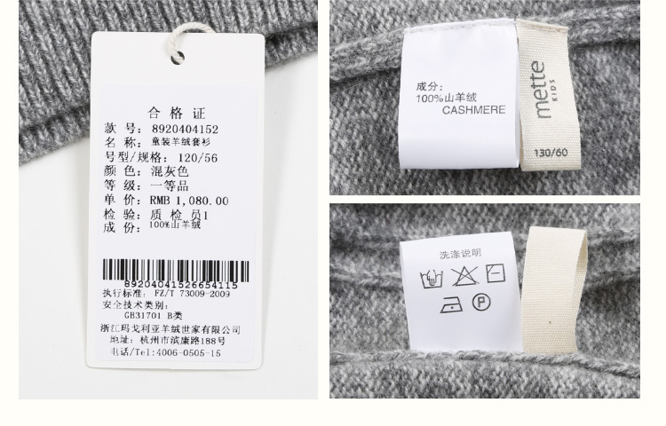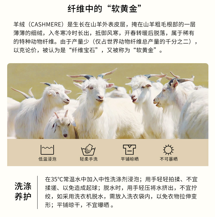 | 材质成分: 山羊绒(羊绒)100% |