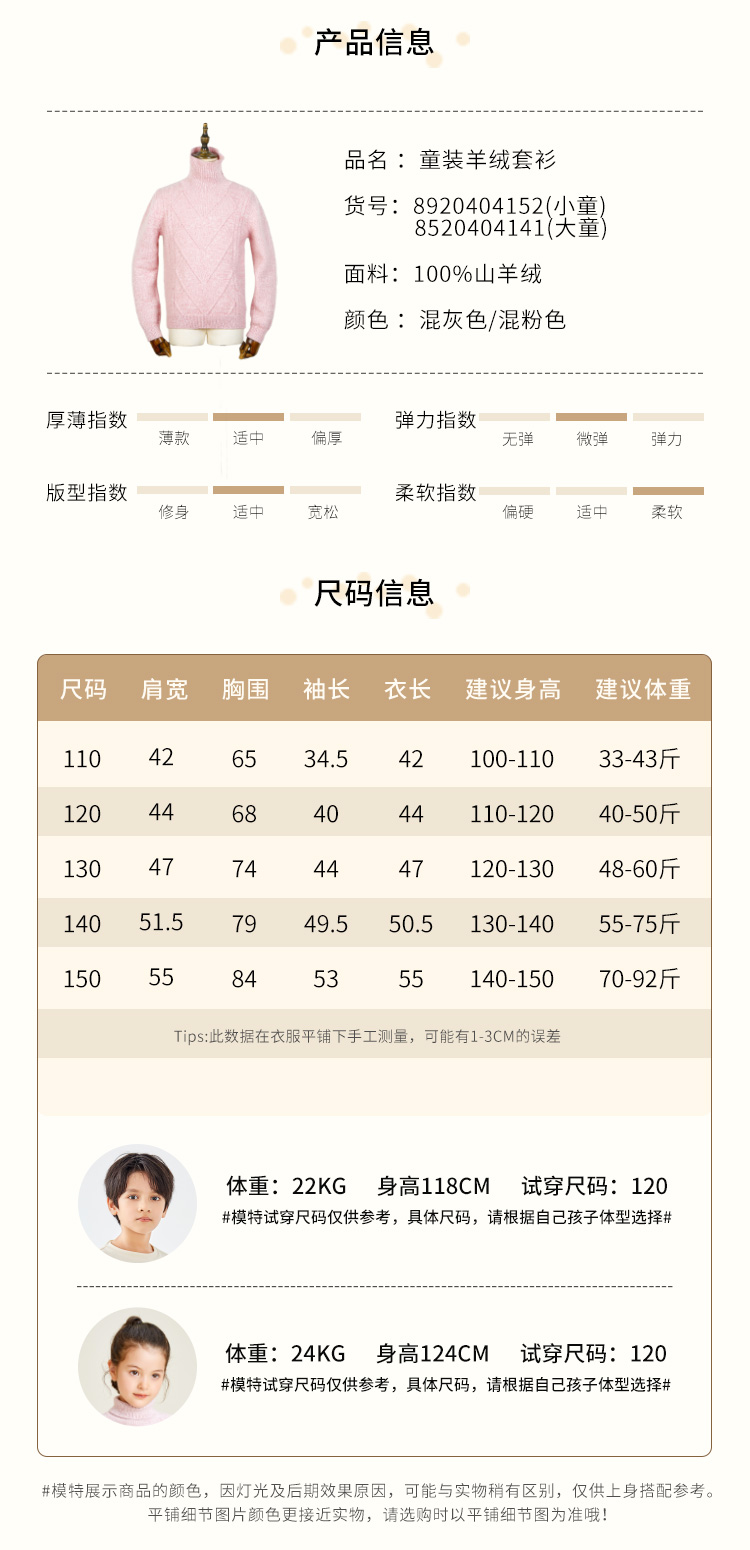 | 参考身高: 110/52 120/56 130/60 140/64 150/68 | 适用季节: 冬季 |