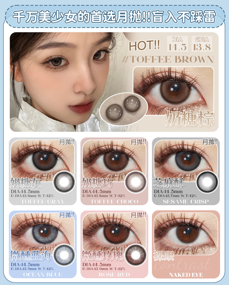 【小红书推荐款】cheoco奶糖灰,月抛/直径14.5着色13.8,58/一副,88/两副,208/五副
