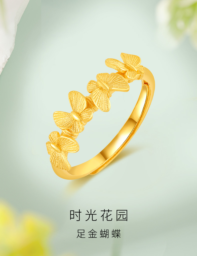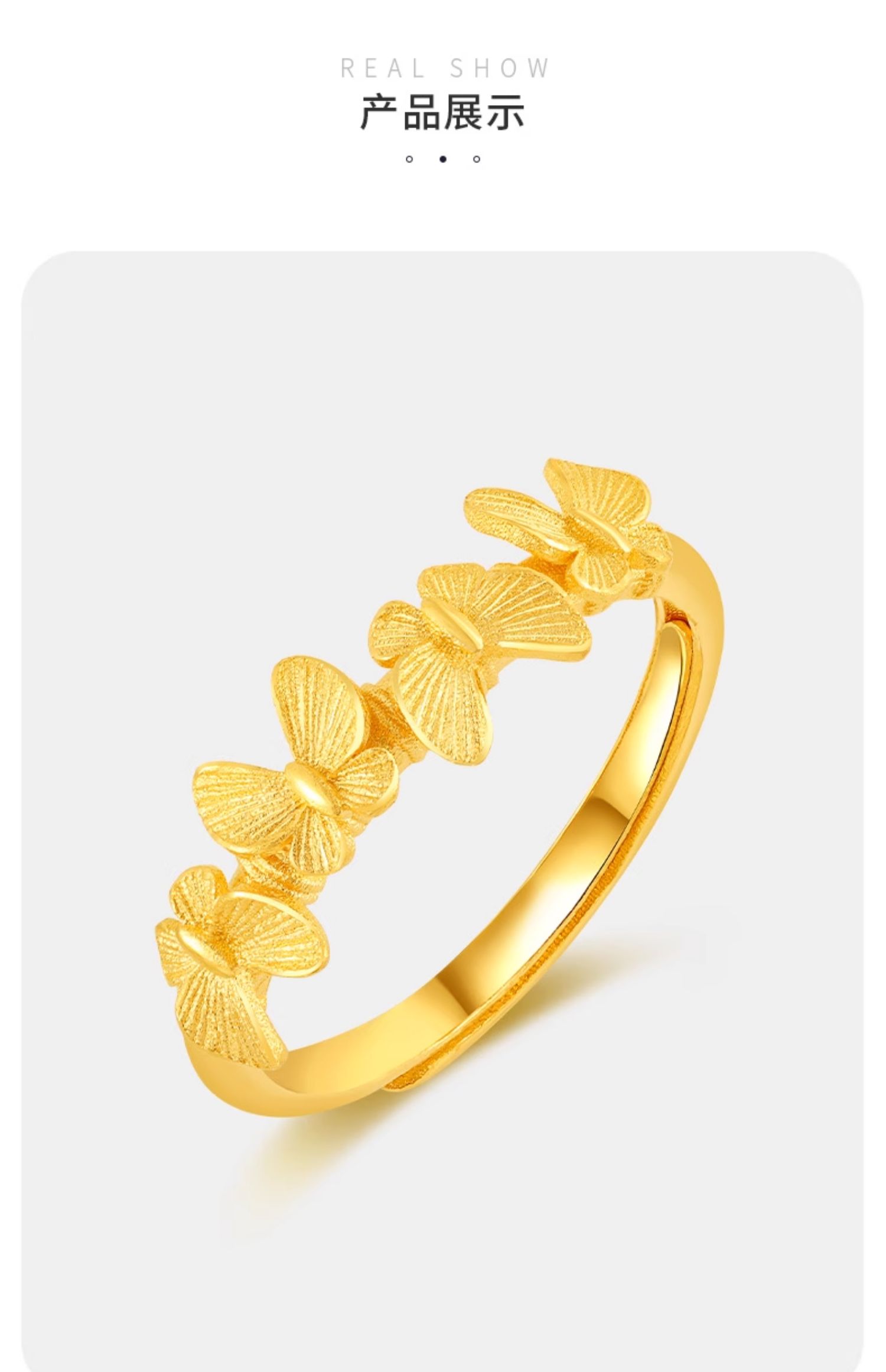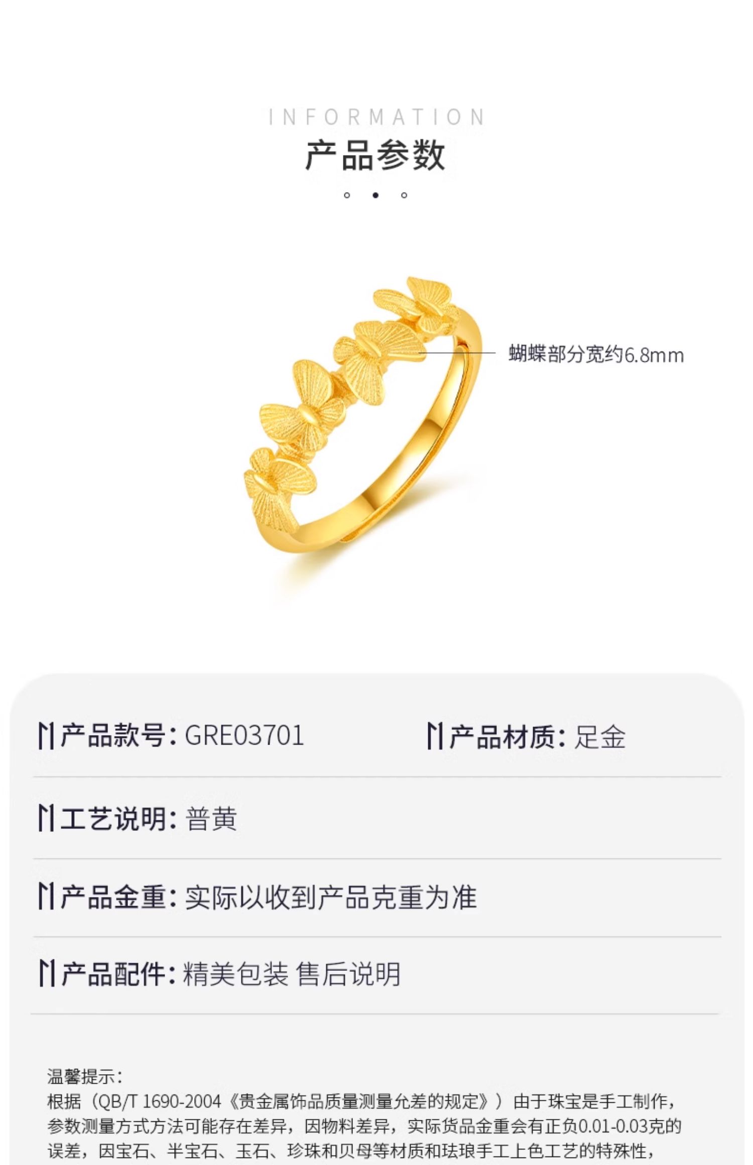 蝴蝶黄金戒指女足金素圈金指环礼物送女友母亲节520【按克计价黄金1】MEMORA诗普琳GRE03701(线上专供)