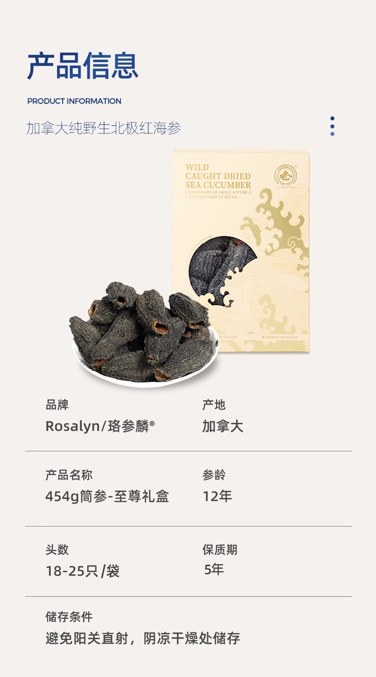 ROSALYN 珞参麟北极野生干海参 10年参龄 整筒参 150克红色礼盒