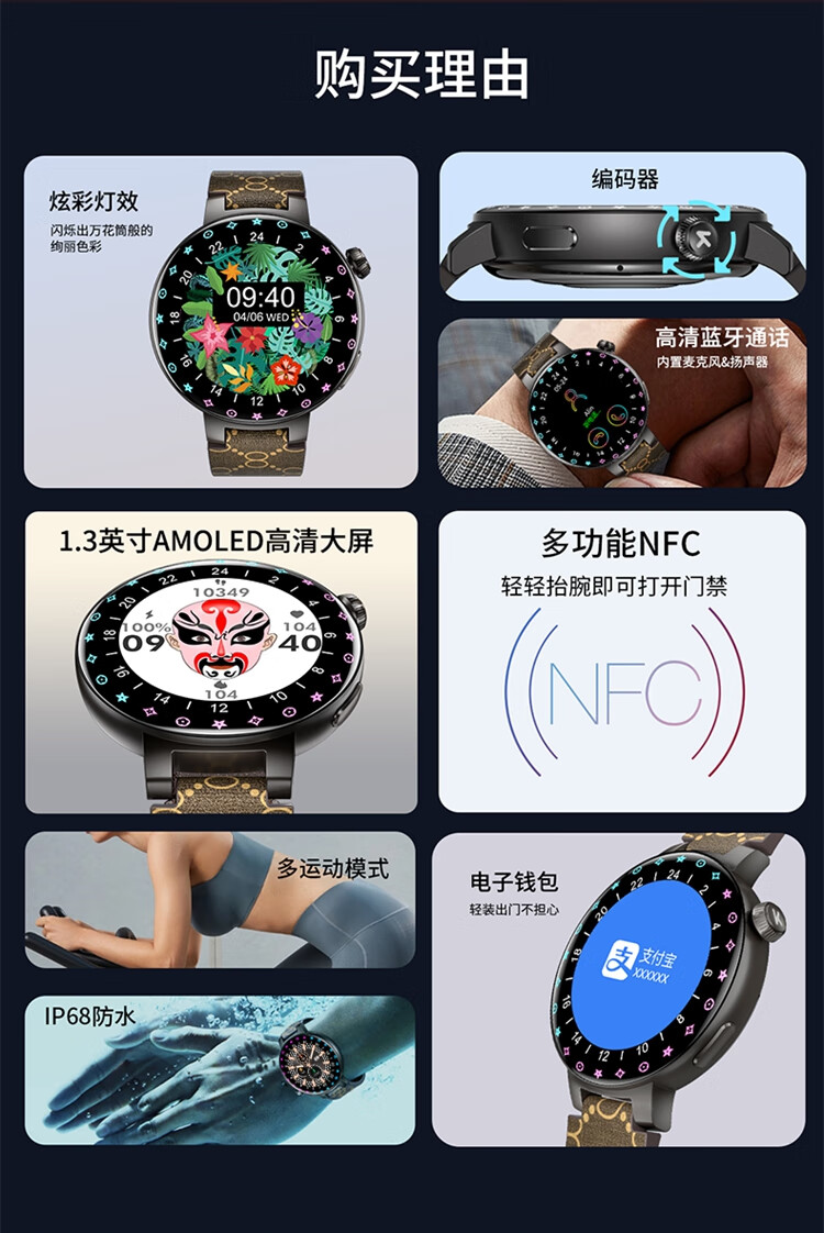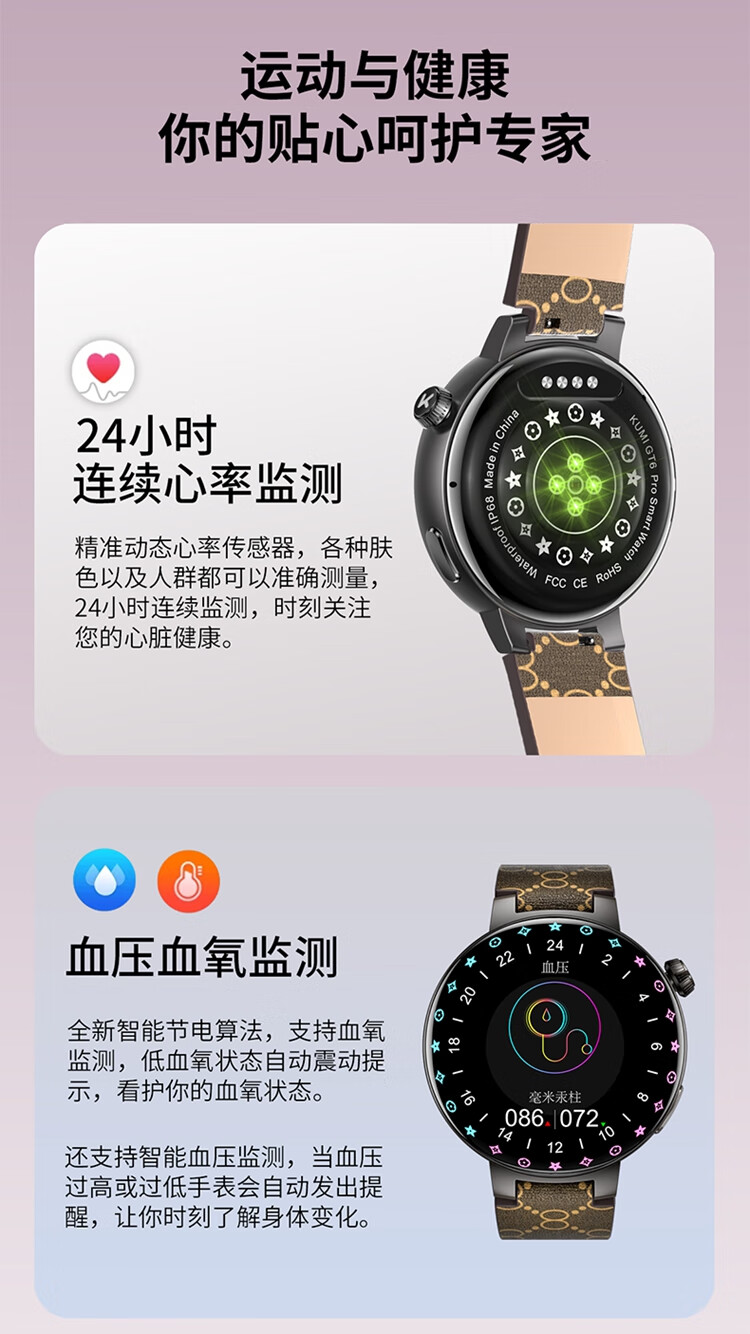 KUMI库觅 GT6 Pro智能手表男女款时尚个性炫彩灯效蓝牙通话NFC门禁离线支付心率血压睡眠监测