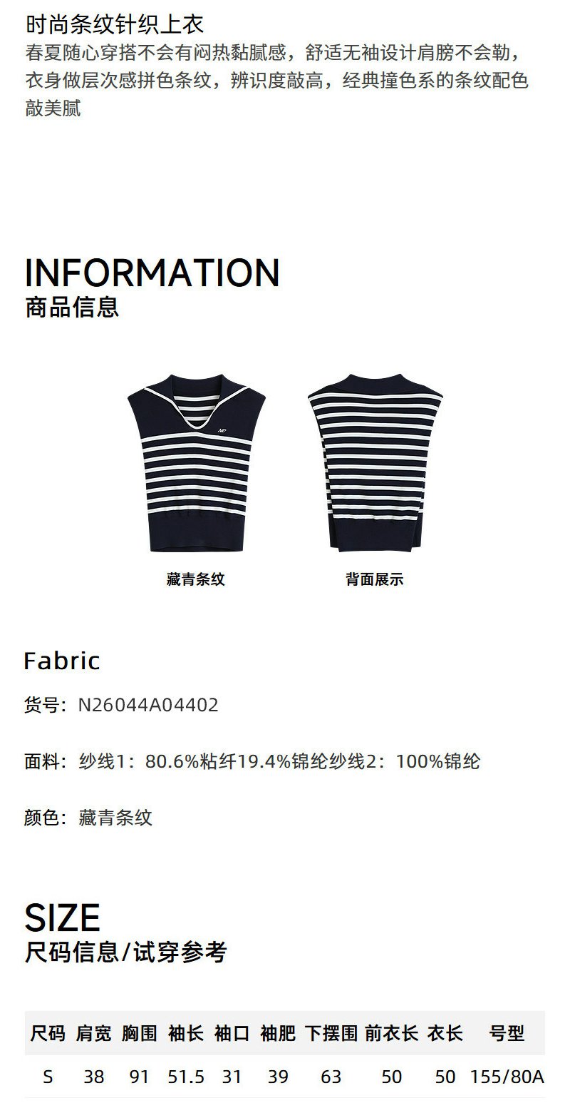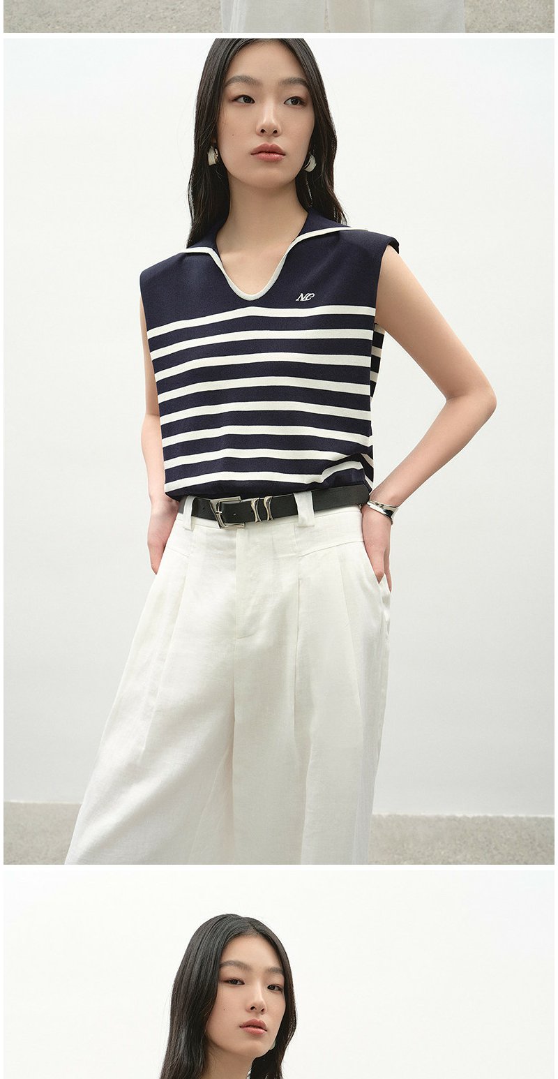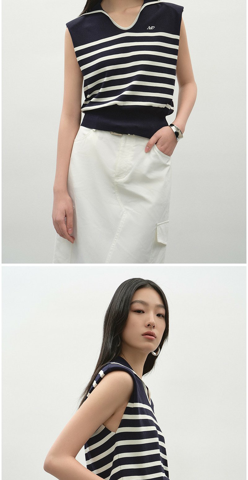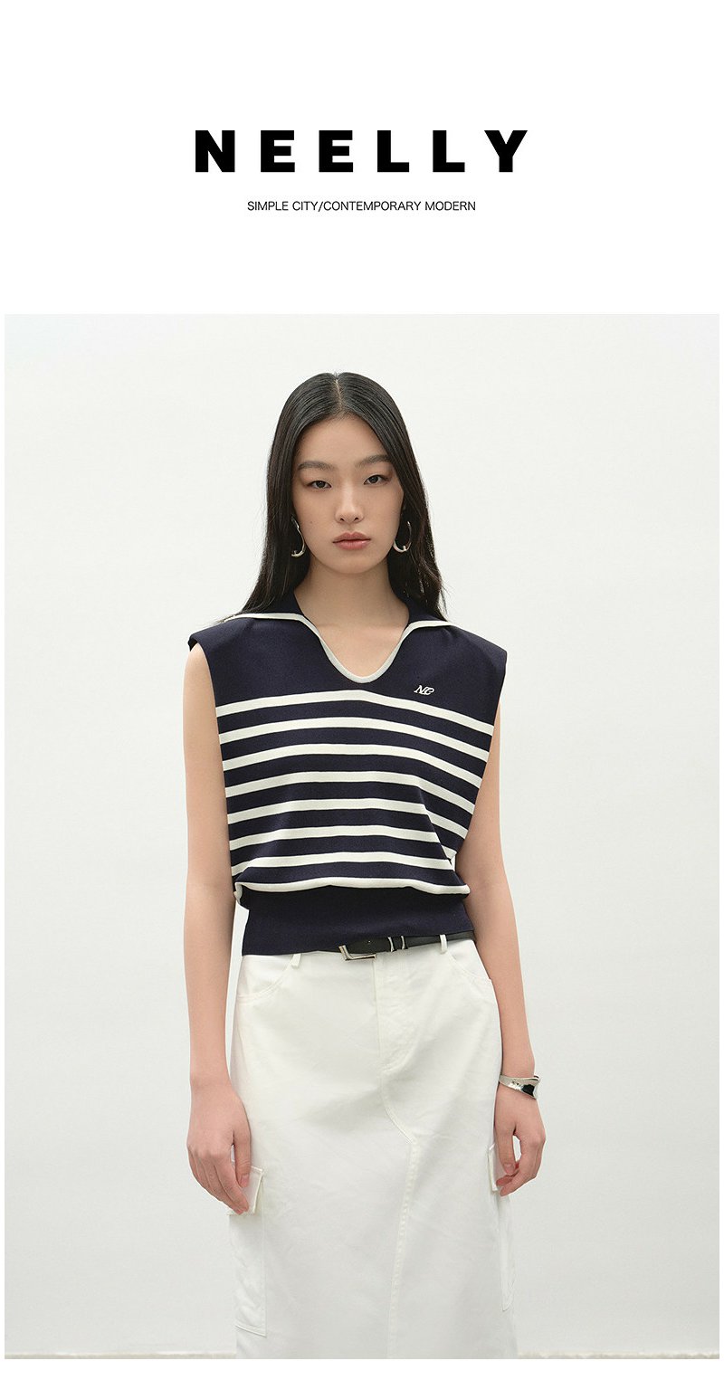 NEELLY纳俪商场同款夏季新款时尚条纹针织上衣女无袖设计感针织衫N26044A04402