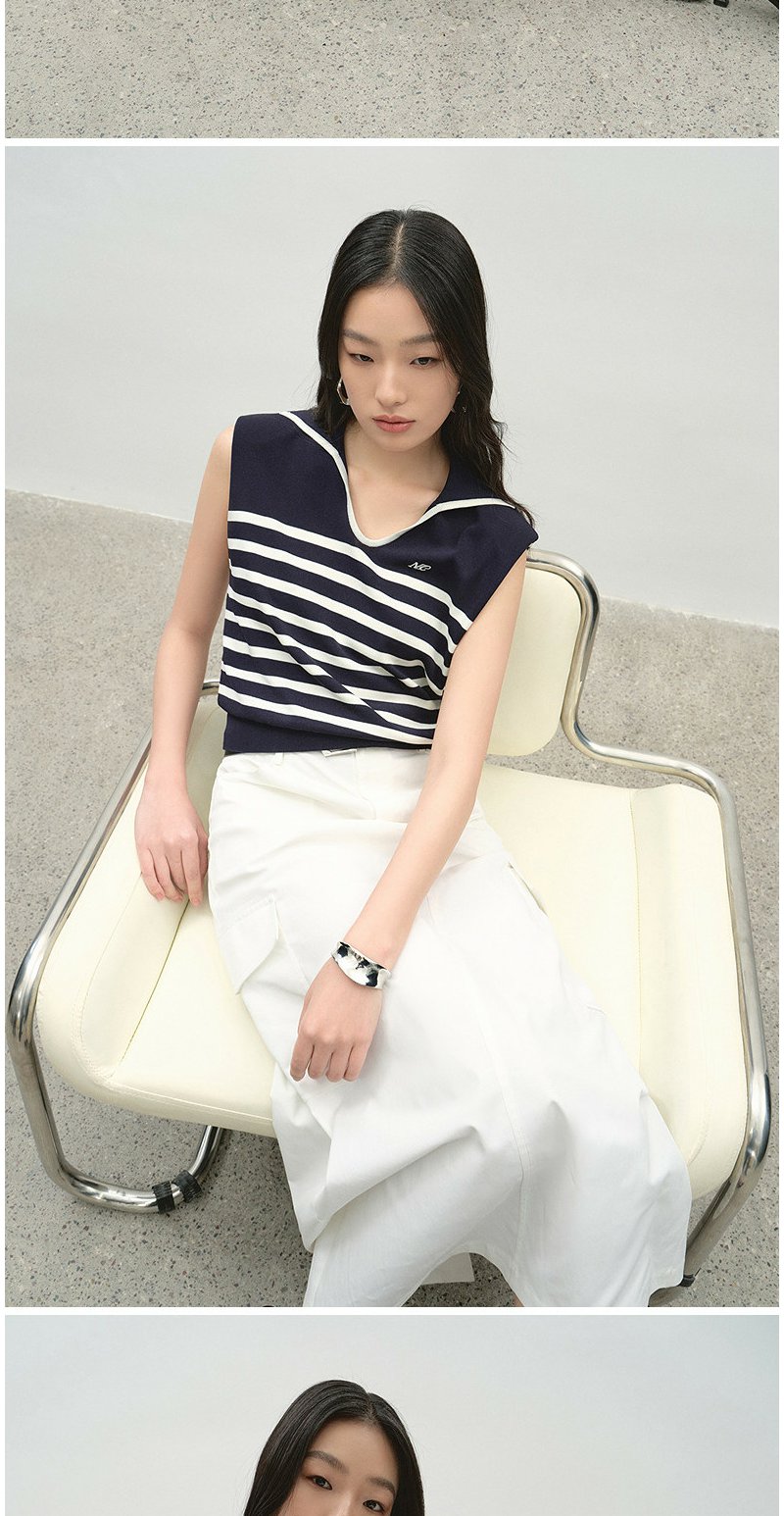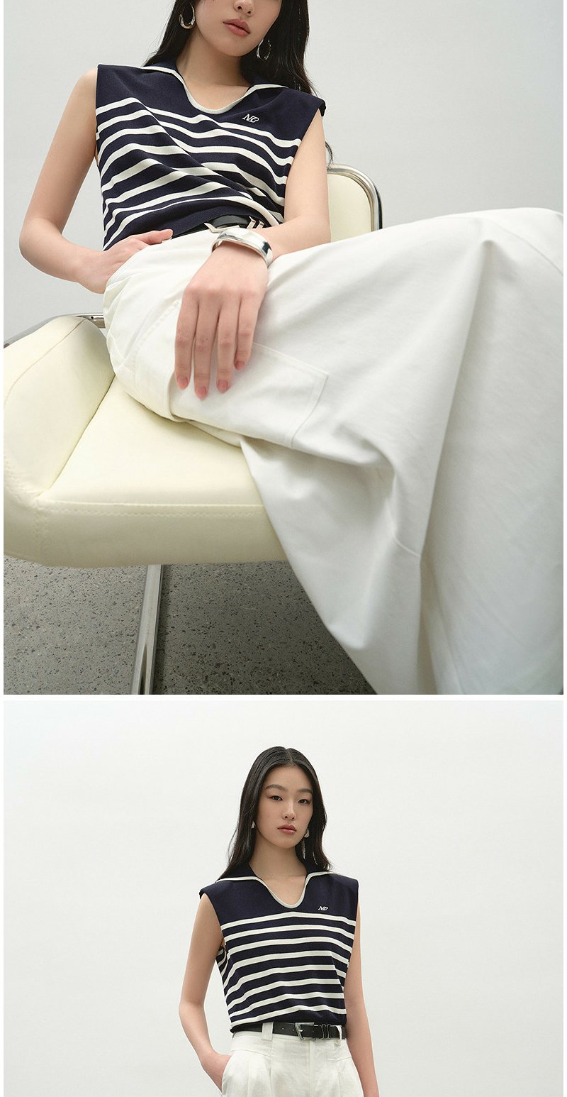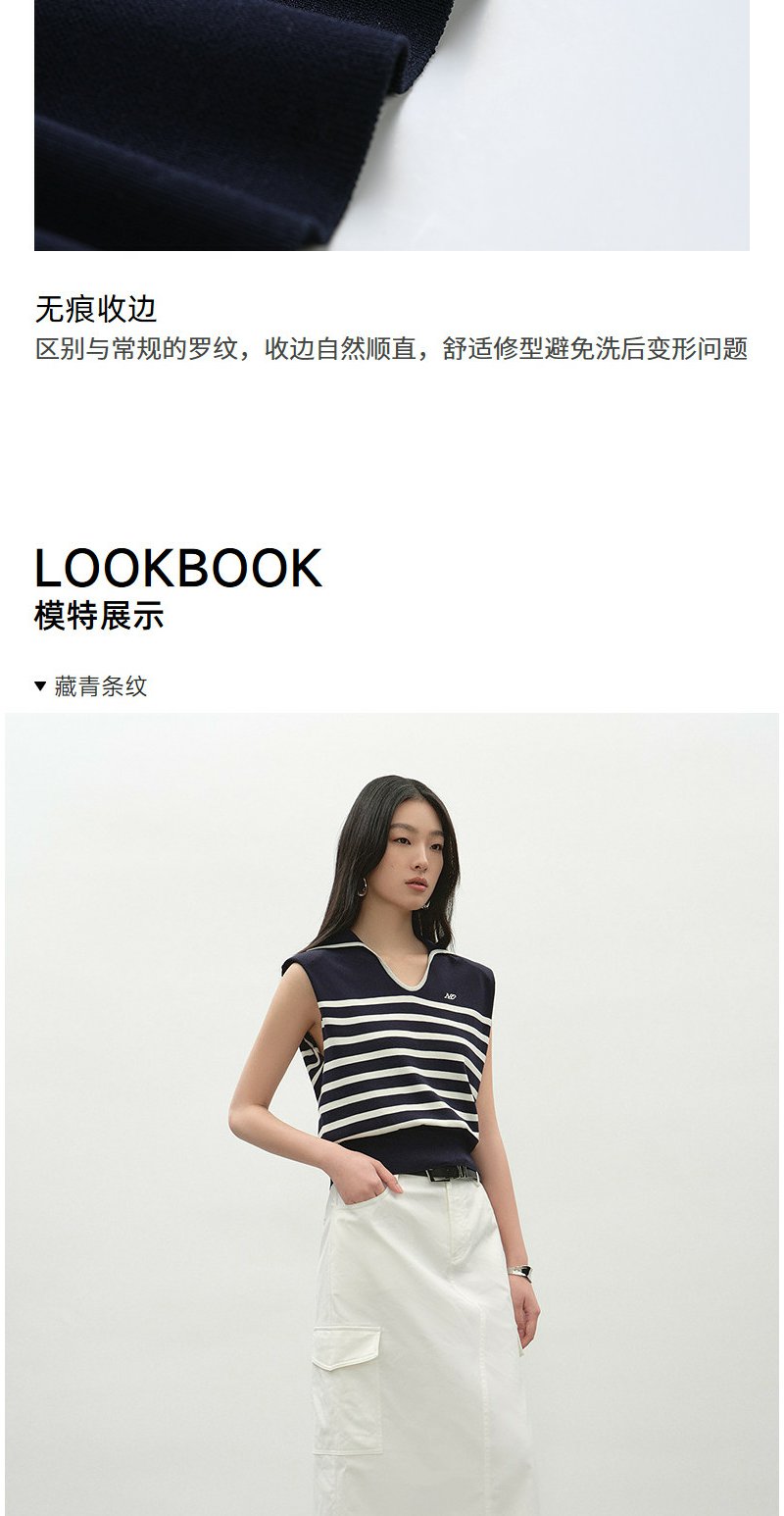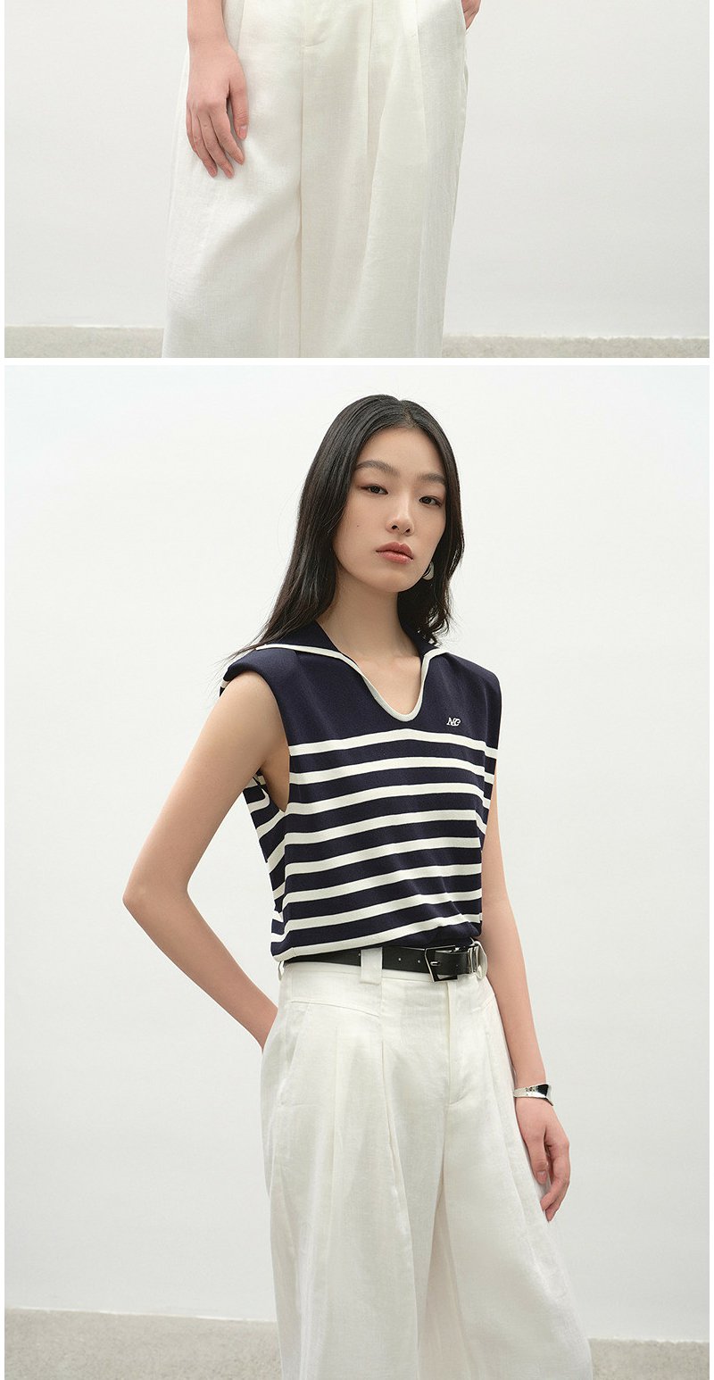 NEELLY纳俪商场同款夏季新款时尚条纹针织上衣女无袖设计感针织衫N26044A04402