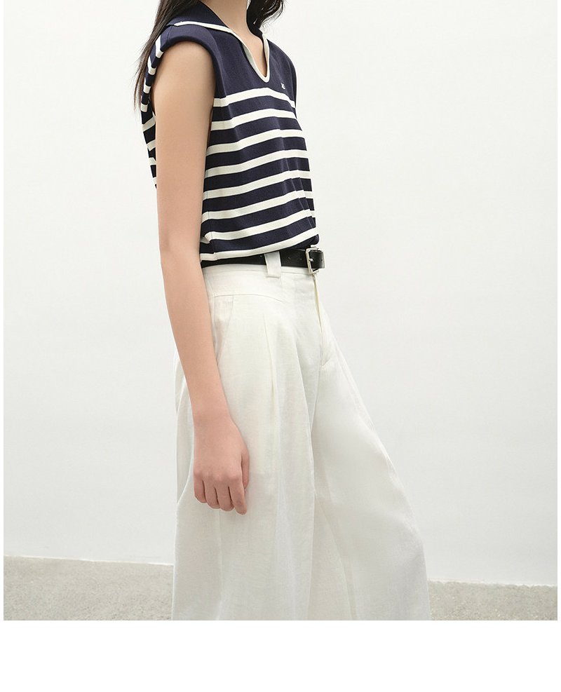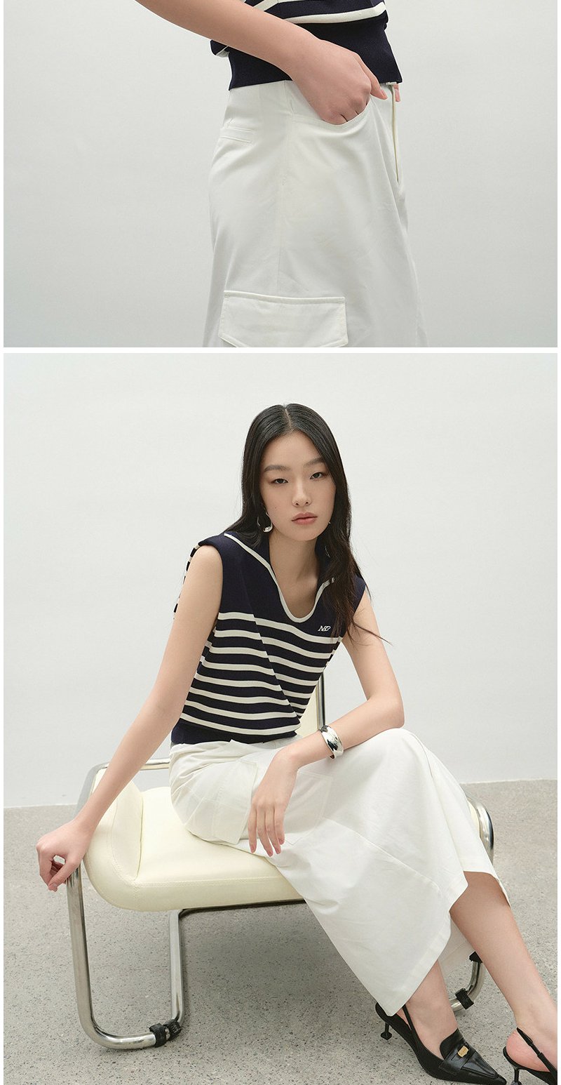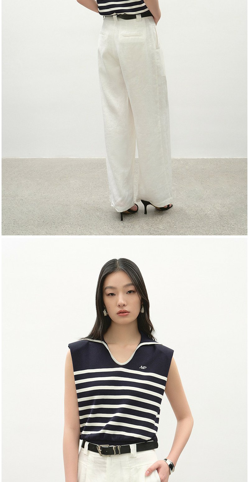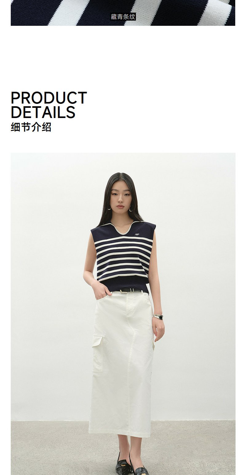 NEELLY纳俪商场同款夏季新款时尚条纹针织上衣女无袖设计感针织衫N26044A04402