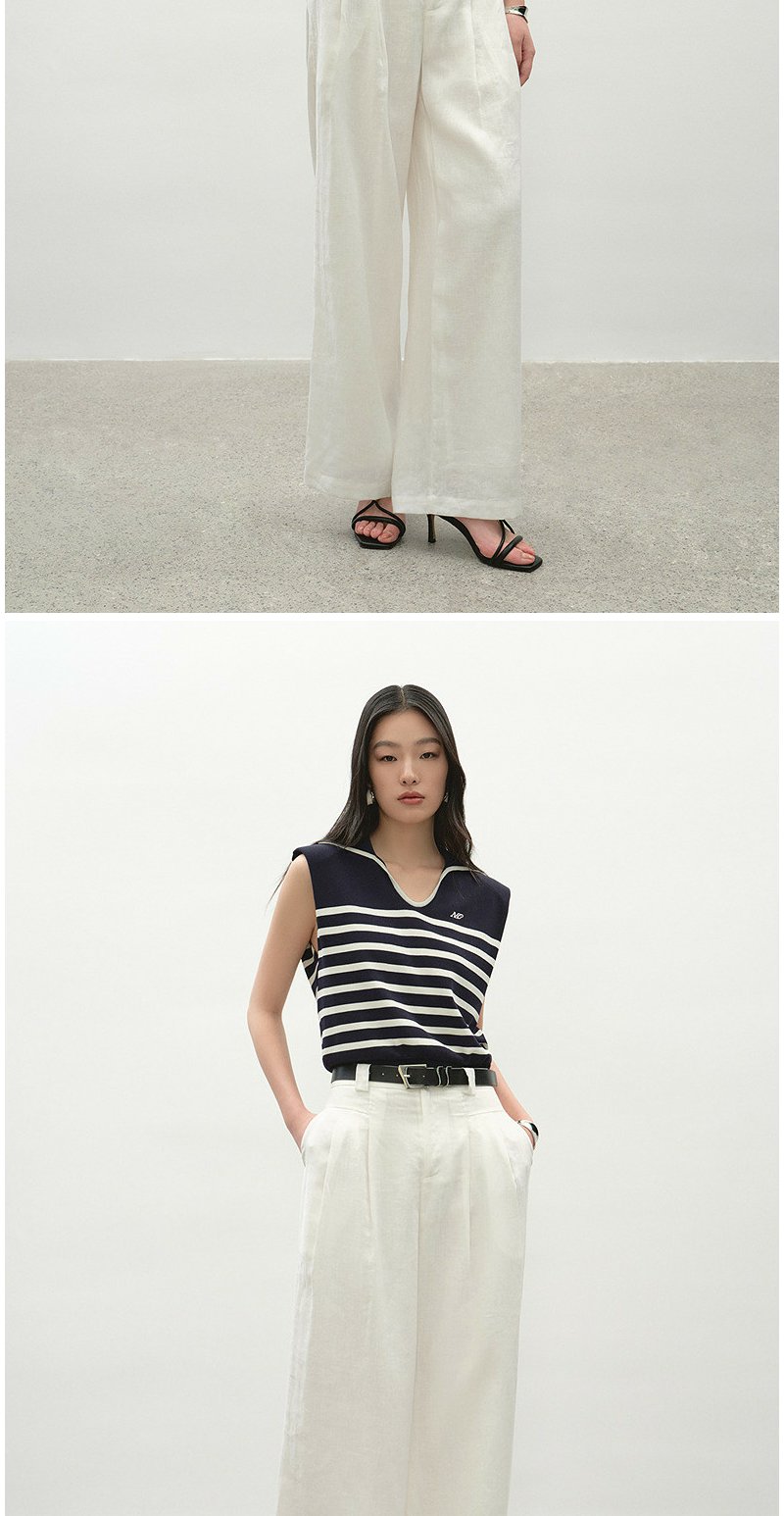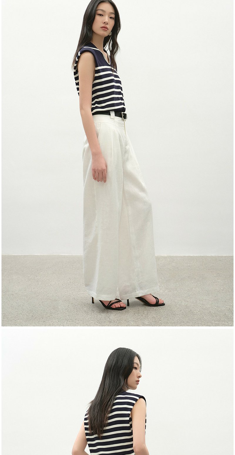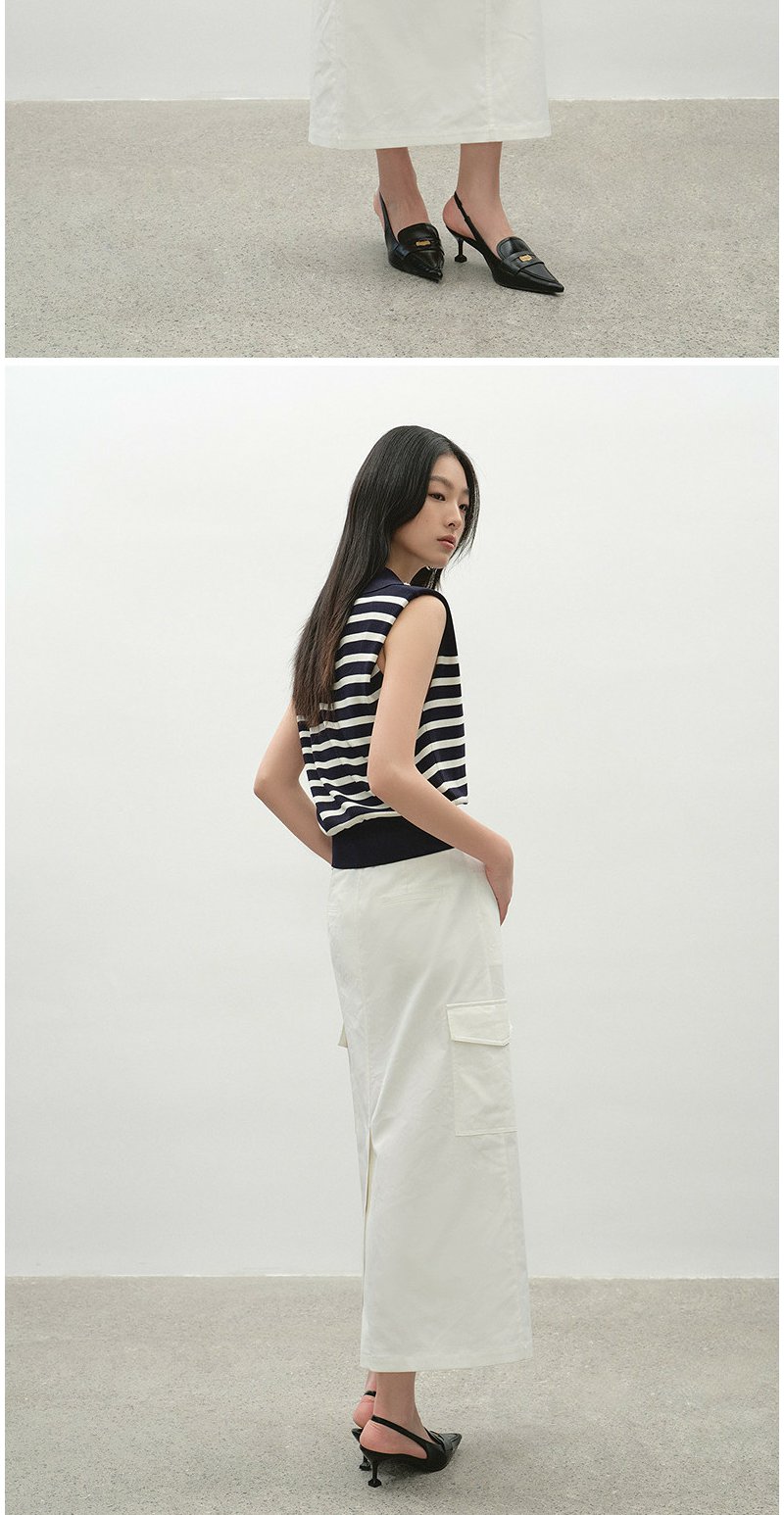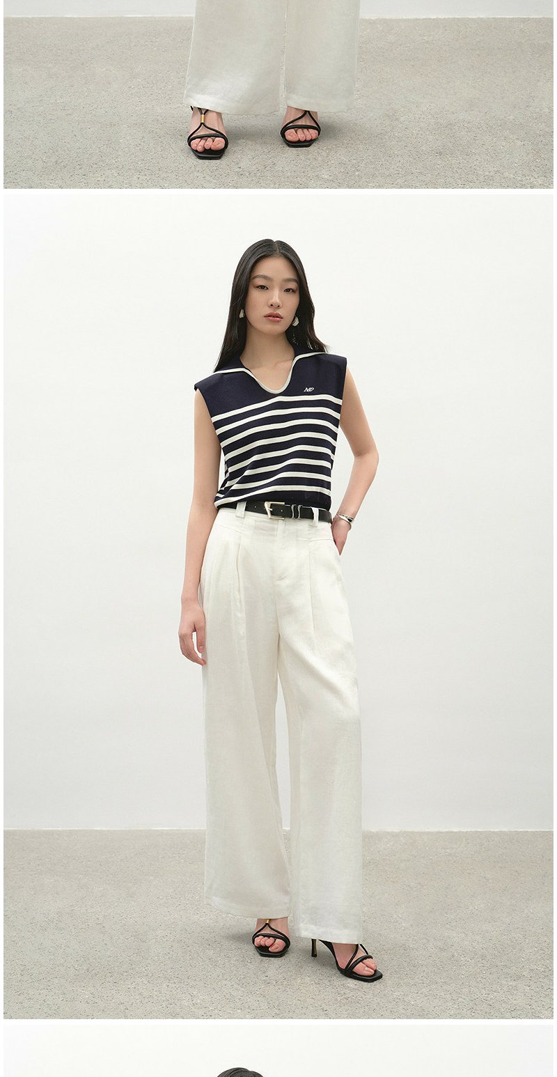 NEELLY纳俪商场同款夏季新款时尚条纹针织上衣女无袖设计感针织衫N26044A04402