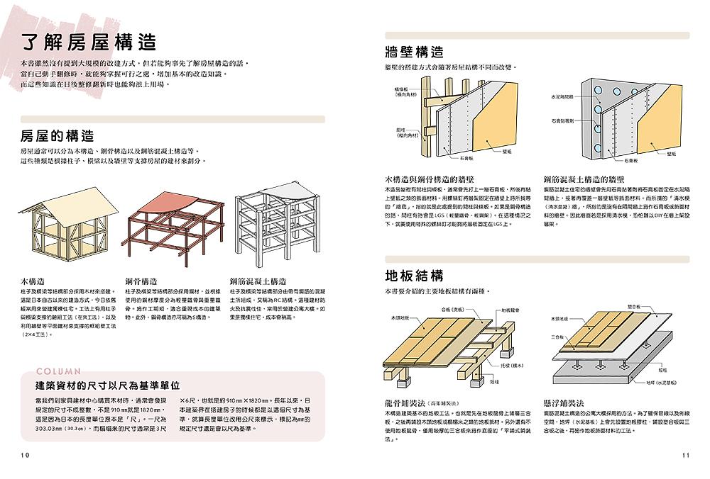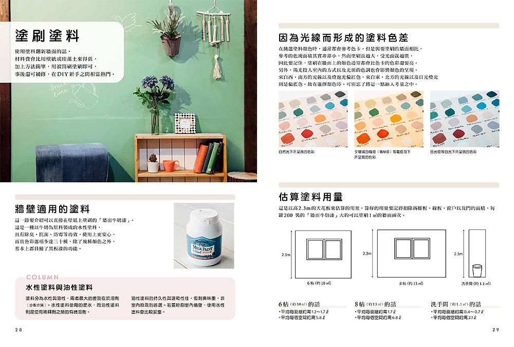 從壁面到地板的鋪法、櫥櫃等收納家具的製作方法、油漆技巧、