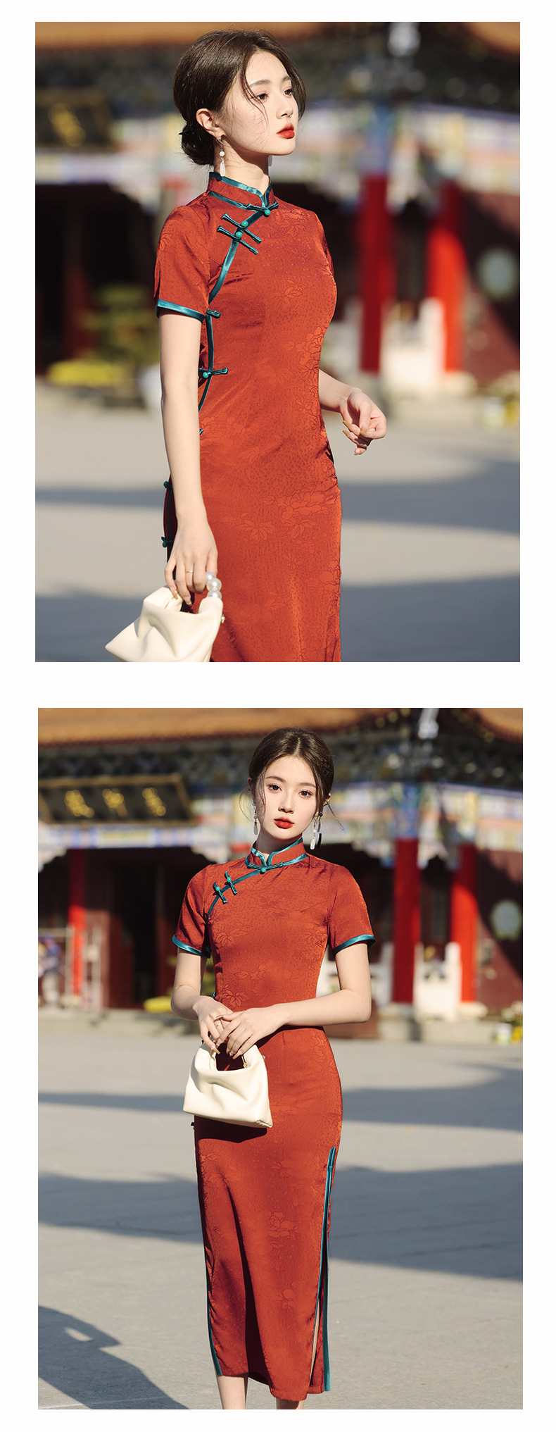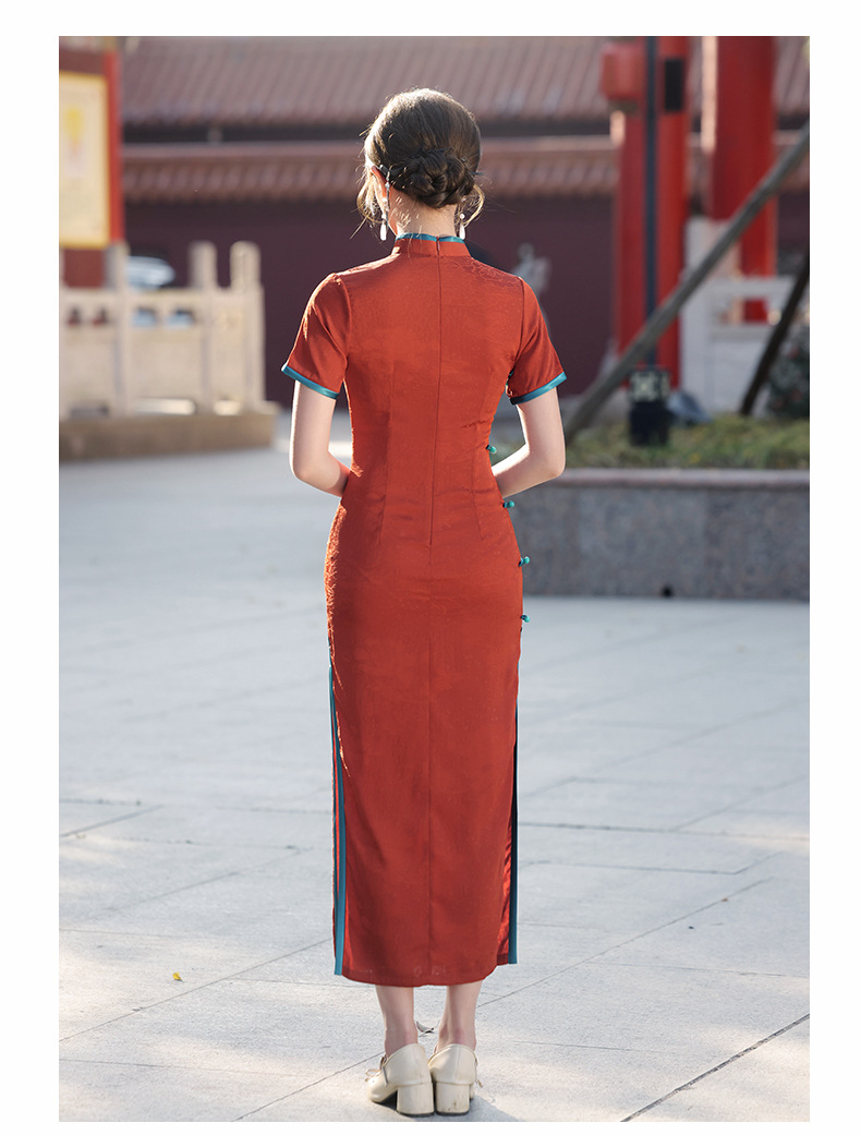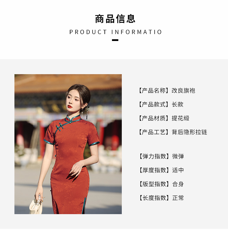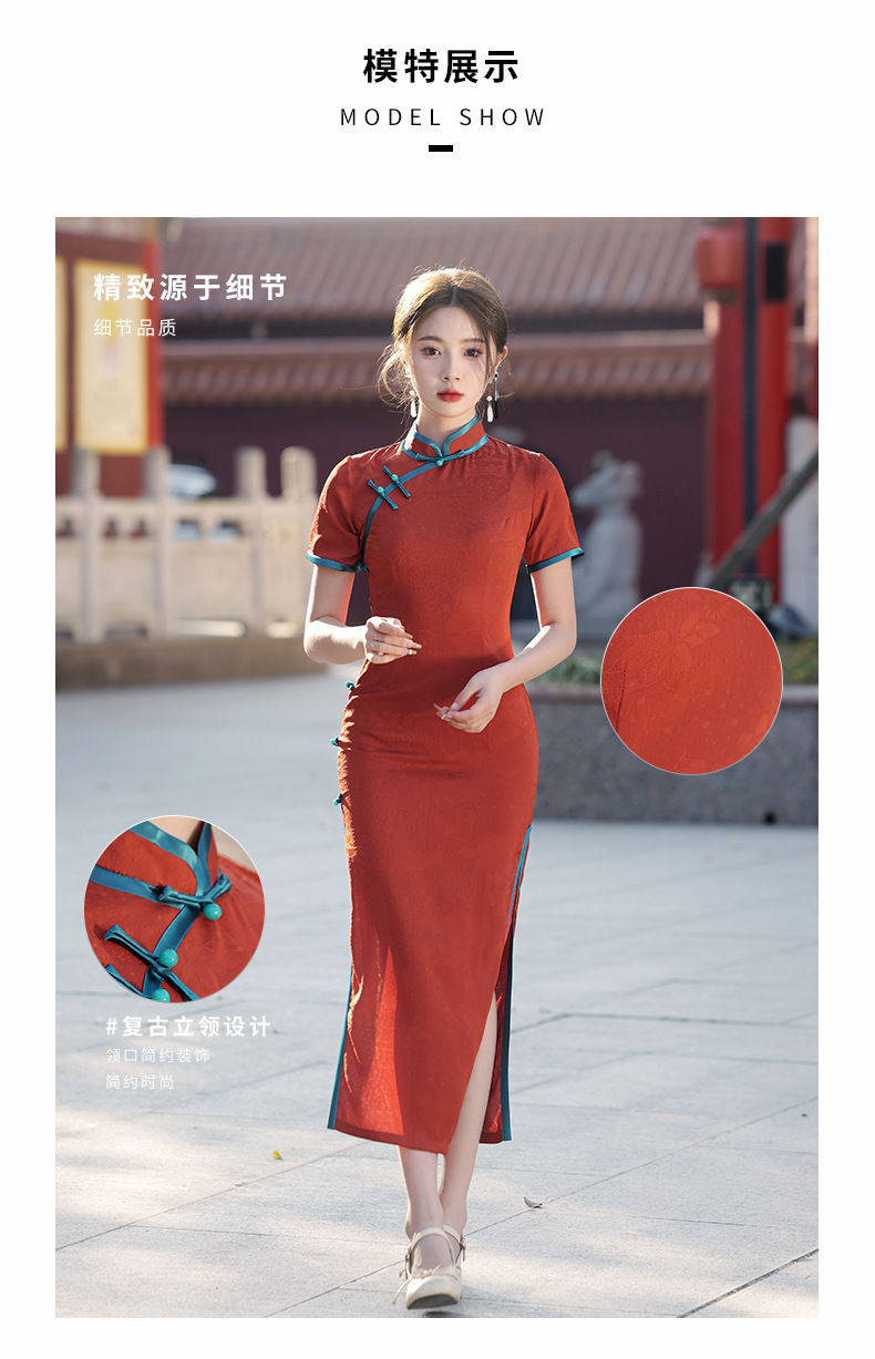 气质优雅,春季新款日常可穿酒红色提花复古风短袖旗袍YG-2375