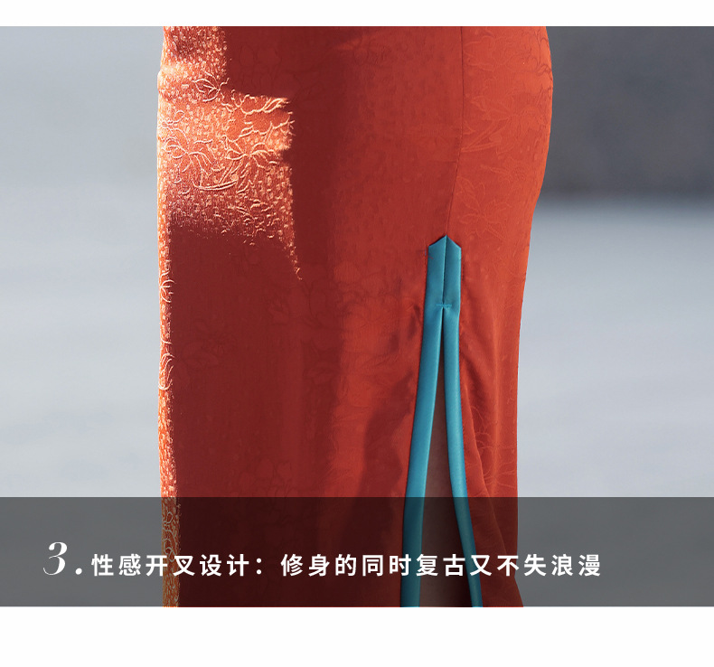 老上海复古改良新中式长款七分袖旗袍大摆裙2023冬新款旗袍GX-21804