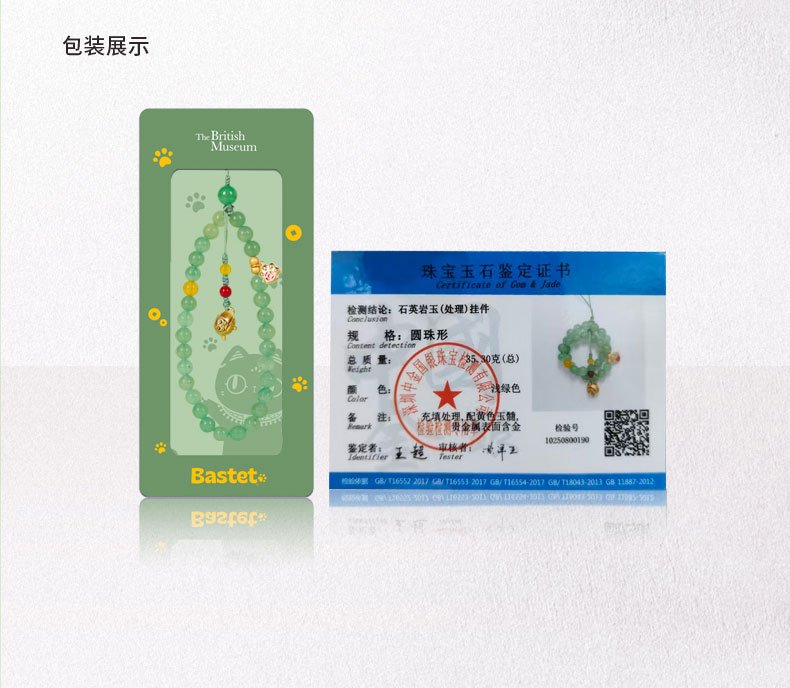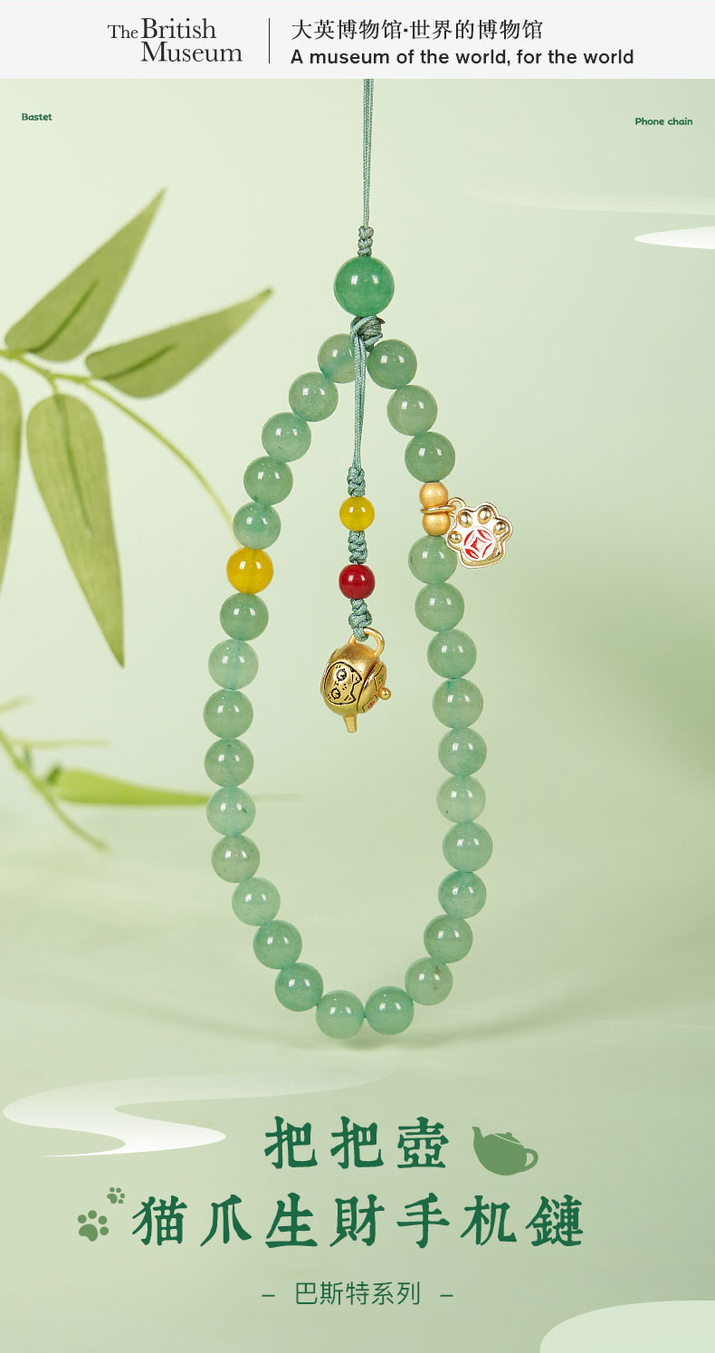 大英博物馆 巴斯特系列 把把壶 猫爪生财手机链
