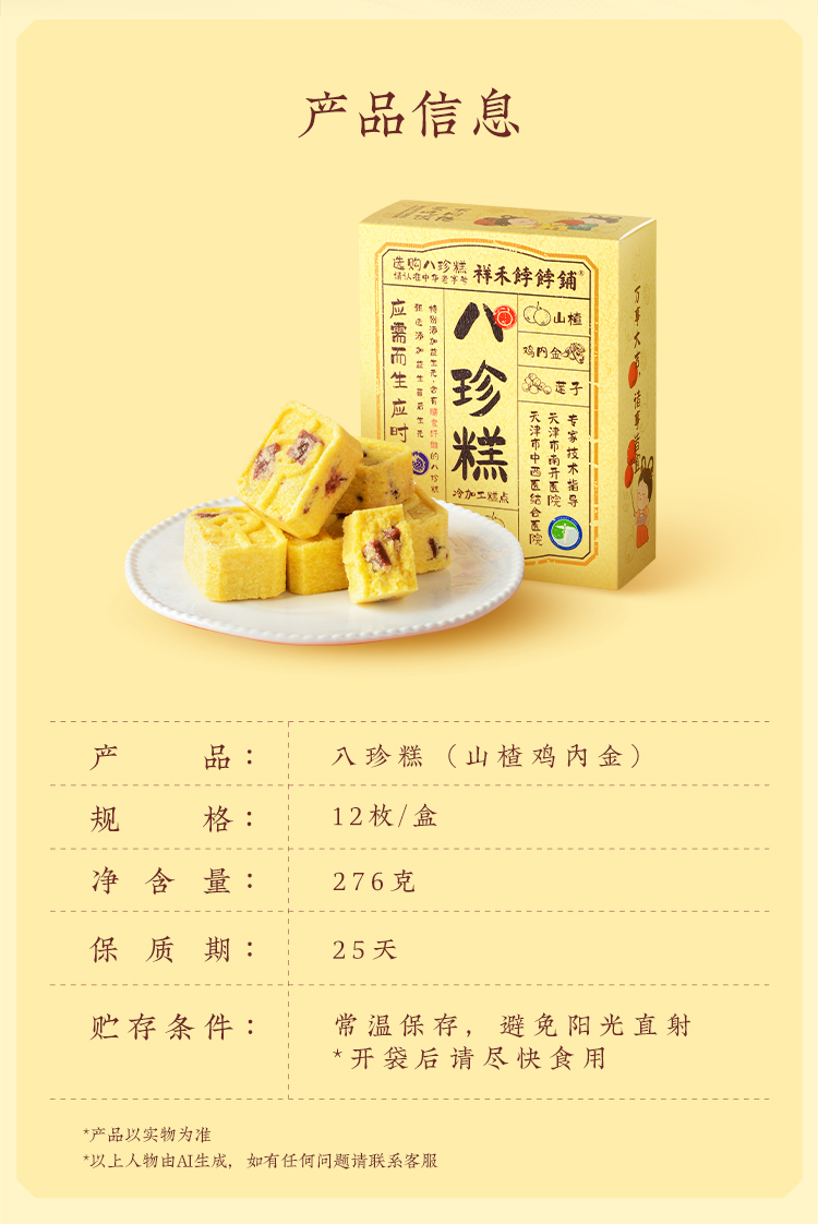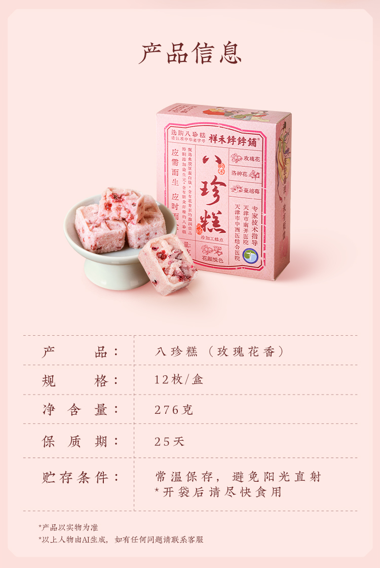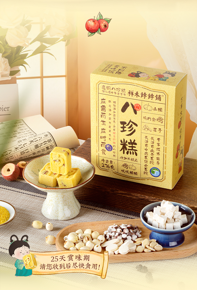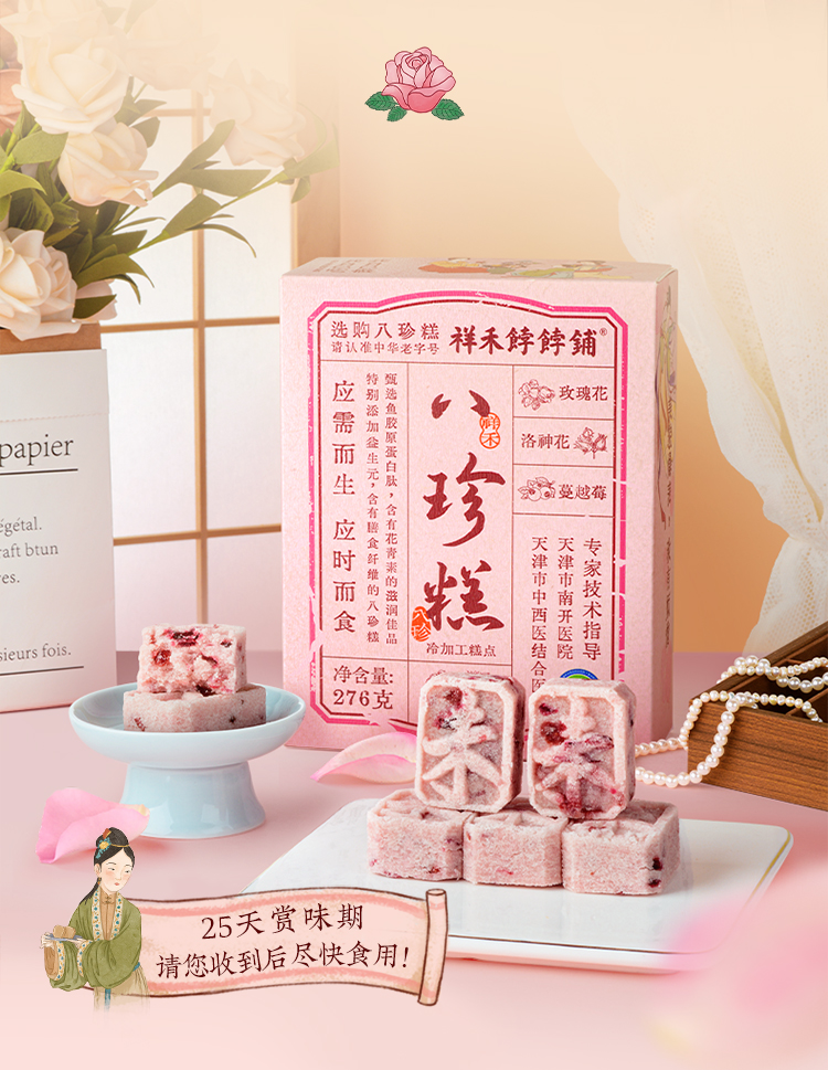 【老字号】祥禾饽饽铺 八珍糕(玫瑰蔓越莓/山楂/坚果/紫米)276g