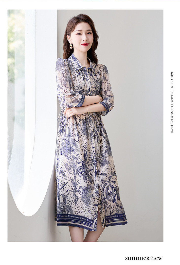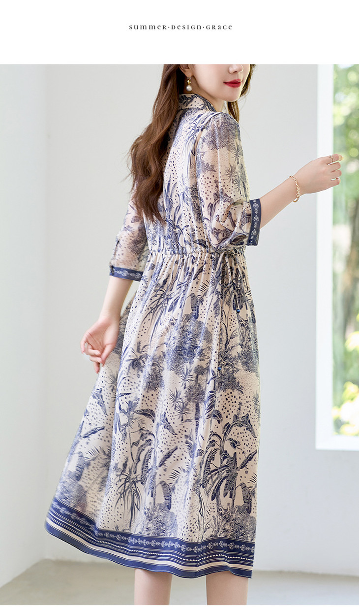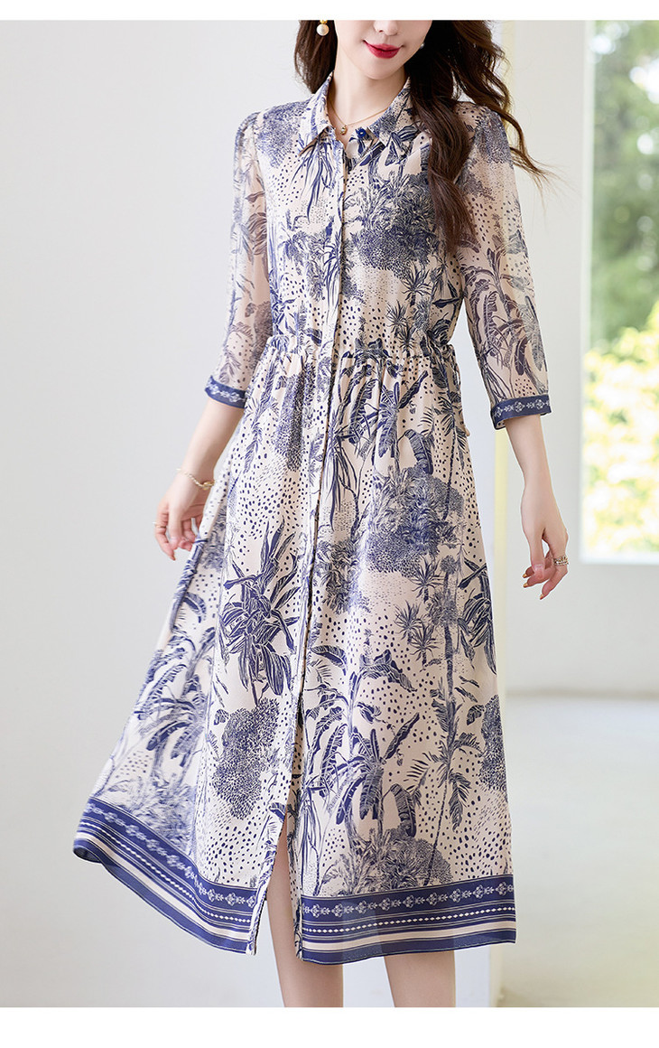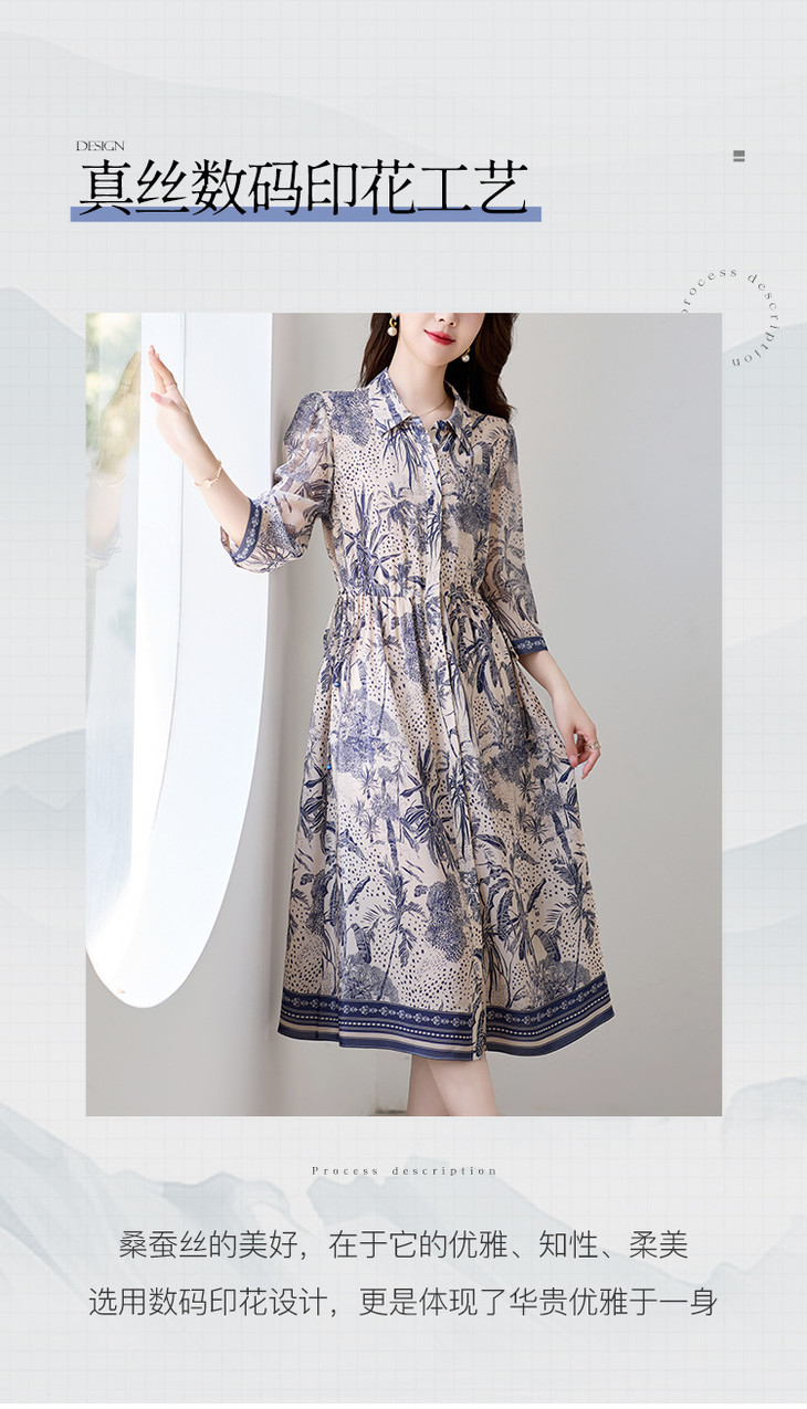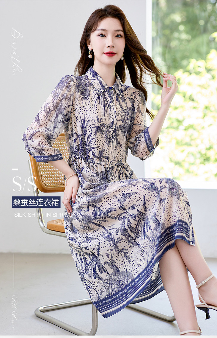 16姆米真丝双绉数码印花连衣裙SM7788