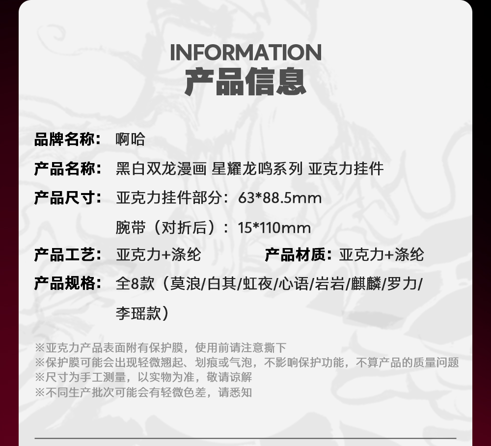 黑白双龙漫画 星耀龙鸣系列 亚克力挂件