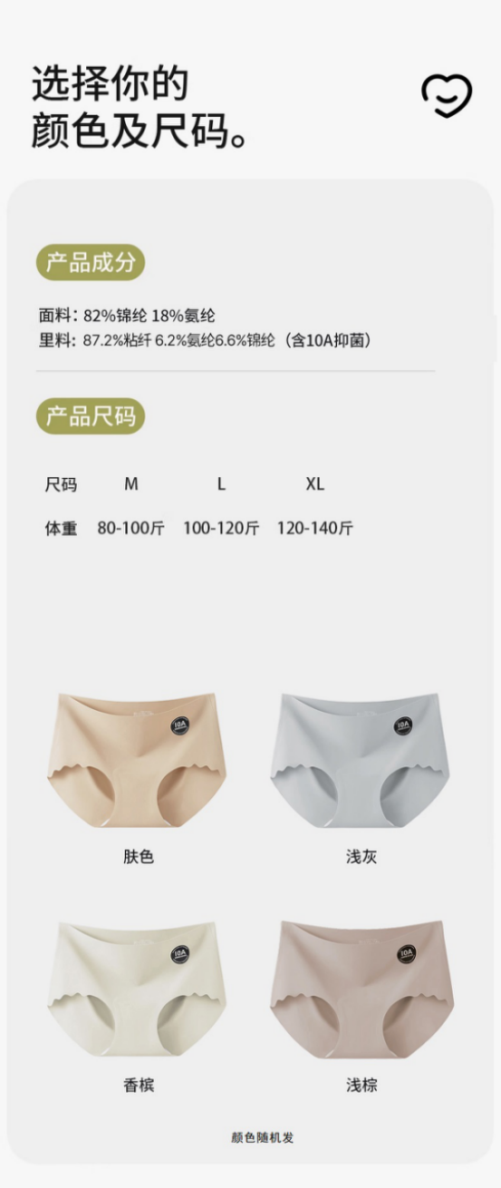 【买4送2!到手6条】诗慕小姐10A级抗菌粉底液无痕内裤