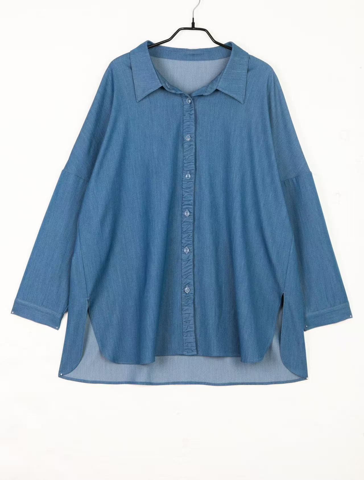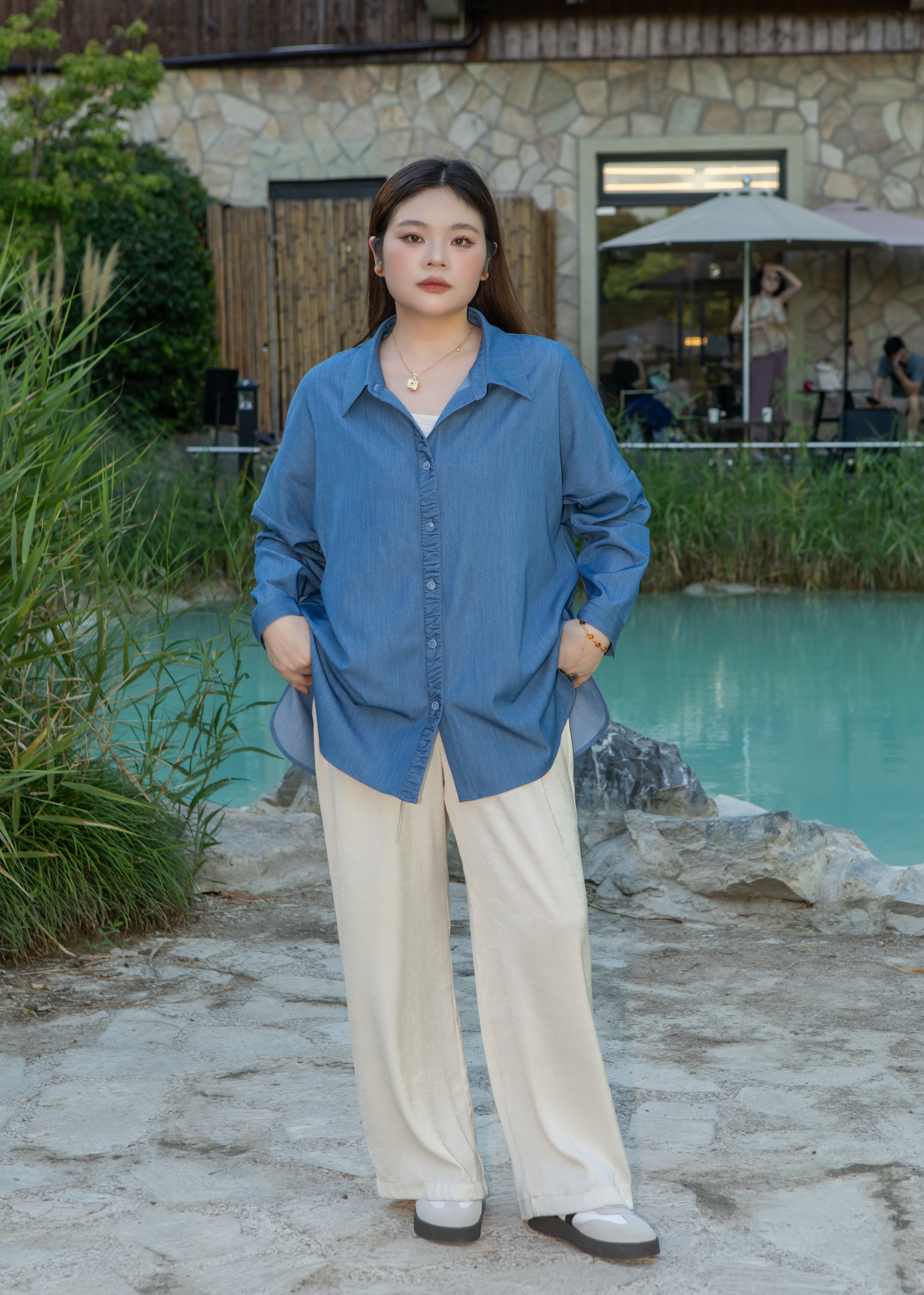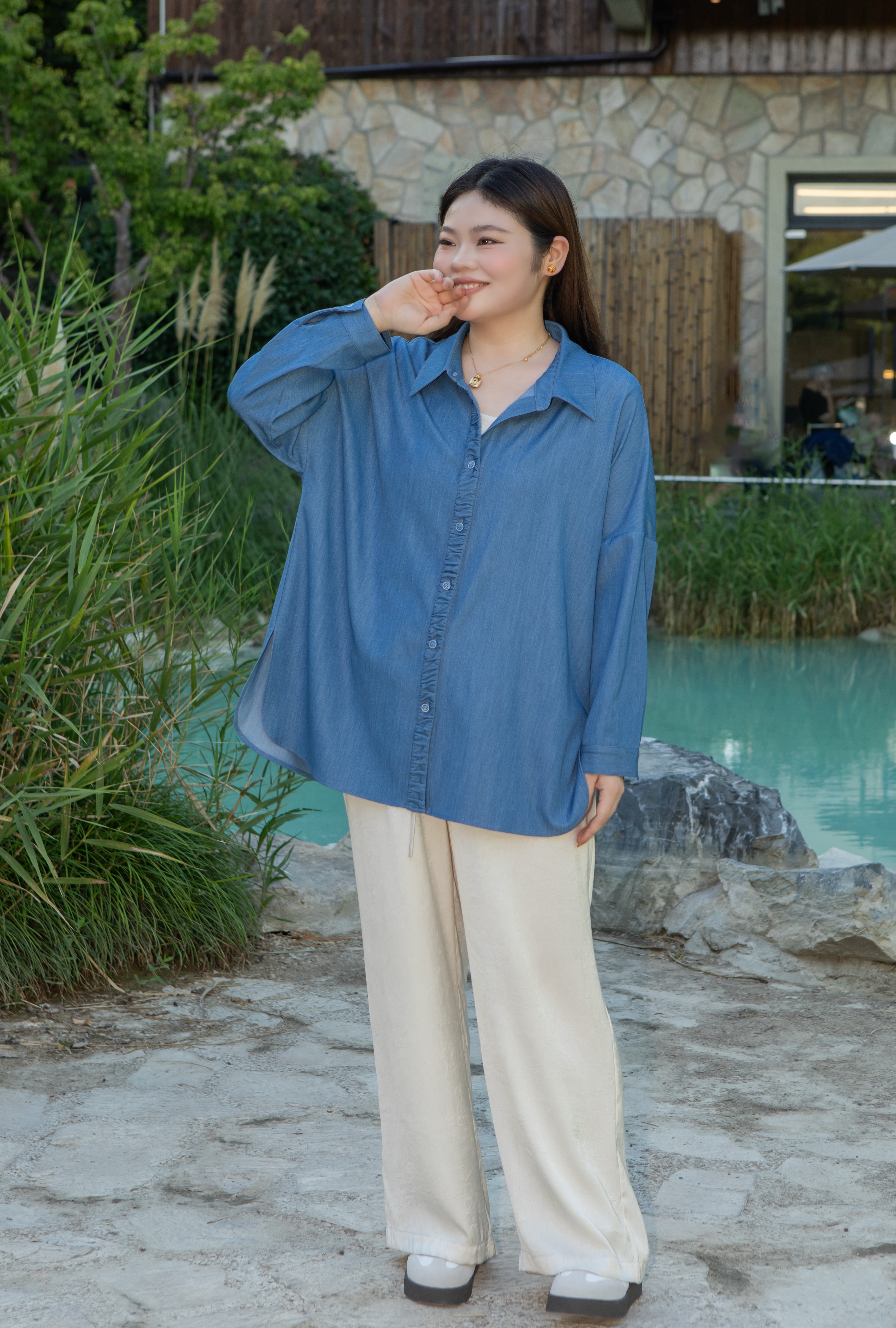一周发货,30件定制限量款【老钱风 宽松衬衫上衣】垂顺、挺括!尖头翻领衬衫领,面料垂顺柔软,厚度适中,微弹,中长款,正码正拍,69%聚酯纤维25.7%粘纤5.3%氨纶