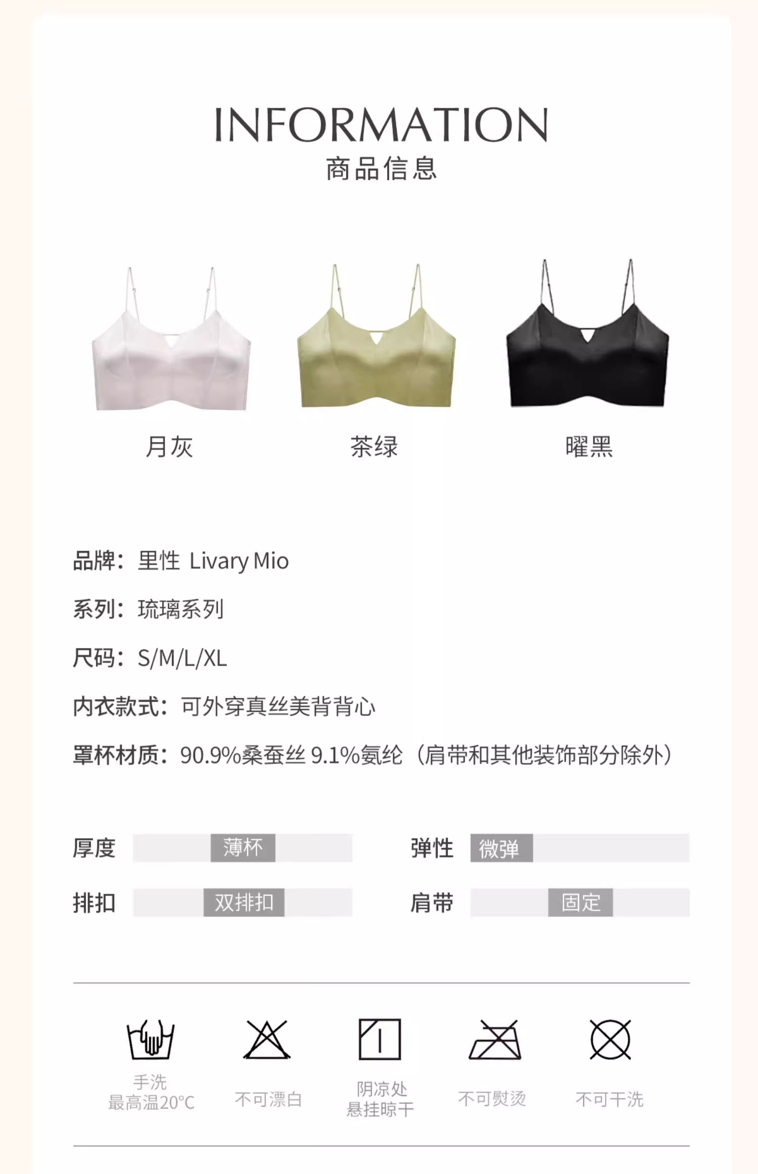 里性 LIVARY MIO 琉璃-Glaze 高级真丝美背内衣无钢圈可外穿文胸