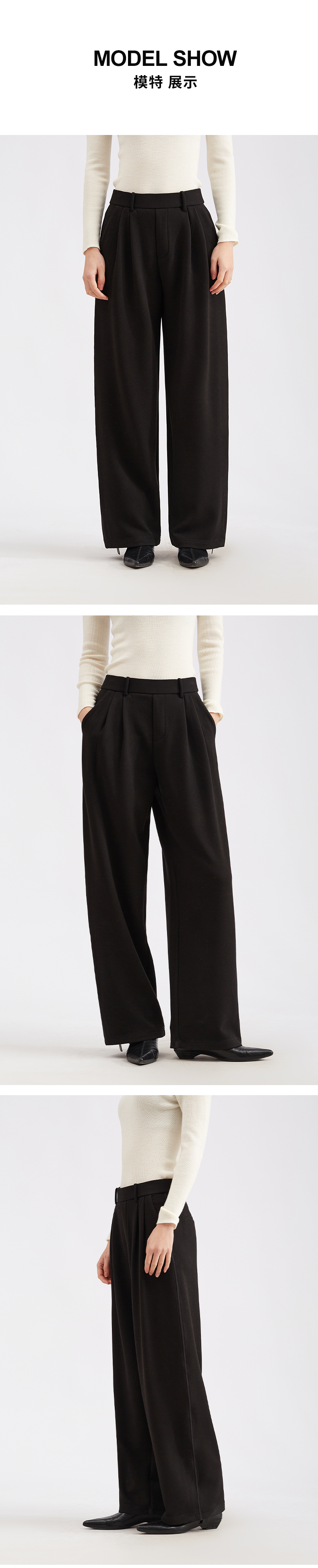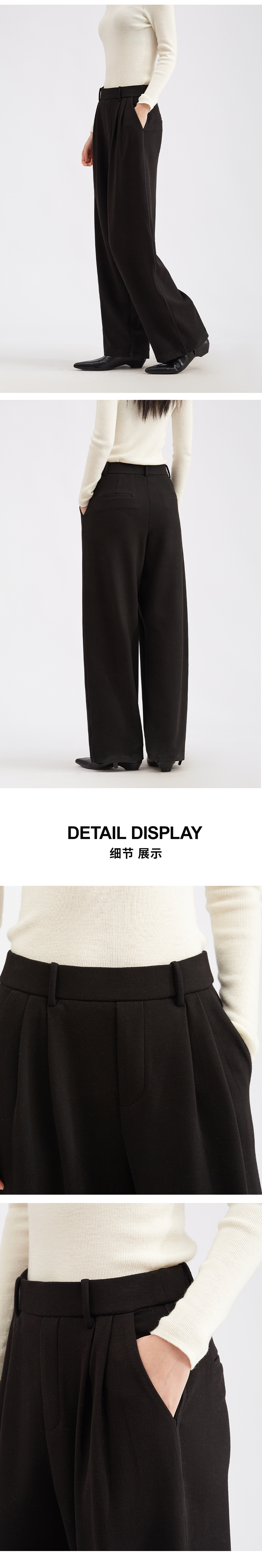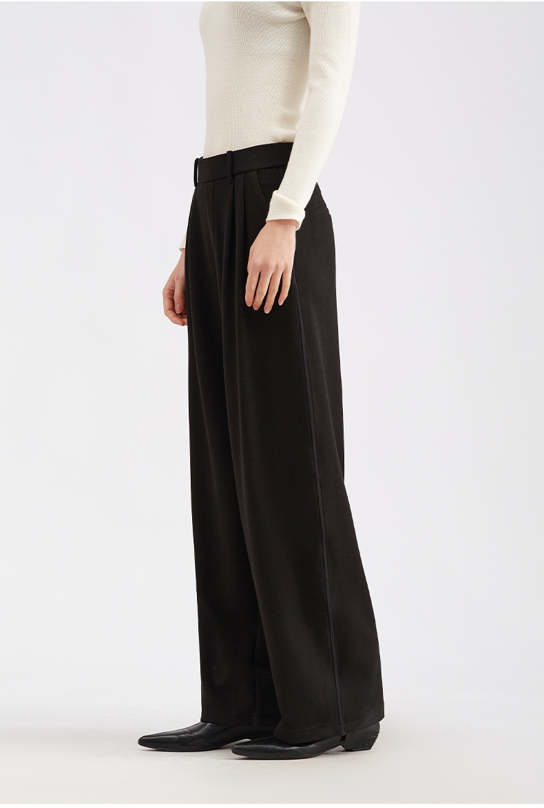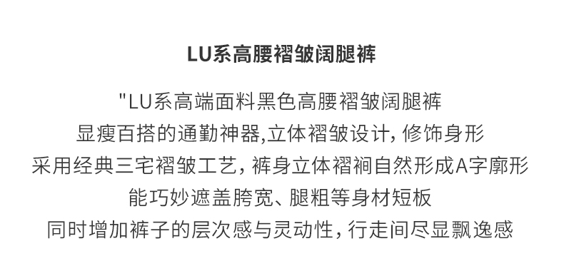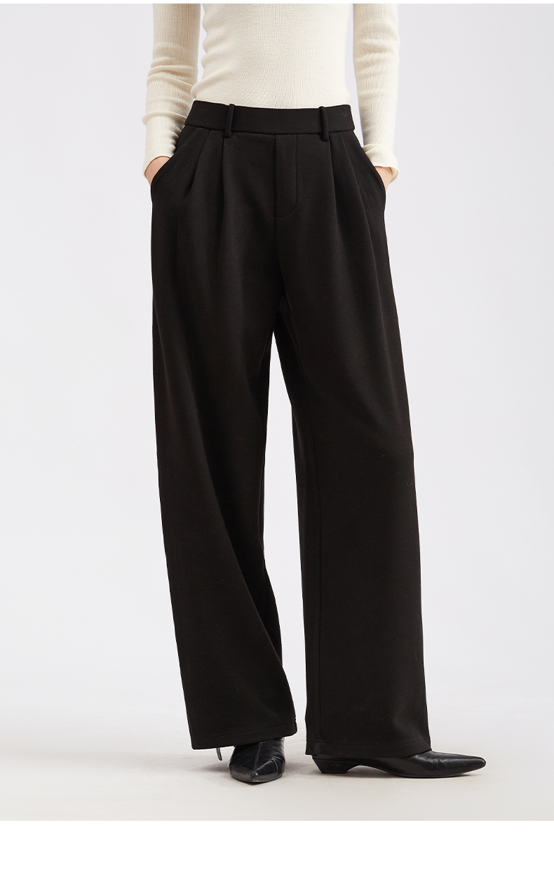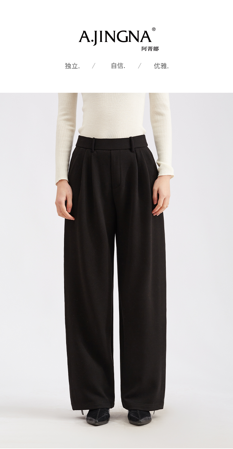 【LU系高腰】阿菁娜冬季新款设计感褶皱裤LU系高腰阔腿F30D210051