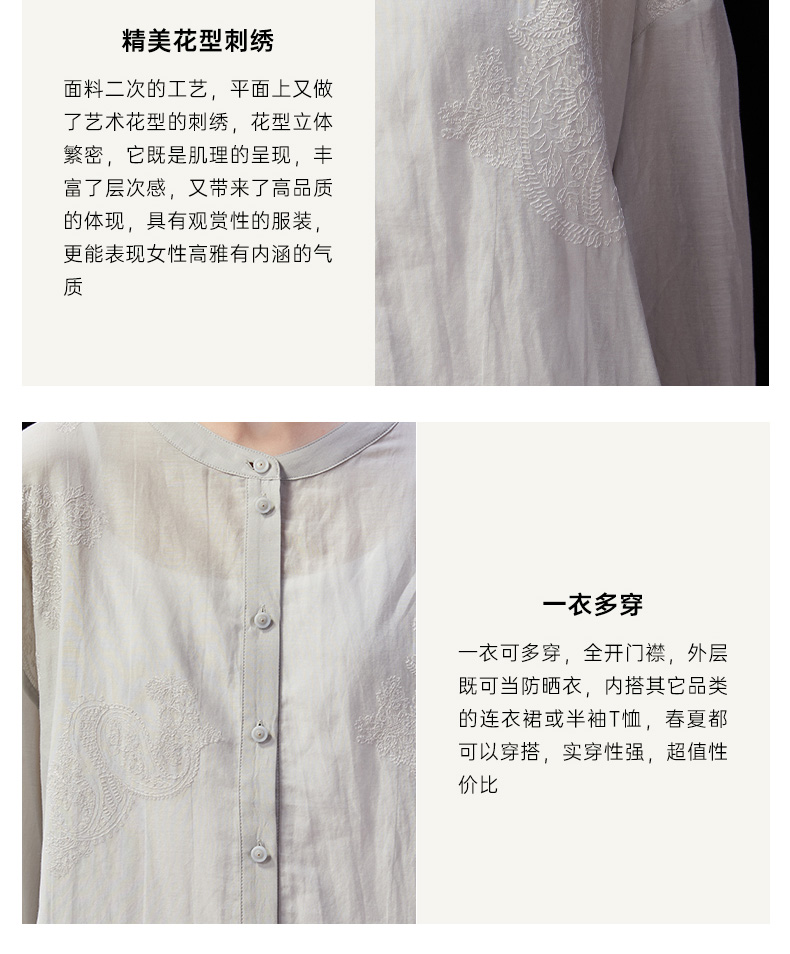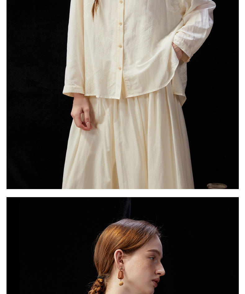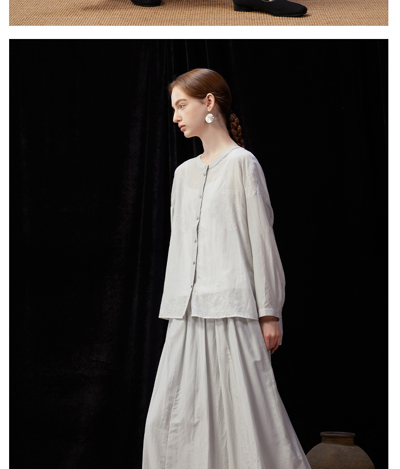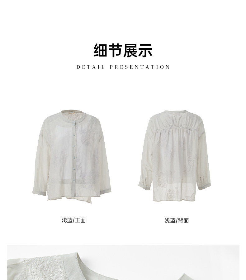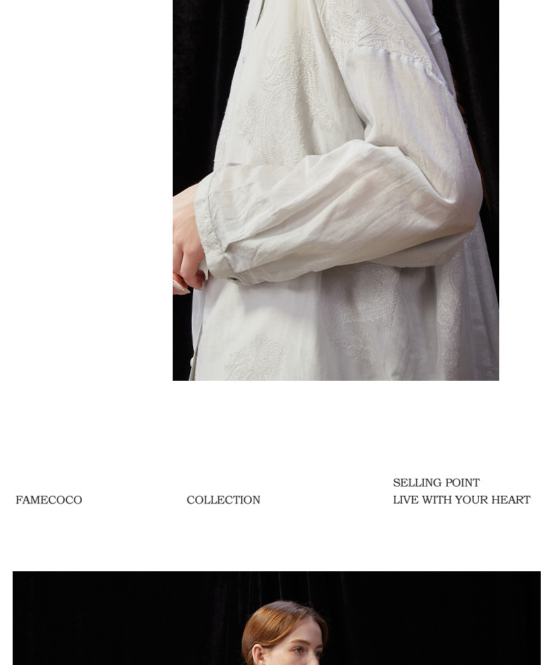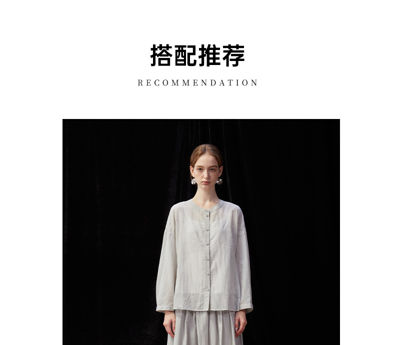 设计师品牌FAMECOCO刺绣简约宽松圆领长袖衬衣F25夏新AD3BH027