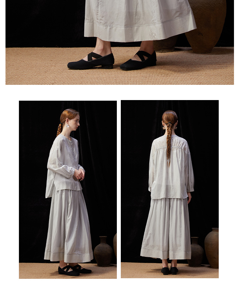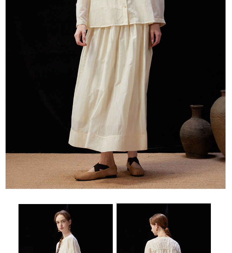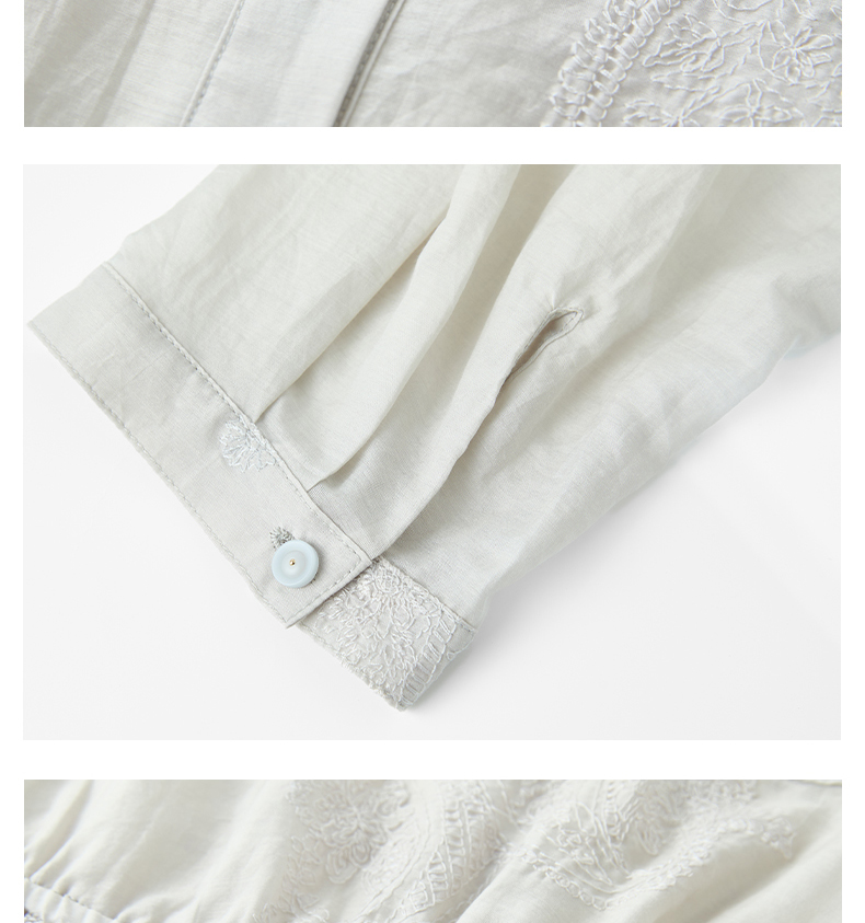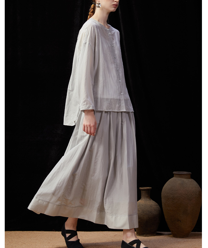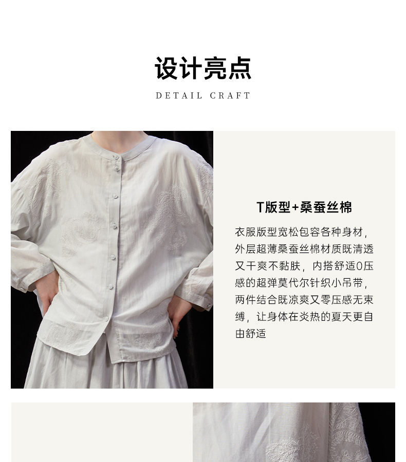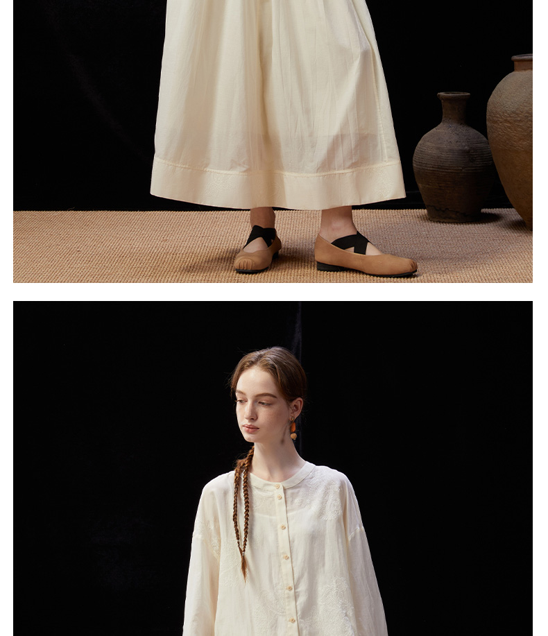 设计师品牌FAMECOCO刺绣简约宽松圆领长袖衬衣F25夏新AD3BH027