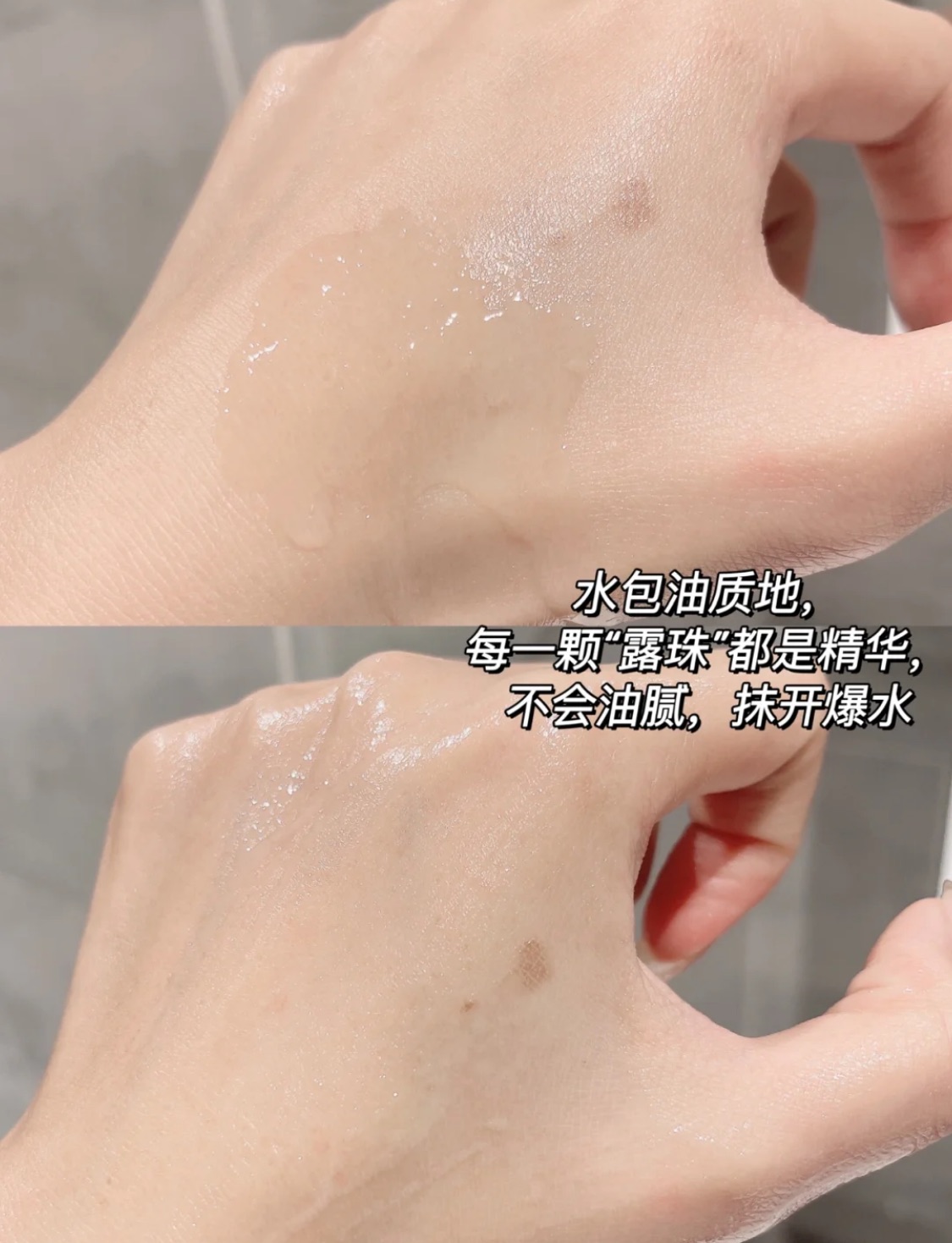 倒出来像油状液体,抹开秒变细腻小水珠!好像沁进皮肤里似的,却很清爽一点都不黏腻,有被这肤感狠狠拿捏住,并且它用着很温和,水润轻薄很舒服!!