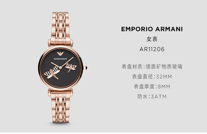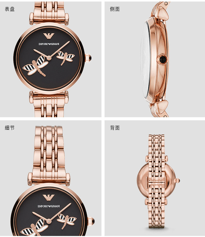 【香港直邮】意大利 阿玛尼 EMPORIO ARMANI 时尚蜻蜓元素钢带石英女表 AR11206