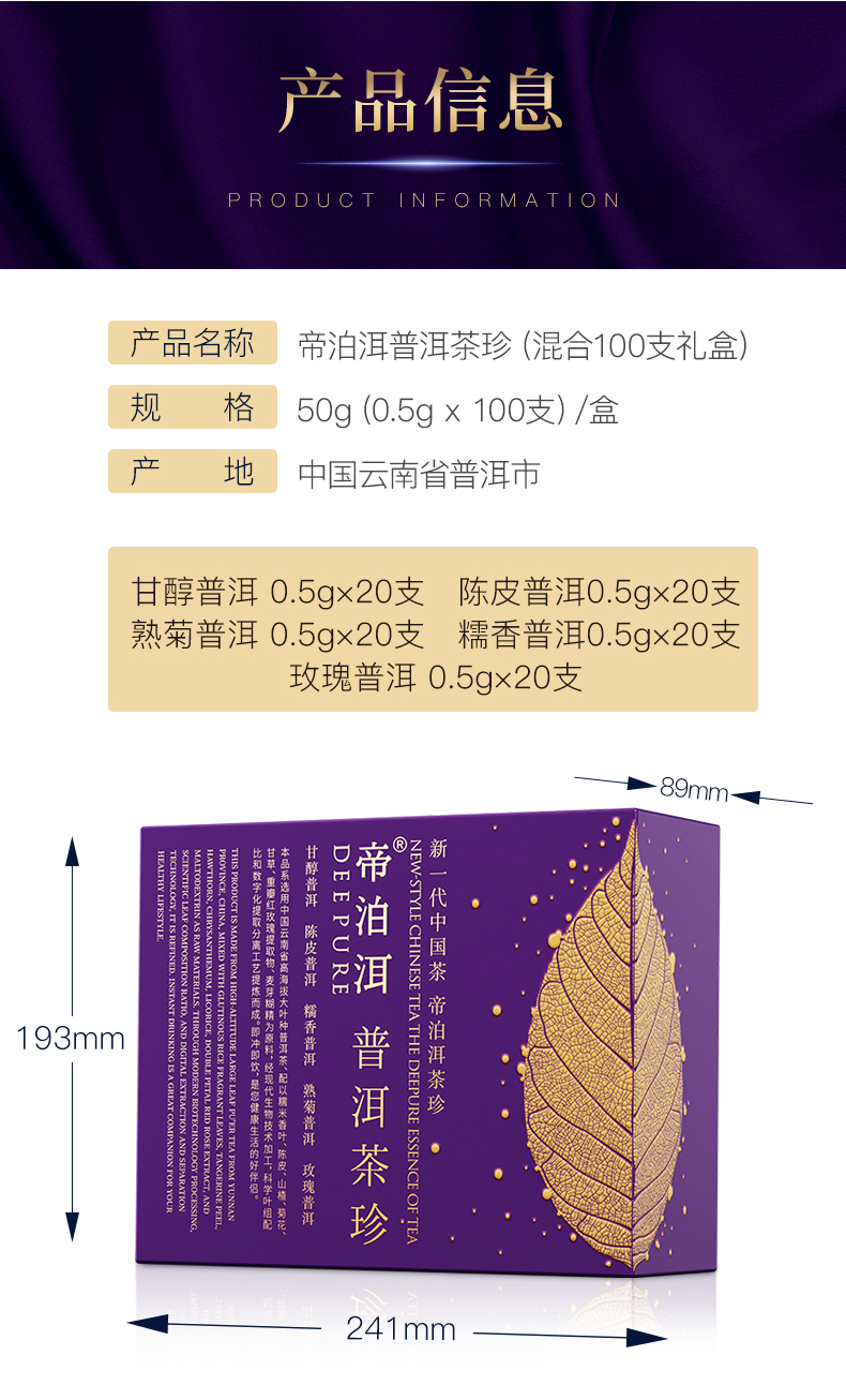 天士力P1455帝泊洱普洱茶珍-混合口味(100支紫色礼盒装)