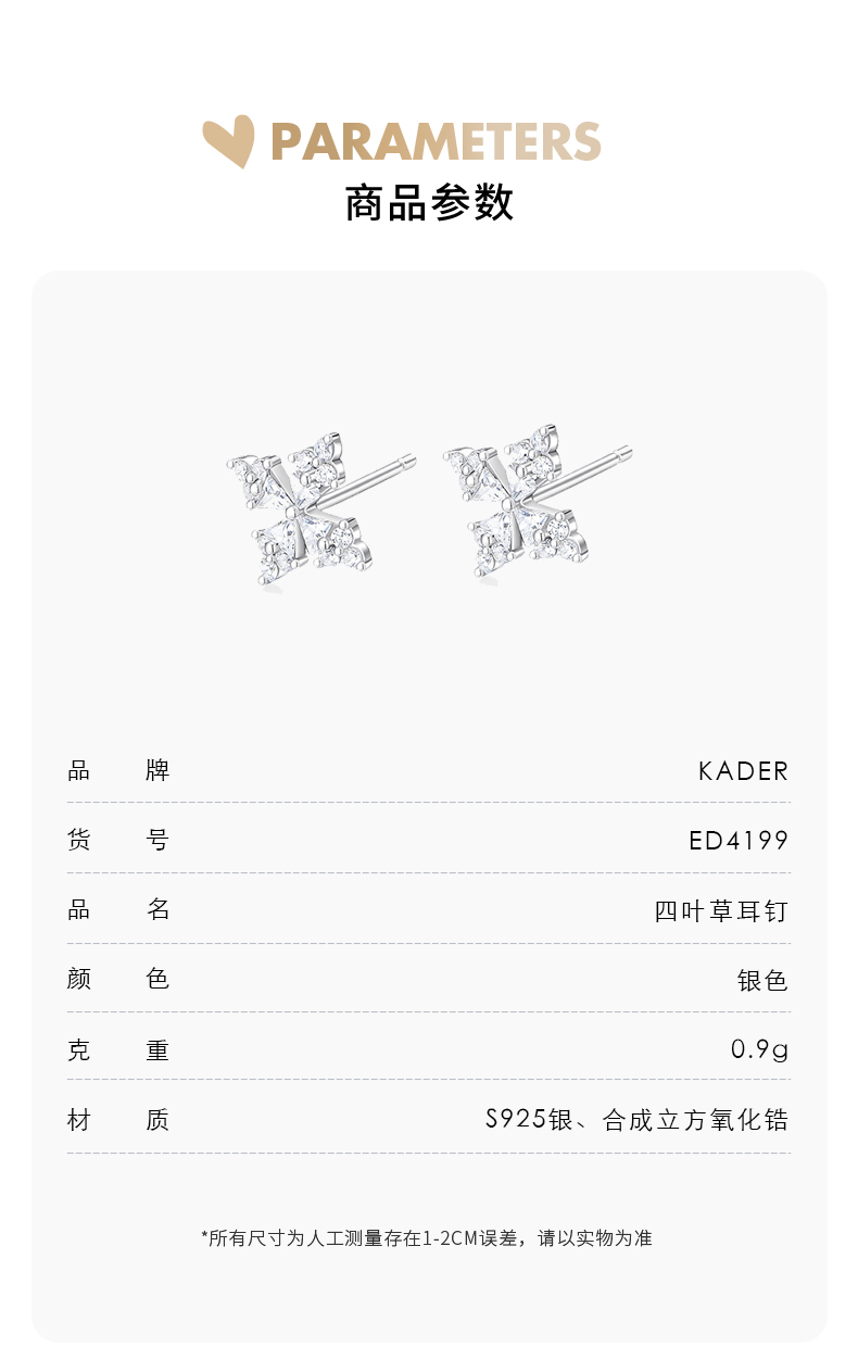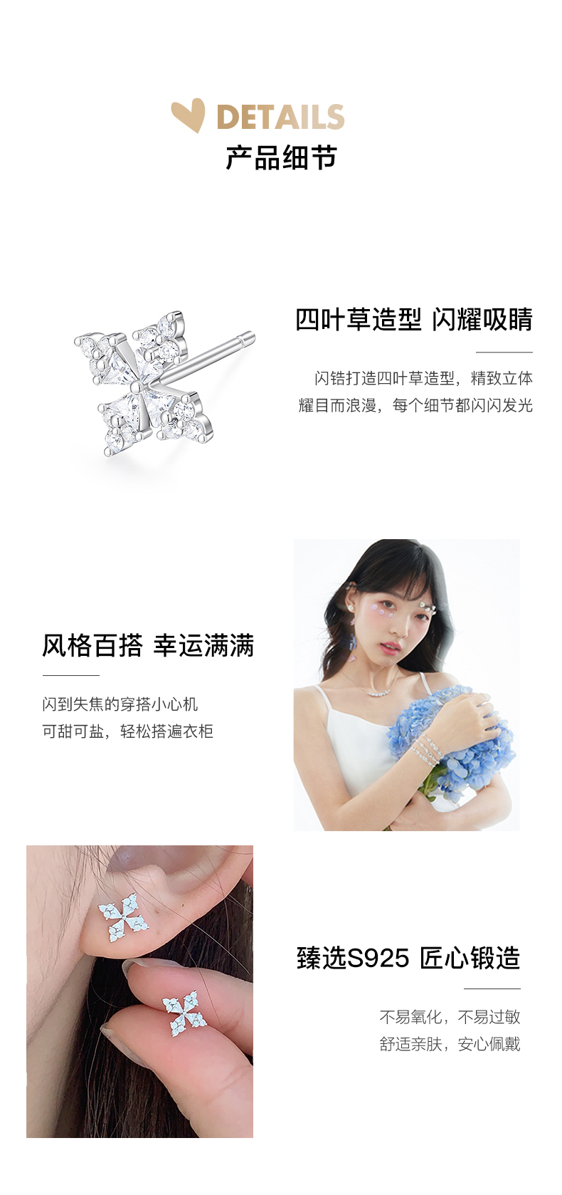 卡蒂罗/KADER 四叶草耳钉 925银幸运转运轻奢小众设计耳饰 高颜值不易撞款配饰养耳洞配饰可爱甜美