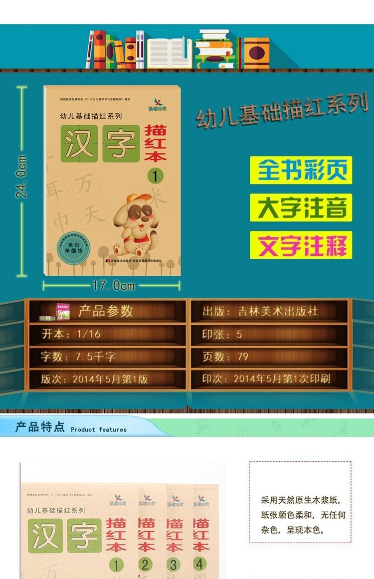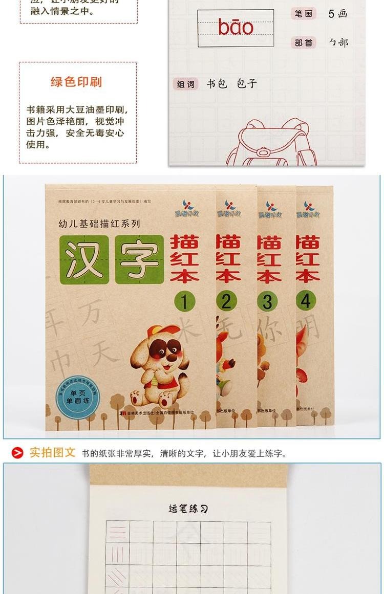 全套4本 幼儿基础描红系列汉字描红本1-4套装 3-6岁儿童幼小衔接学前早教汉字描写描红练习识字书 幼儿园学前大班汉字描红描写本