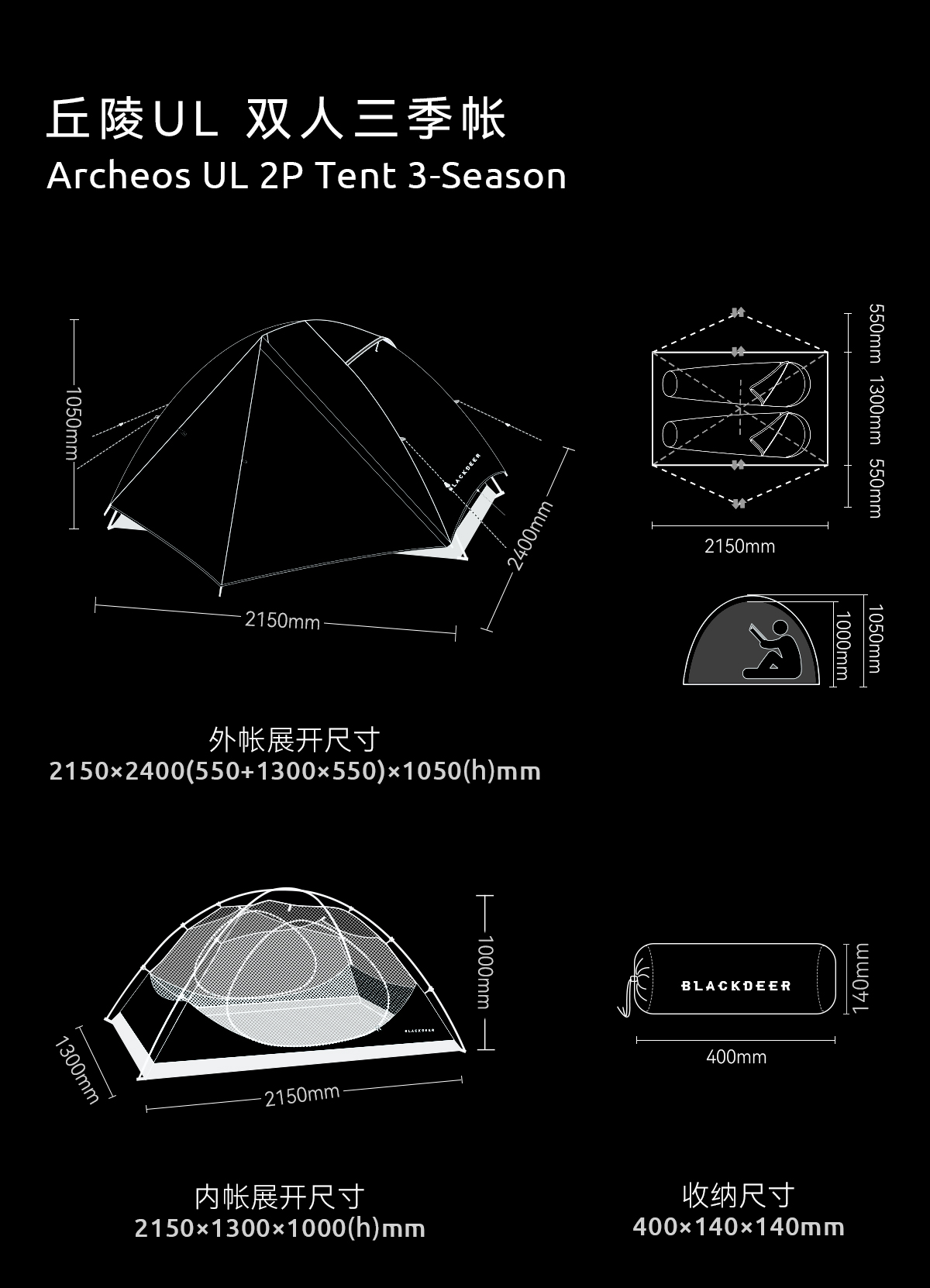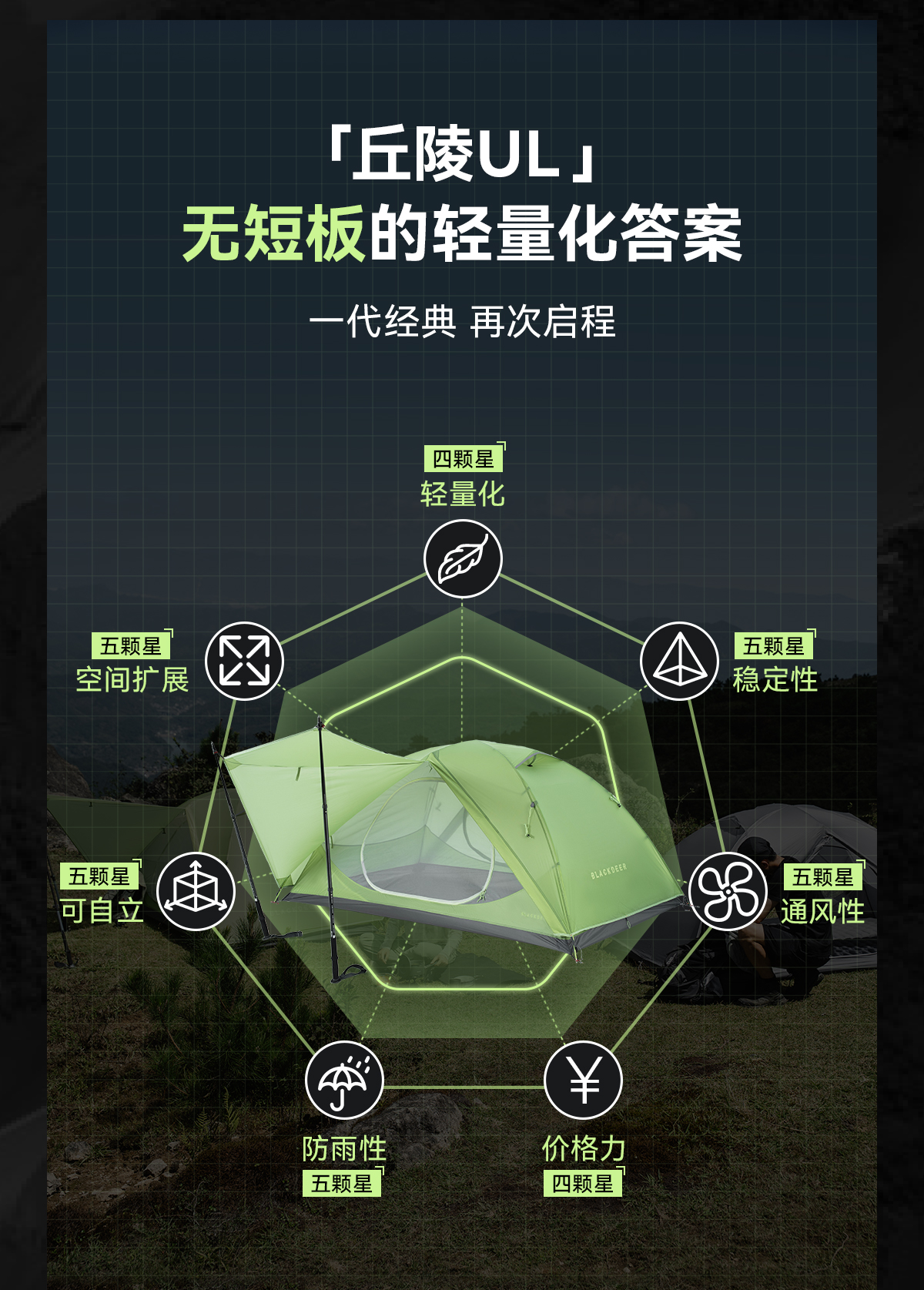 黑鹿 丘陵UL 轻量双人帐篷新品 (tbzg)