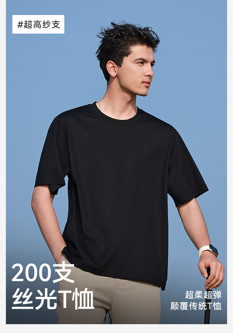 十如仕十如仕200支短袖男士圆领透气休闲舒适户外宽松t恤-T30-01