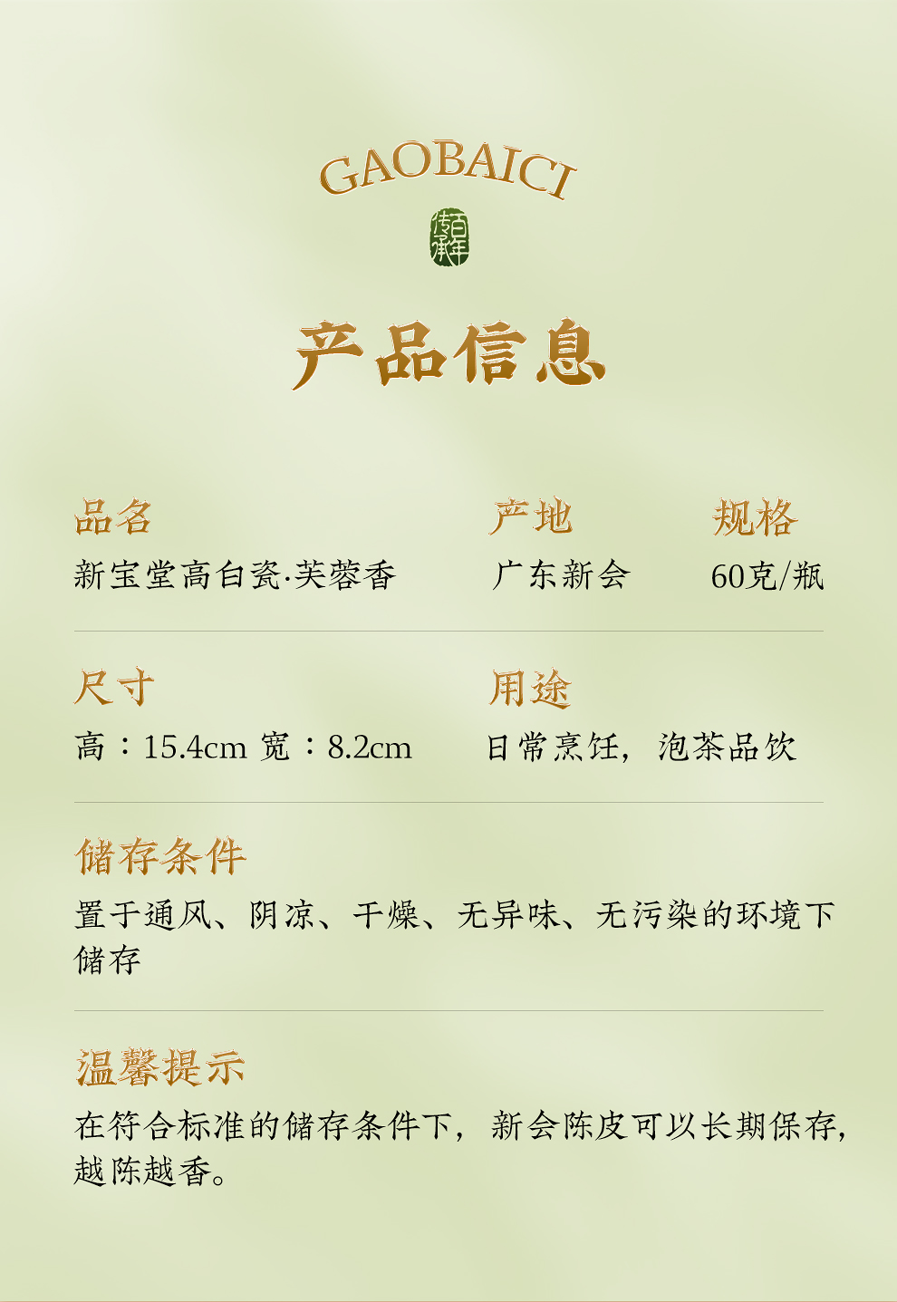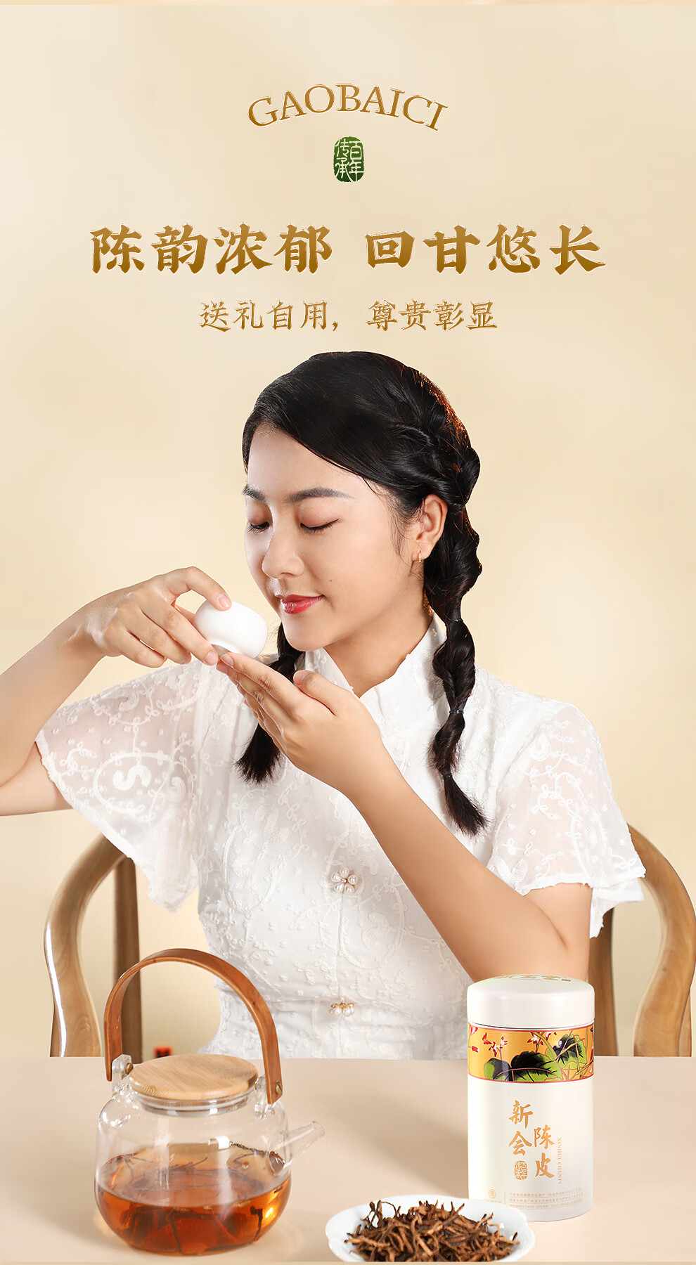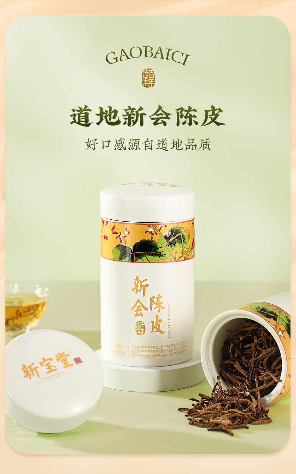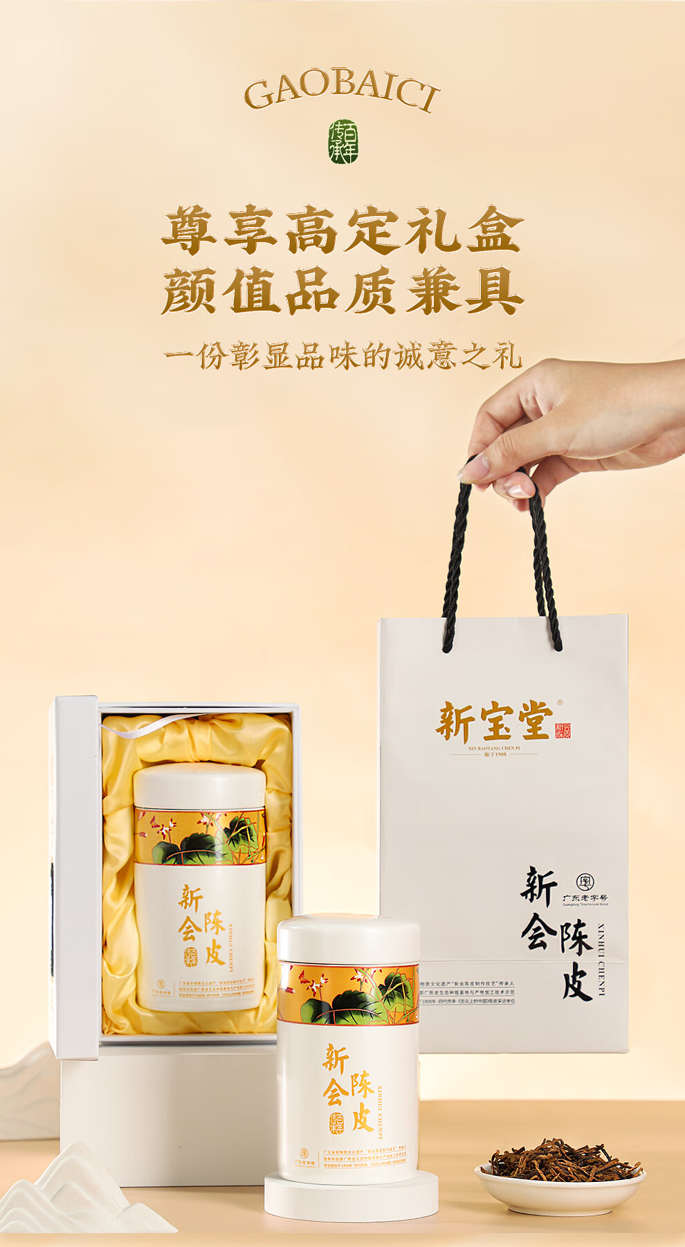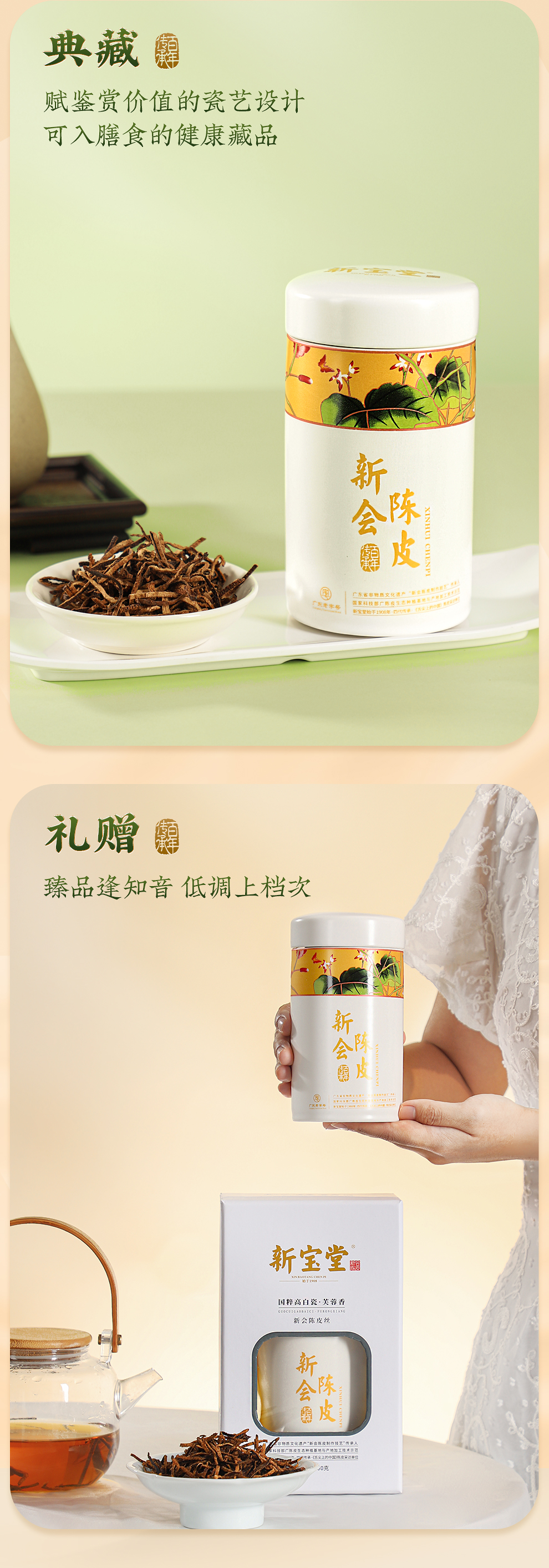 岭南新宝堂陈皮二十年新会陈皮广东特产20年养生陈皮茶高白瓷礼盒60克